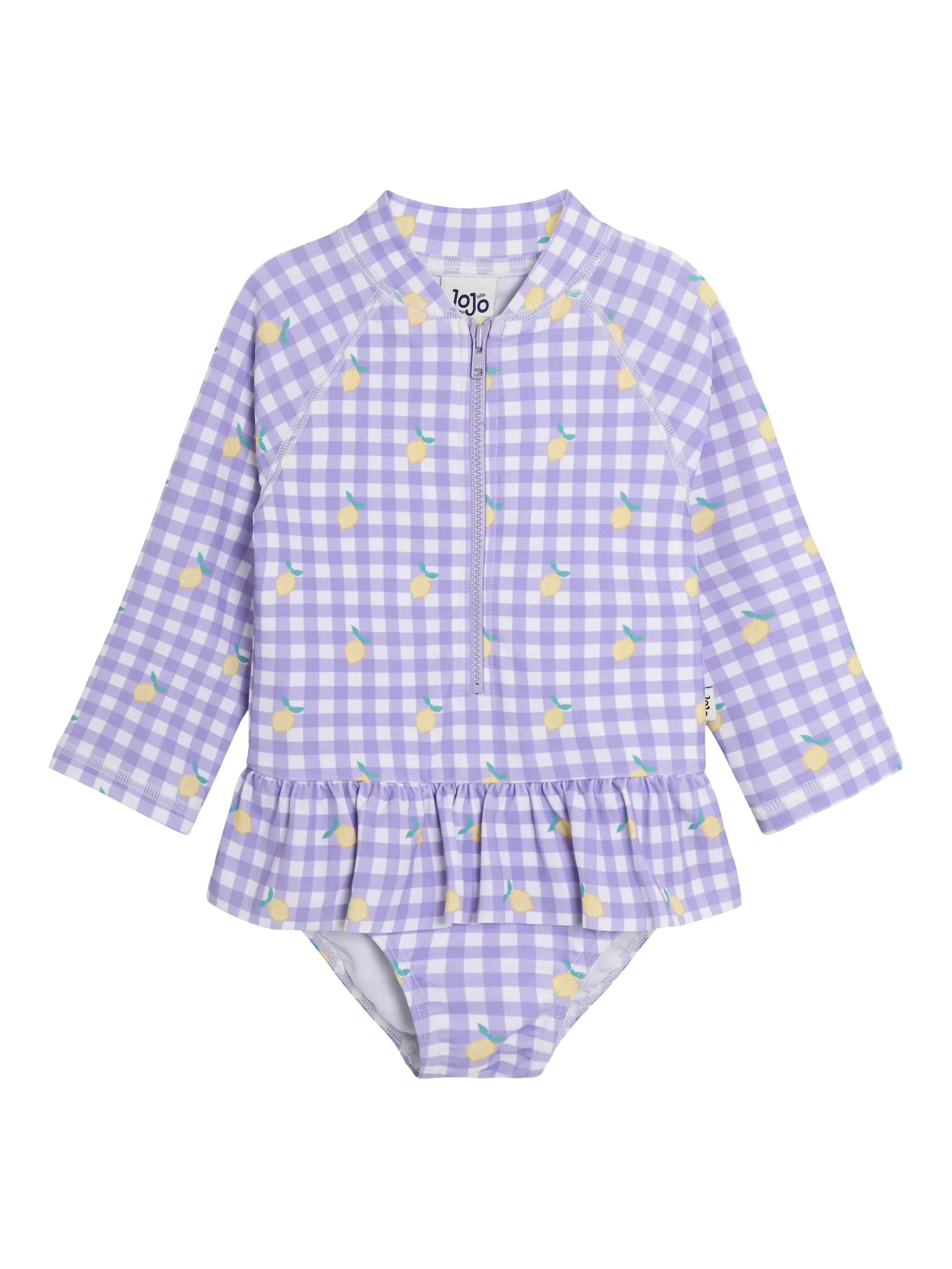 JoJo Maman BébéLemon Long Sleeve Swimsuit, Purple Gingham/Multi