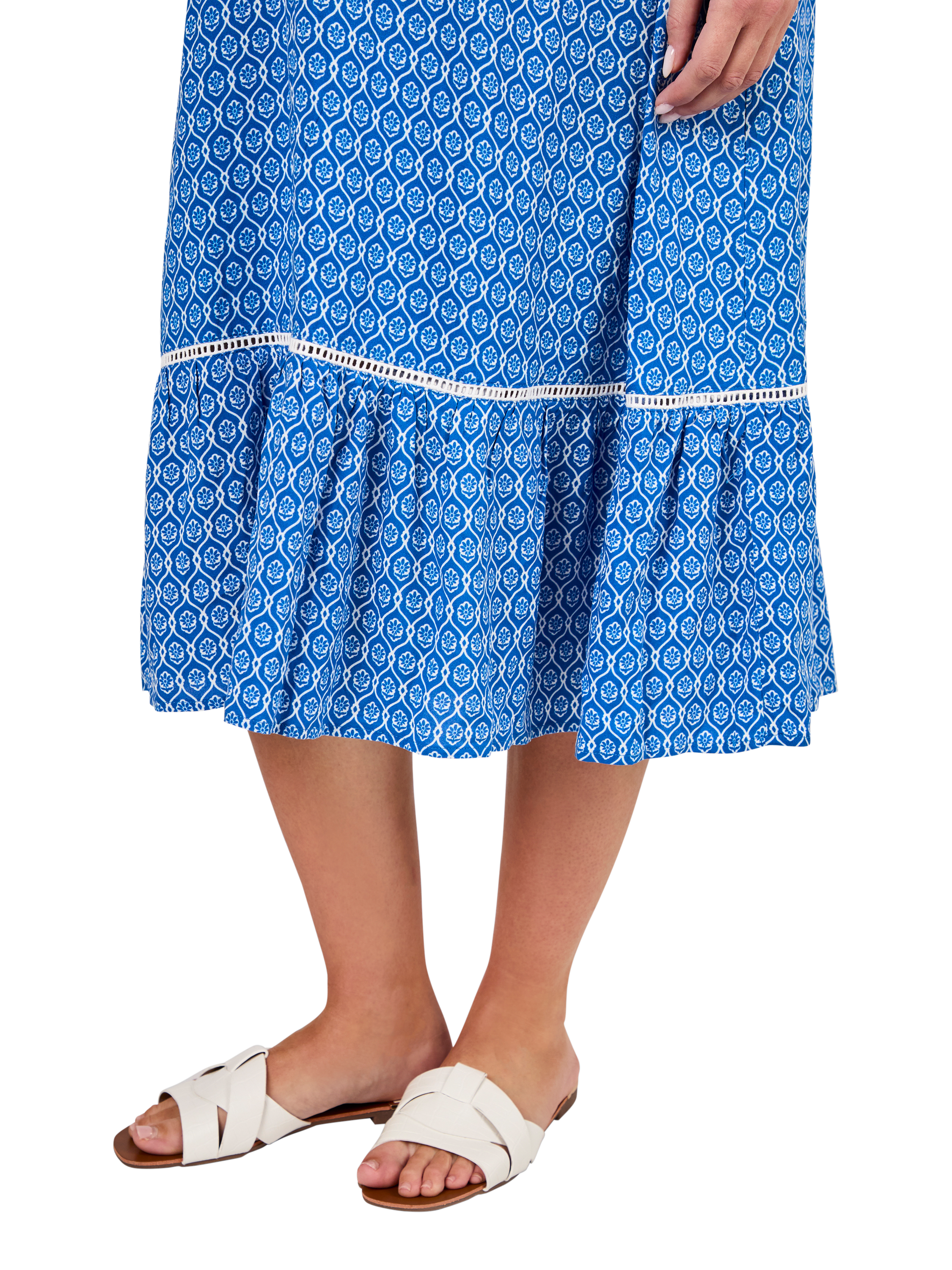With it's stylish blue pattern and floaty soft material, why not add this dress to your summer maternity wardrobe. Designed to sit delicately across your bump with plenty of airy movement during the hot summer days, you can be sure to look stylish whilst feeling your best.