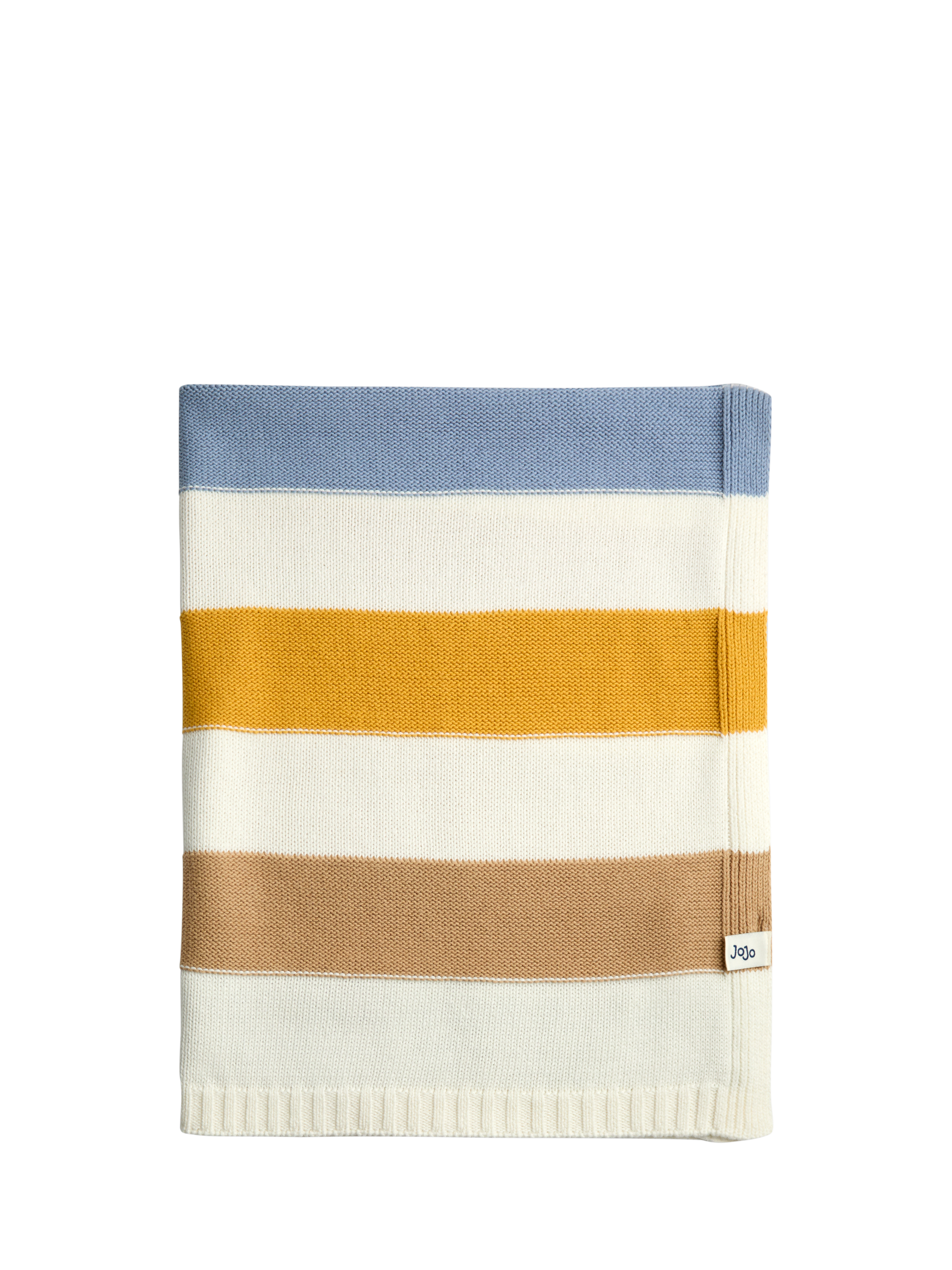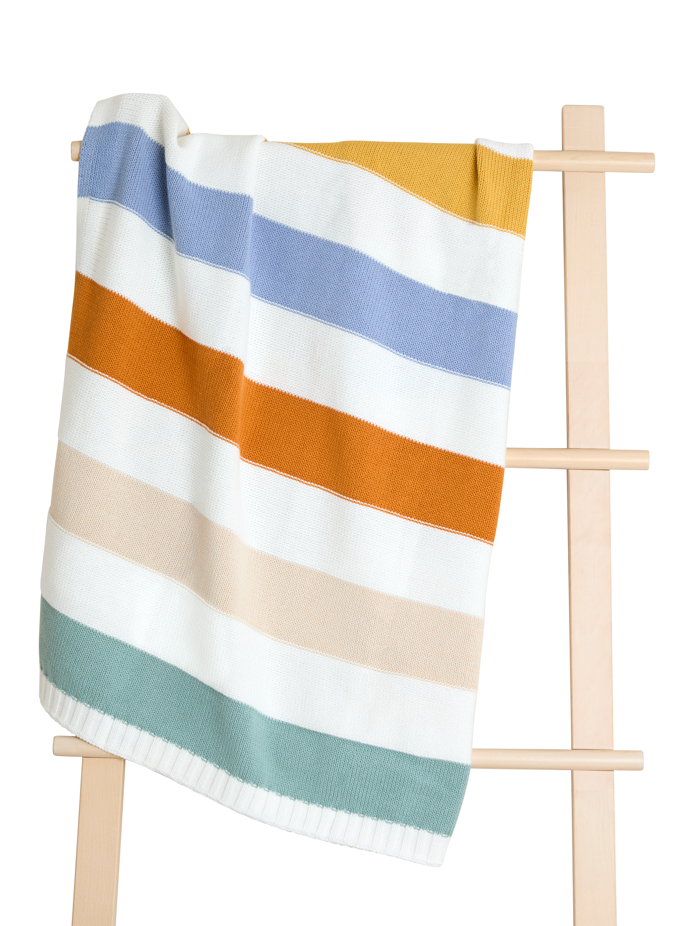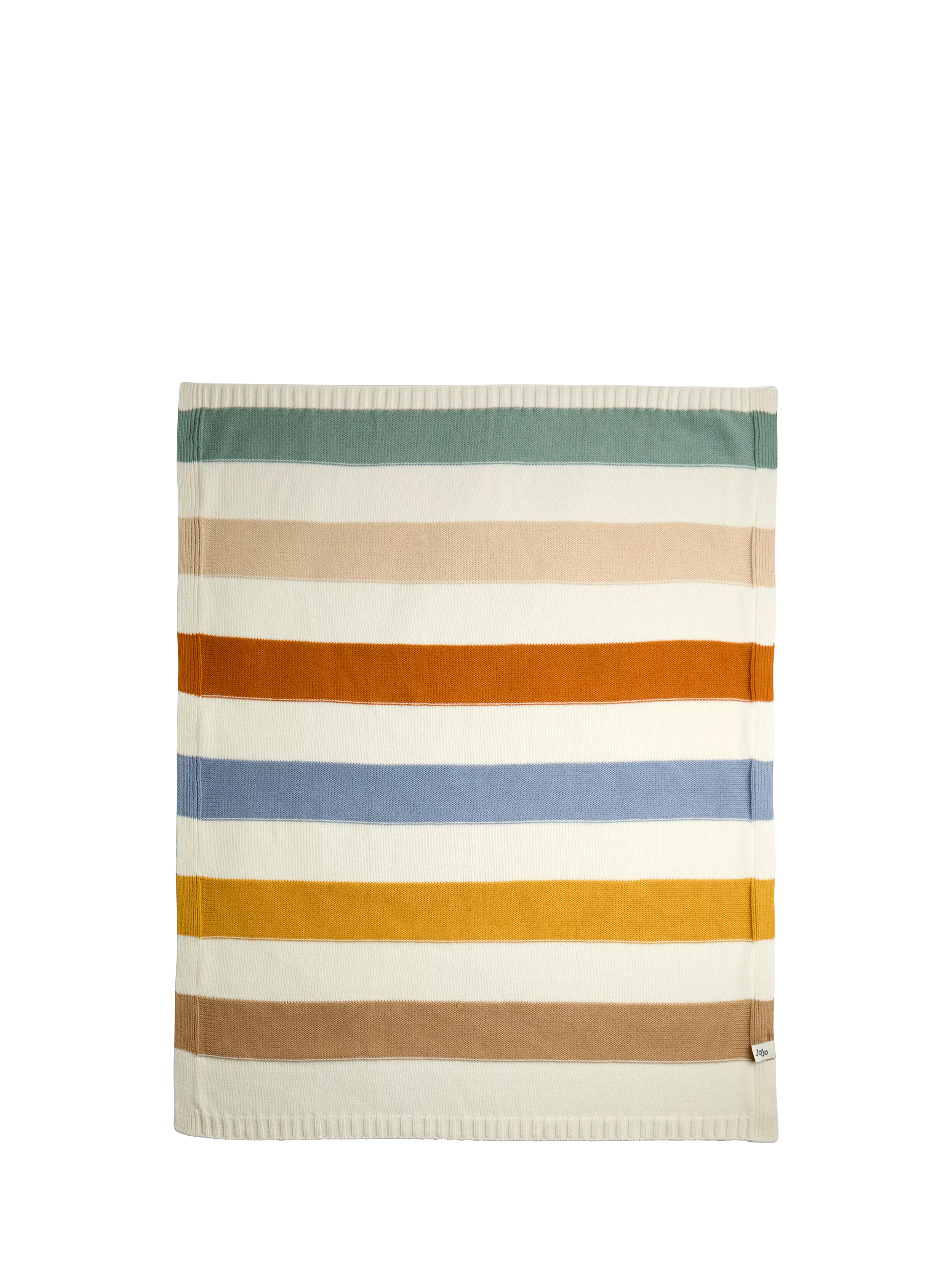Wrap little ones in colour and comfort with this cotton knitted blanket — a soft, snuggly favourite that's generously sized for chairs, prams or sofa snuggles. With multicoloured stripes to add a cheerful pop, it's a cosy, year-round layering piece that's an ideal gift for new arrivals.