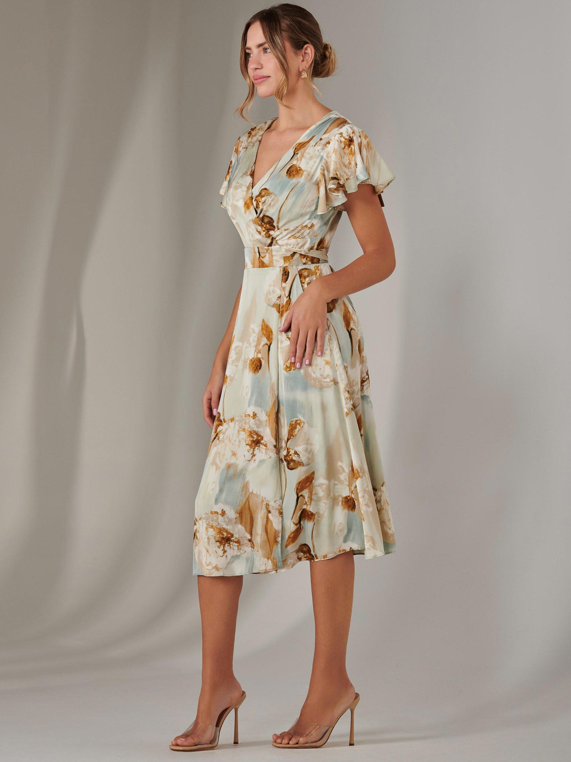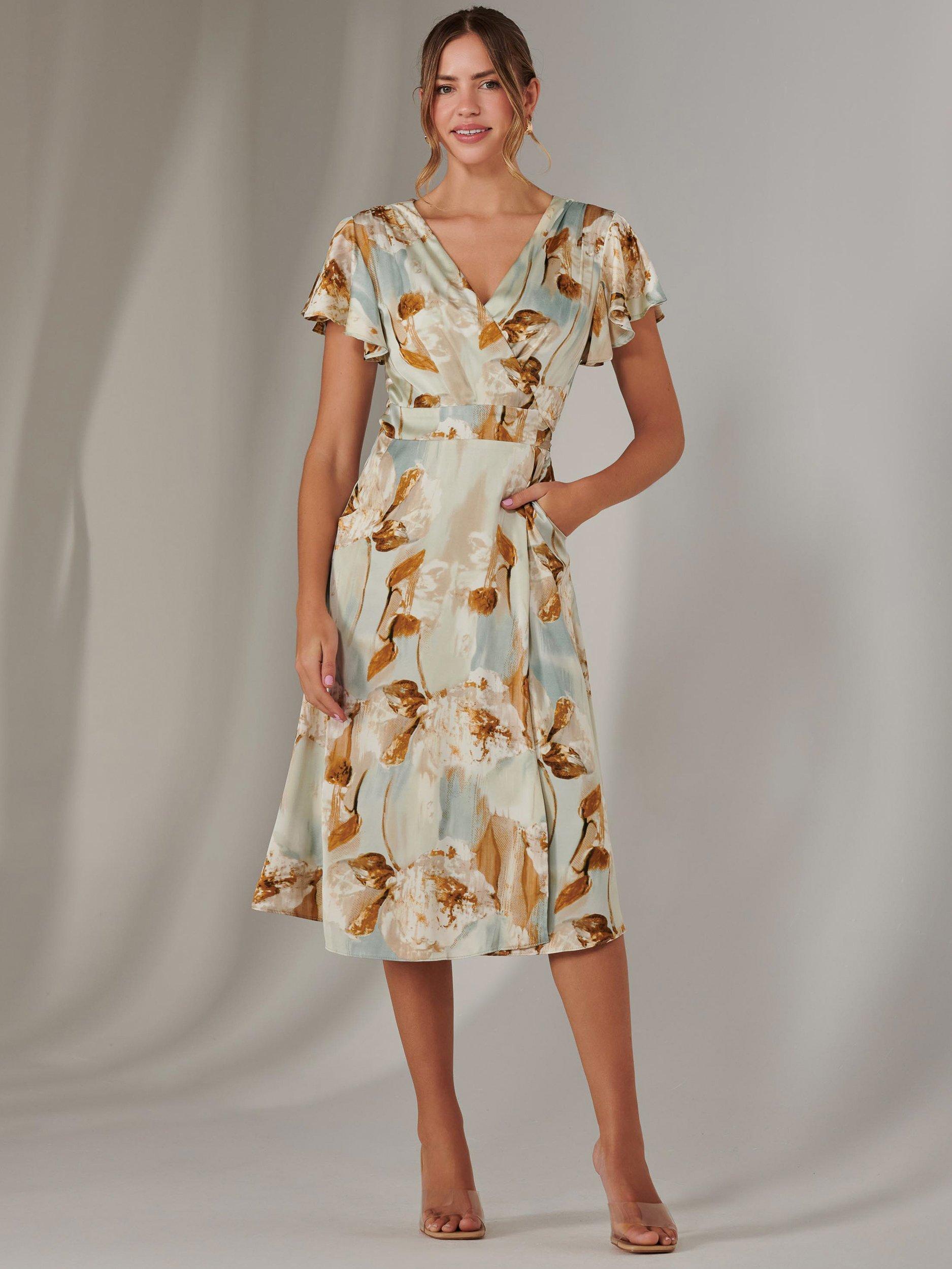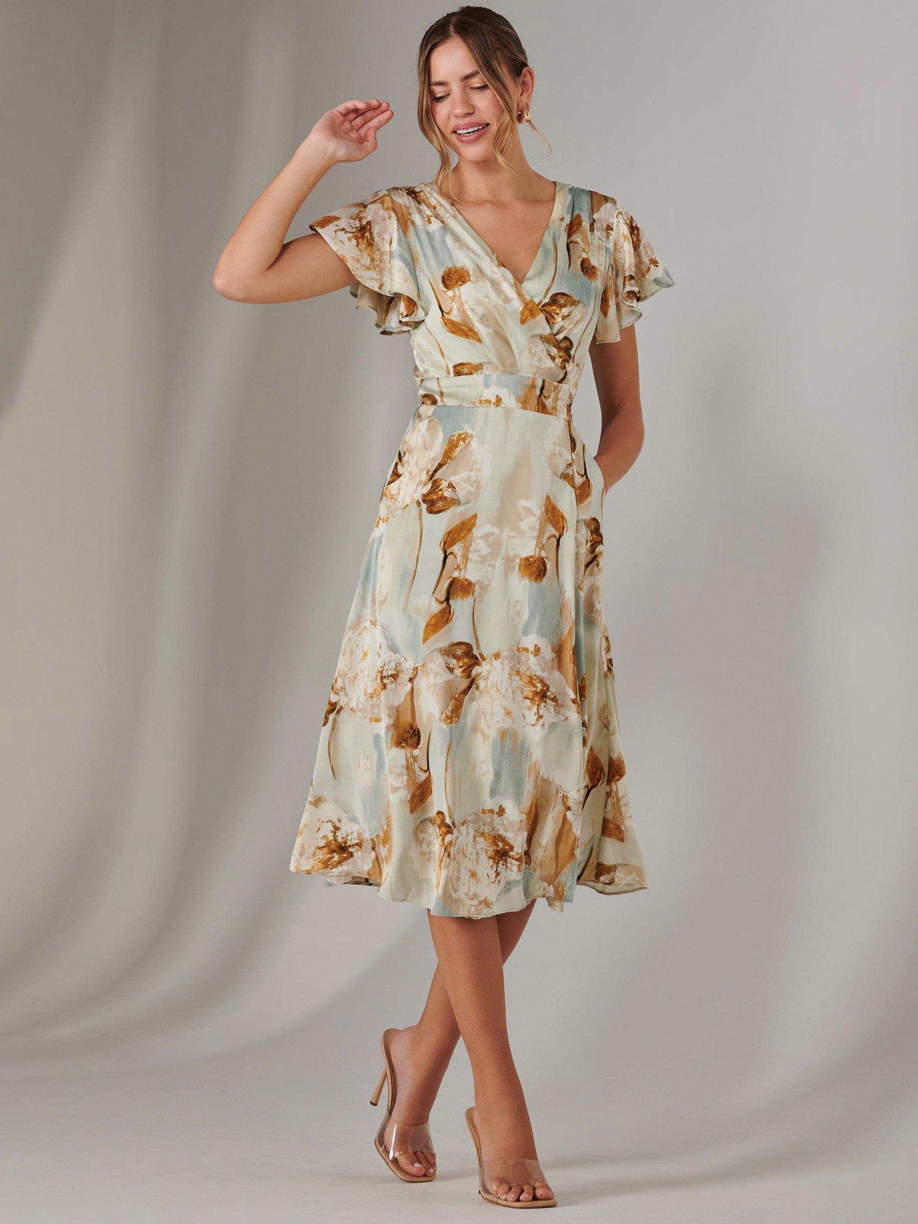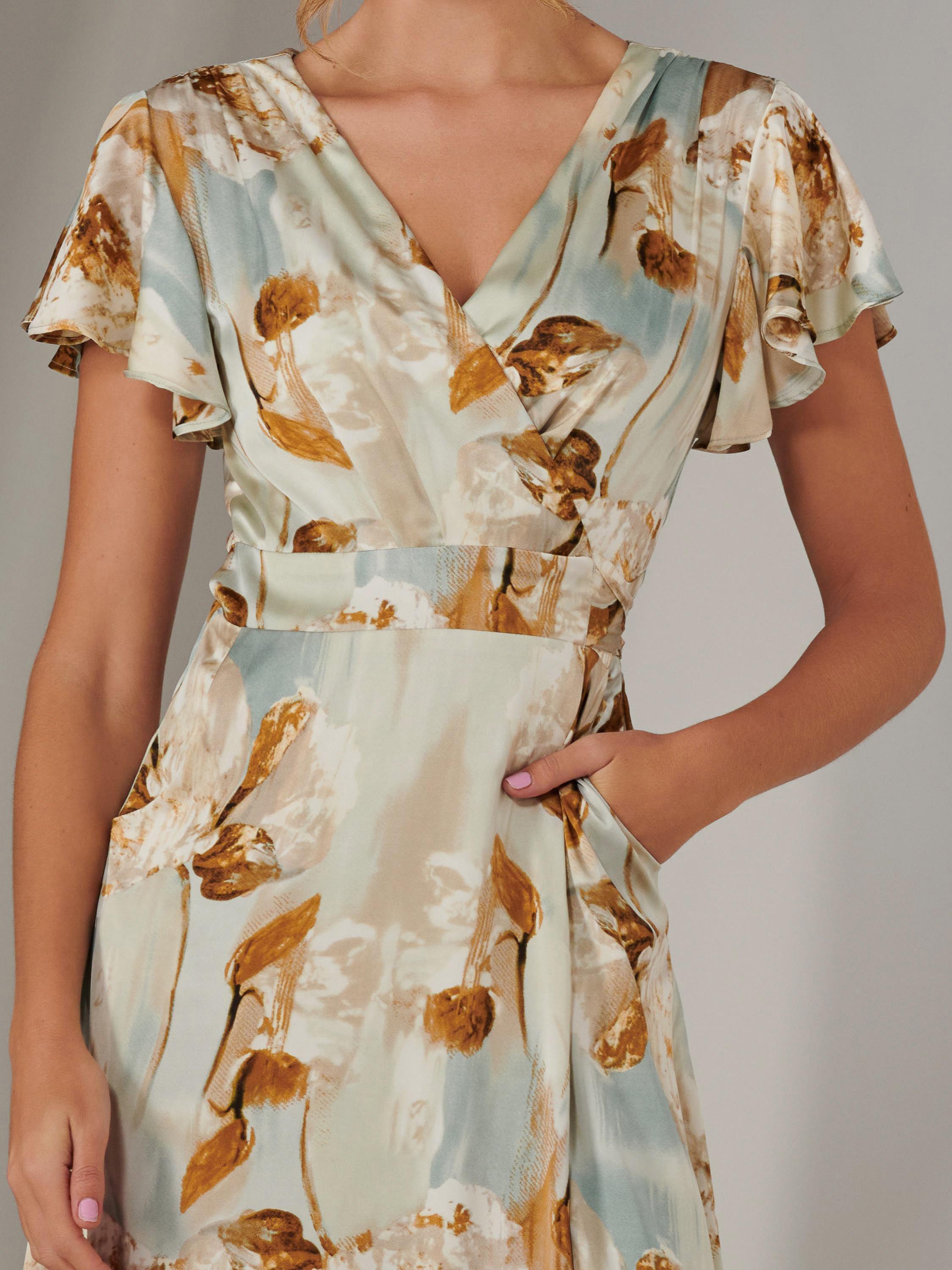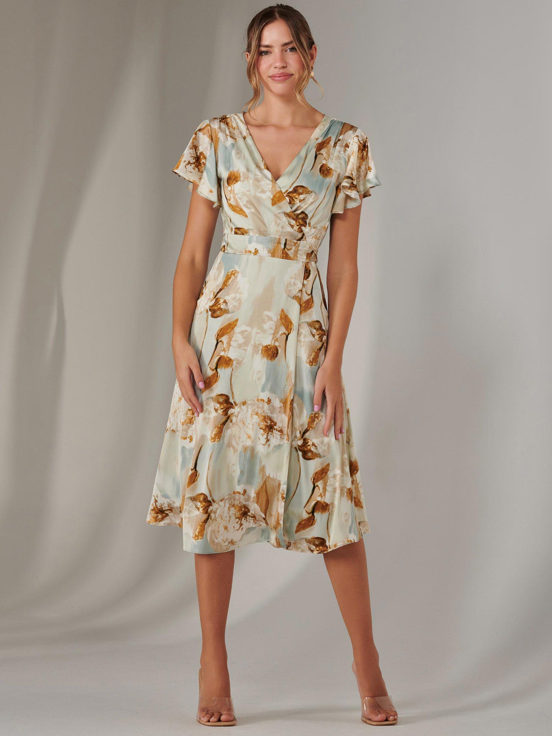Discover effortless elegance with the Abstract Wrap Dress from Jolie Moi, a beautifully designed piece that seamlessly blends comfort with chic. Featuring a figure flattering wrap body design, a soft V-neckline, and short angel sleeves. Finished with practical side pockets and a self-tie waist belt, it's as stylish as it is functional making it an essential addition to your wardrobe this season