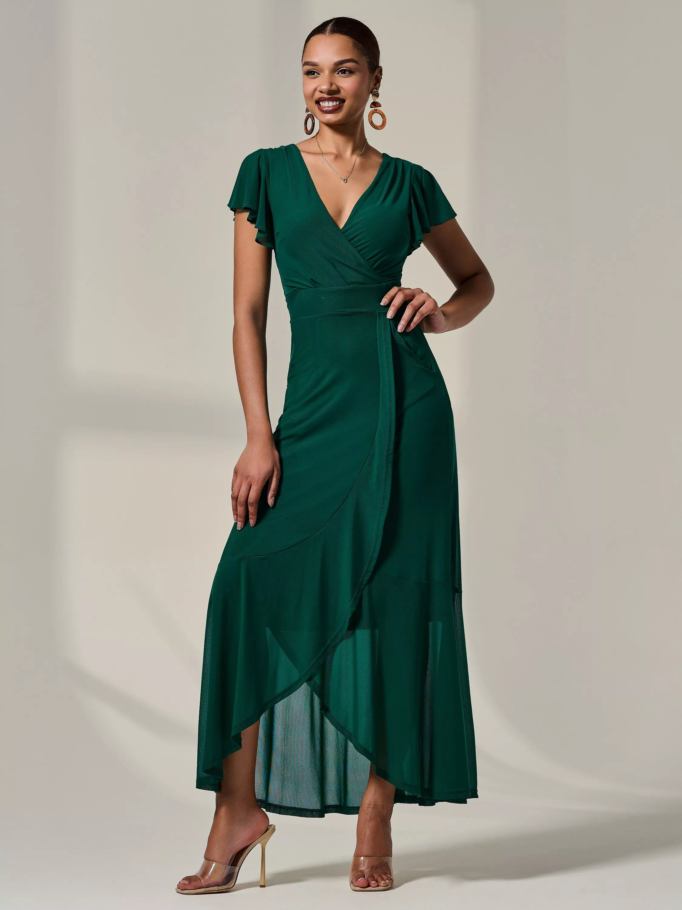 This short sleeve maxi dress by Jolie Moi features a wrap over neck and a plain design that's perfect for mixing and matching with your favourite accessories.