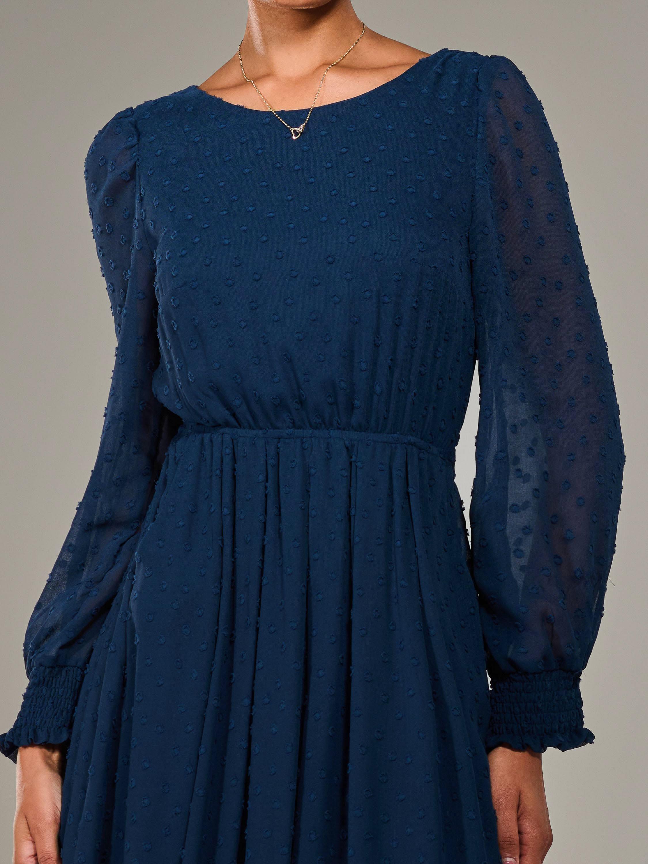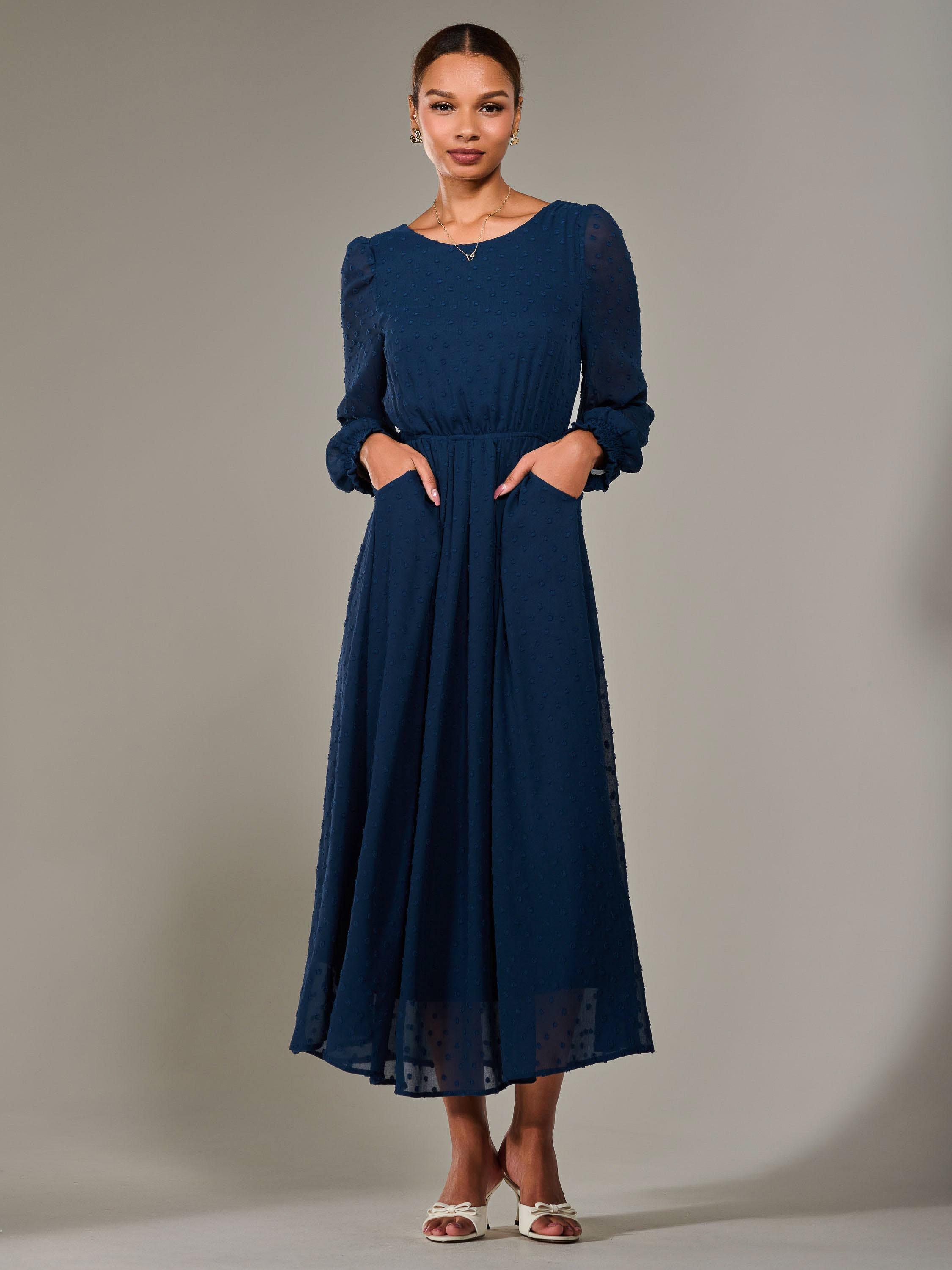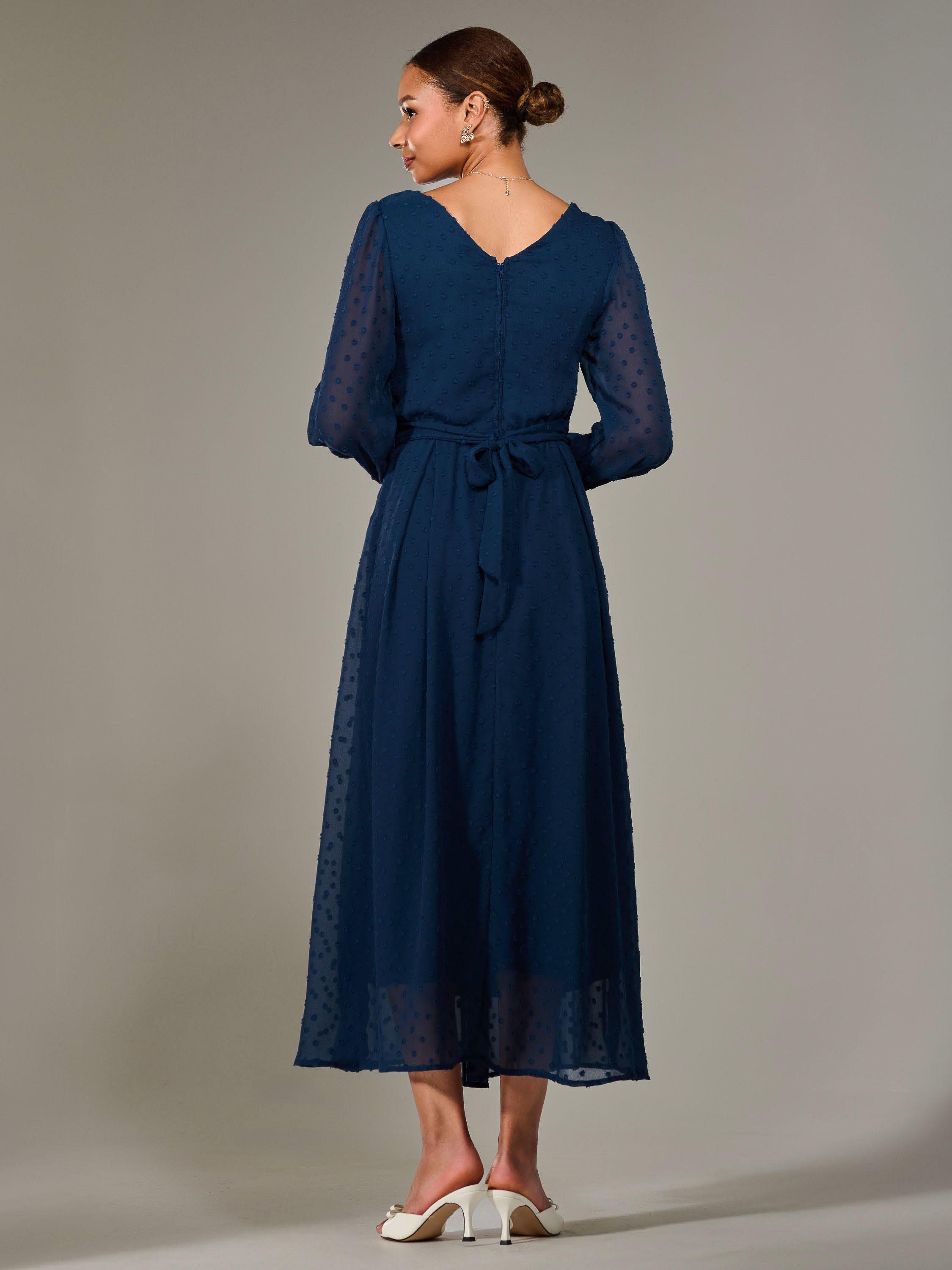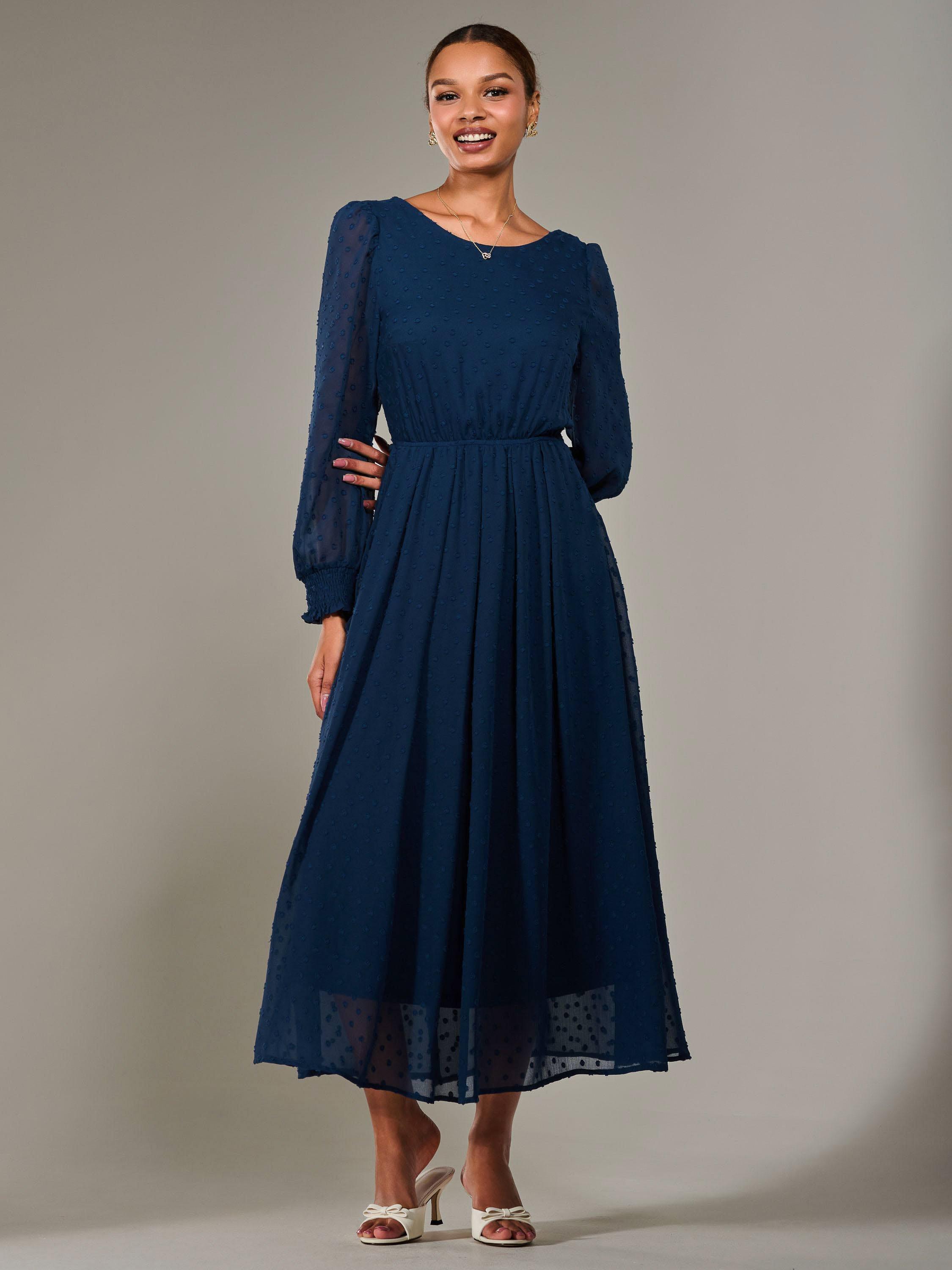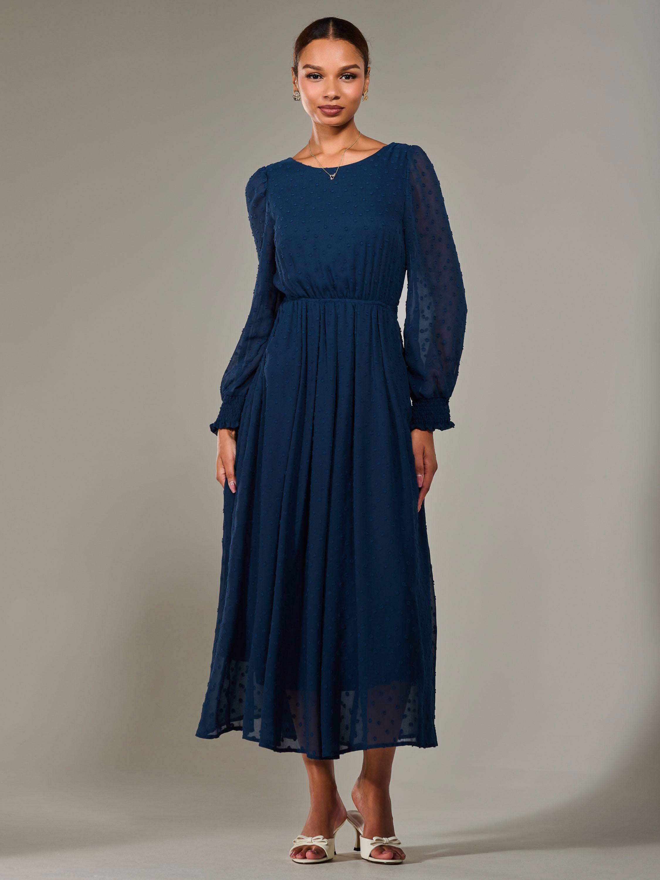 Fall in love with this Long Sleeve Midaxi Dress, the most gorgeous addition to your dress collection. Crafted from soft textured chiffon fabric, this dress flows beautifully down to a long maxi skirt, and is cinched at the waist by an elasticated waist band with a tie belt to create a flattering yet comfortable silhouette. It also has a modest round neckline and long sleeves with shirred cuffs that gather the perfect amount, whilst still being light and airy. The v back neckline flows into a discreet back centre zip, ensuring a sleek finish, as well as being fully lined for extra comfort.