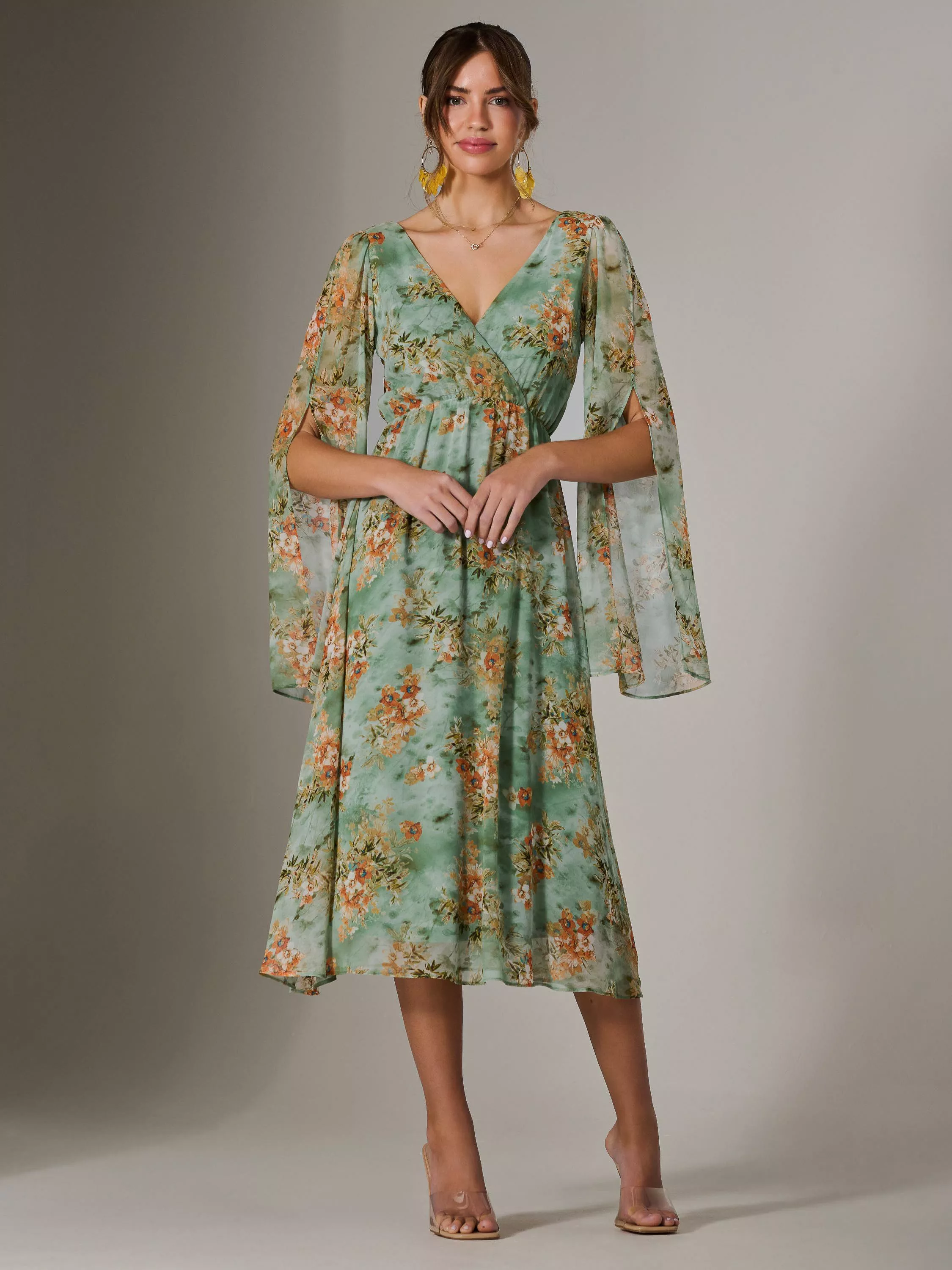 Enchant with this gorgeous Chiffon Split Sleeve Midaxi Dress from Jolie Moi. Featuring floaty split sleeves and cold shoulders, this midaxi-length dress captures the essence of boho style. The flattering wrap neckline creates a soft, feminine touch, while the concealed back zipper ensures a sleek finish. Simply accessorize with dainty jewellery and comfortable heels, for a flawless look.