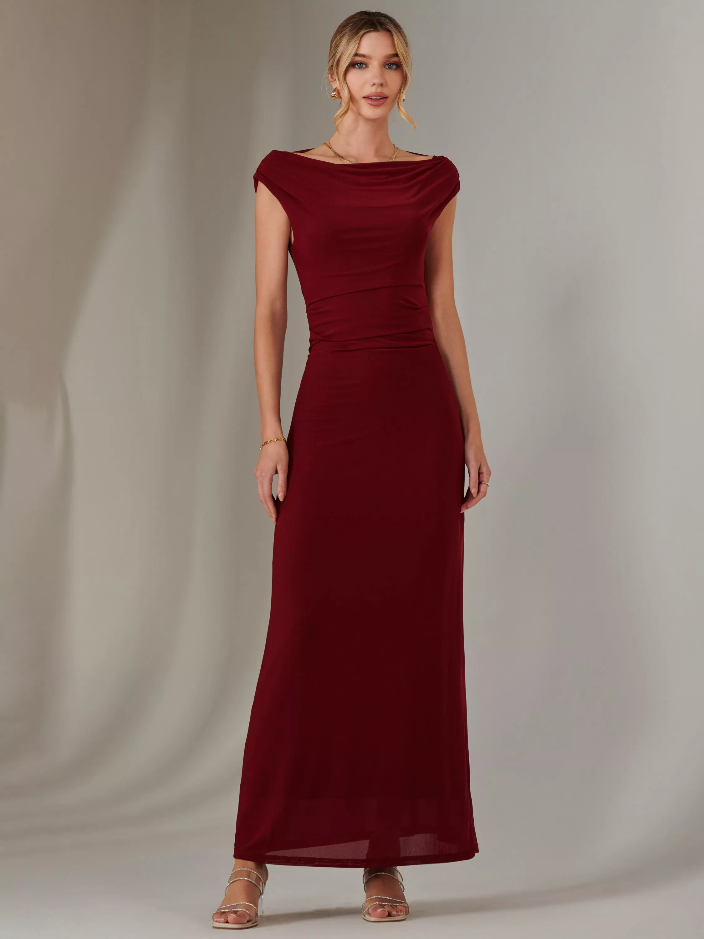 Jolie MoiEva Draped Cowl Neck Maxi Dress, Burgundy, 10