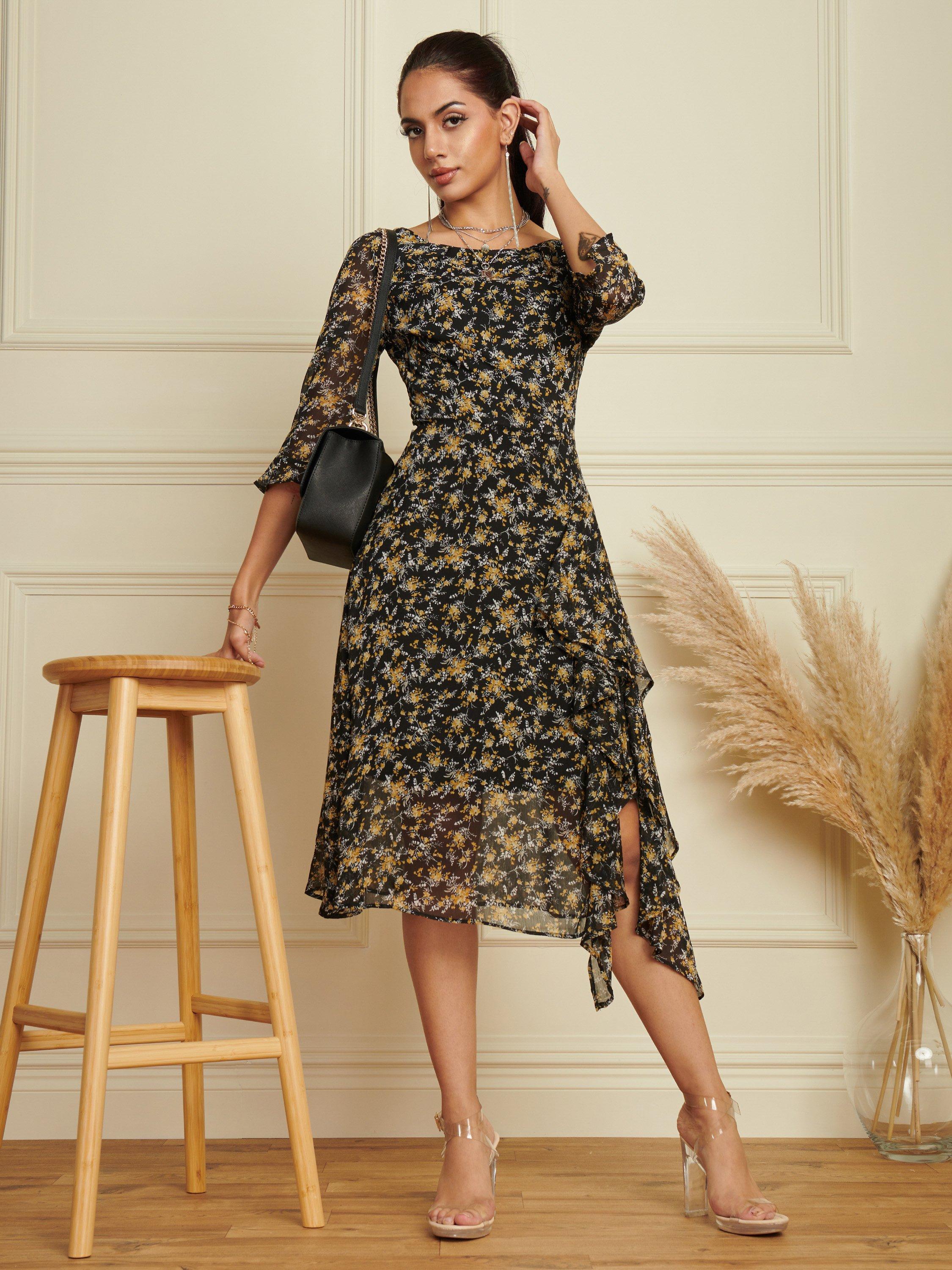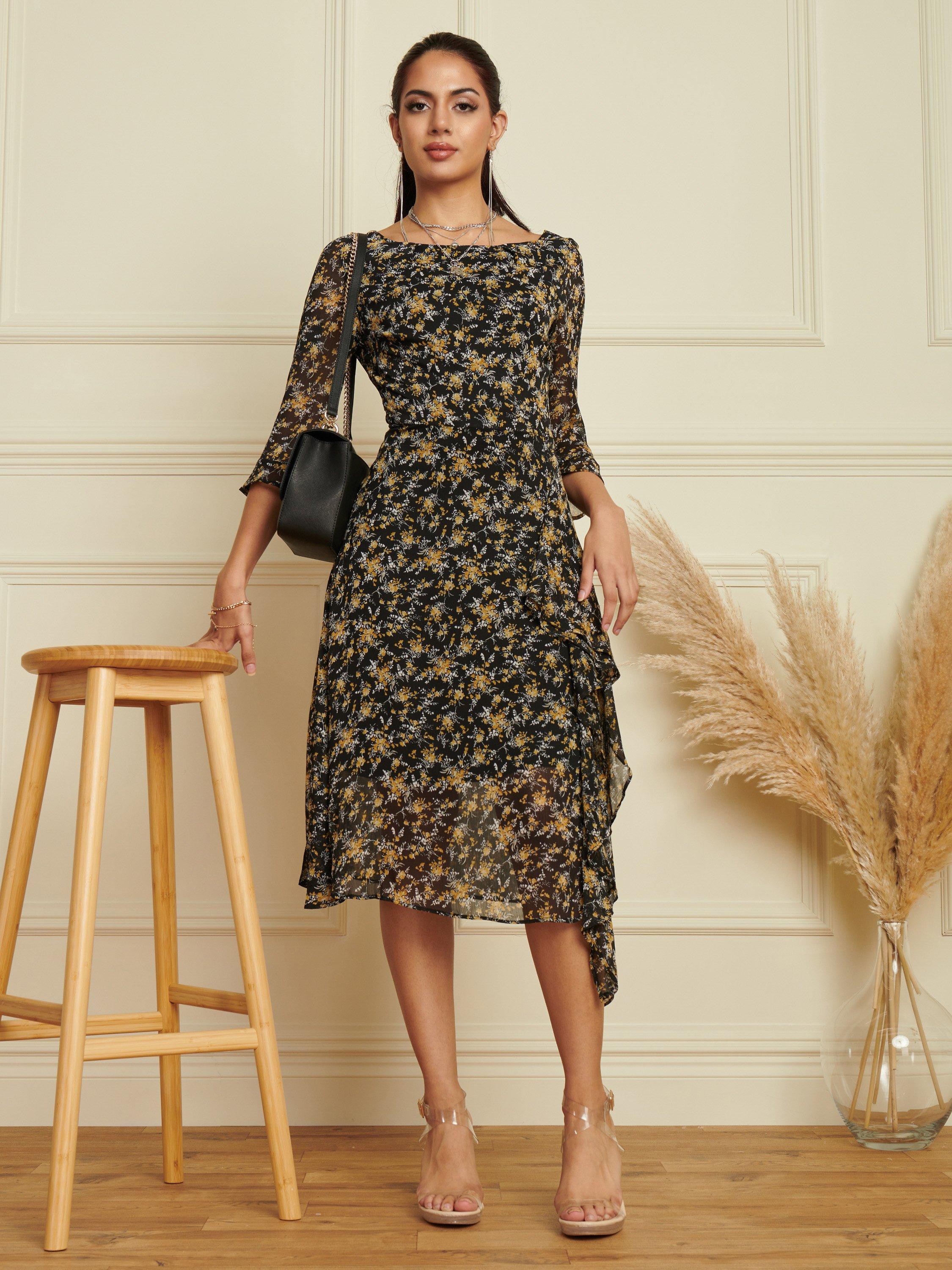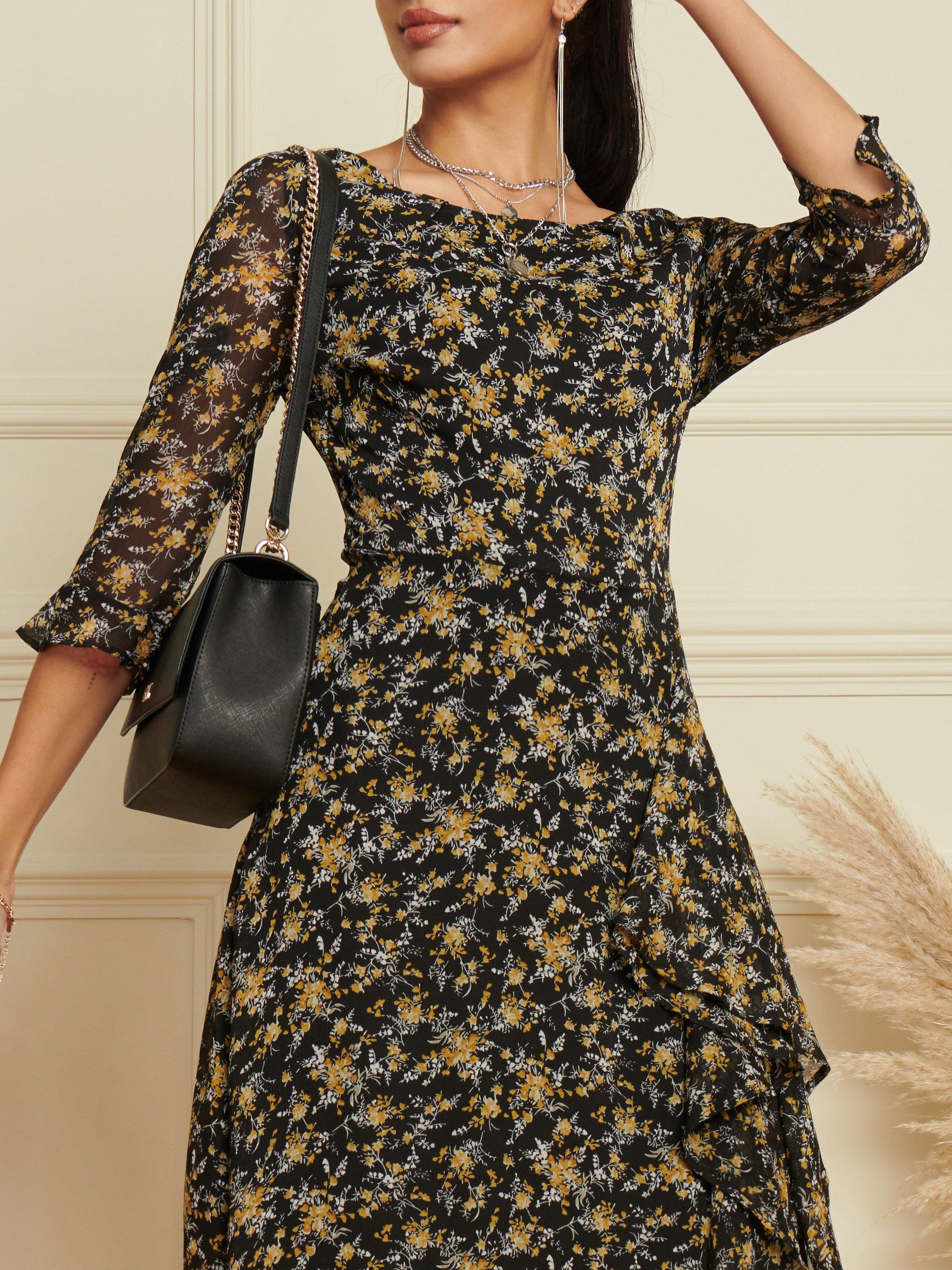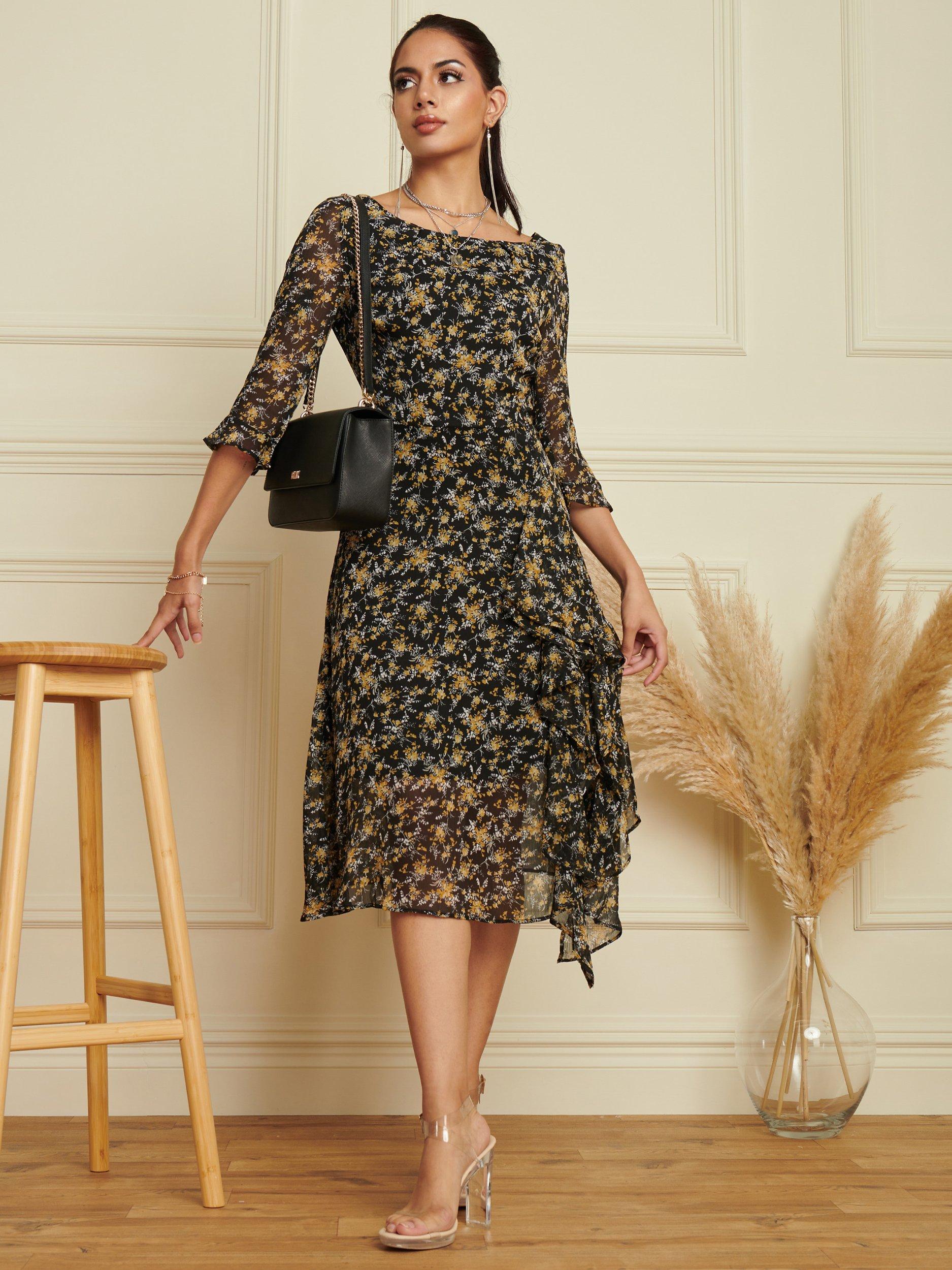 Entirely flattering with its A-line shape, this mid-length dress from Jolie Moi is made to withstand plenty of wear (and washing for that matter). Defined with a boat neckline and three quarter length sleeves, it guarantees that if floral prints are your thing, you'll love this.