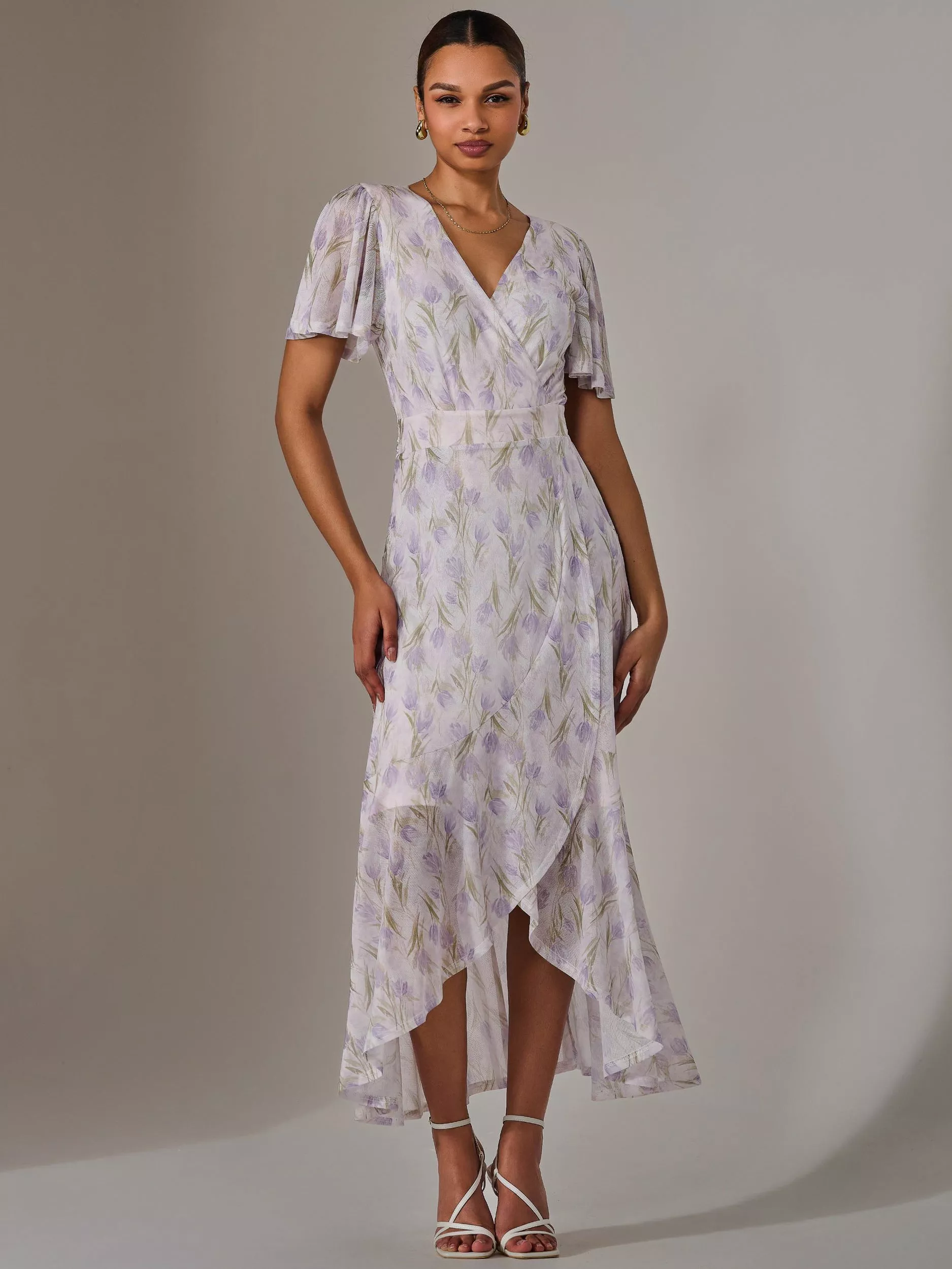 Embrace femininity in the Floral Wrap Midmaxi Dress from Jolie Moi, with its gorgeous ruffled wrap skirt and floaty mesh sleeves, perfect for summer parties, or when you're wanting to feel your best. The v-neckline and matching back detail make this dress stylish and flattering, in addition to the discreet shoulder pads, which create more structure, which is perfectly balanced by the dress's ethereal print and soft material. The tie belt at the waistband allows you to create the perfect silhouette whilst remaining comfortable and easy to wear.
