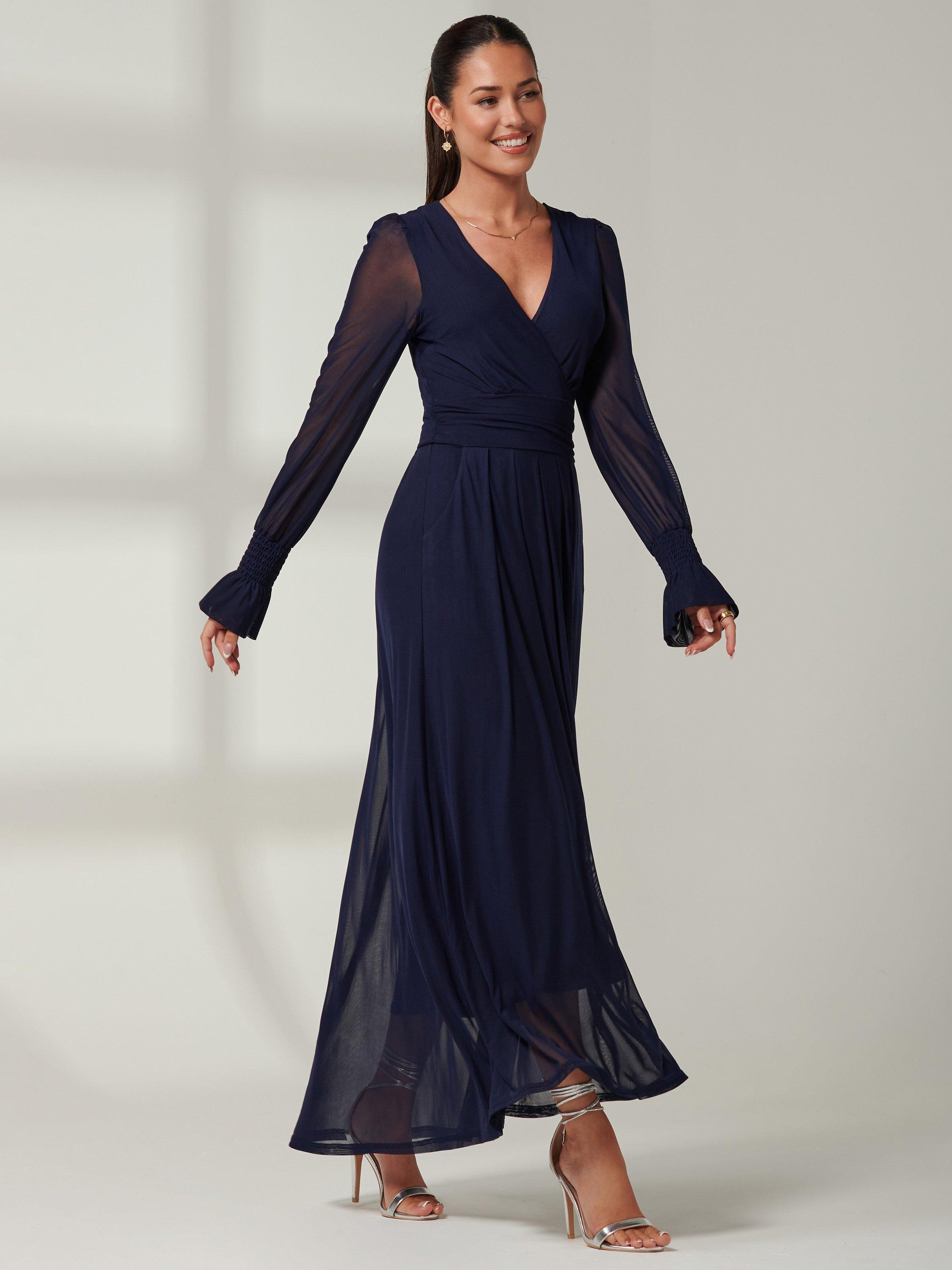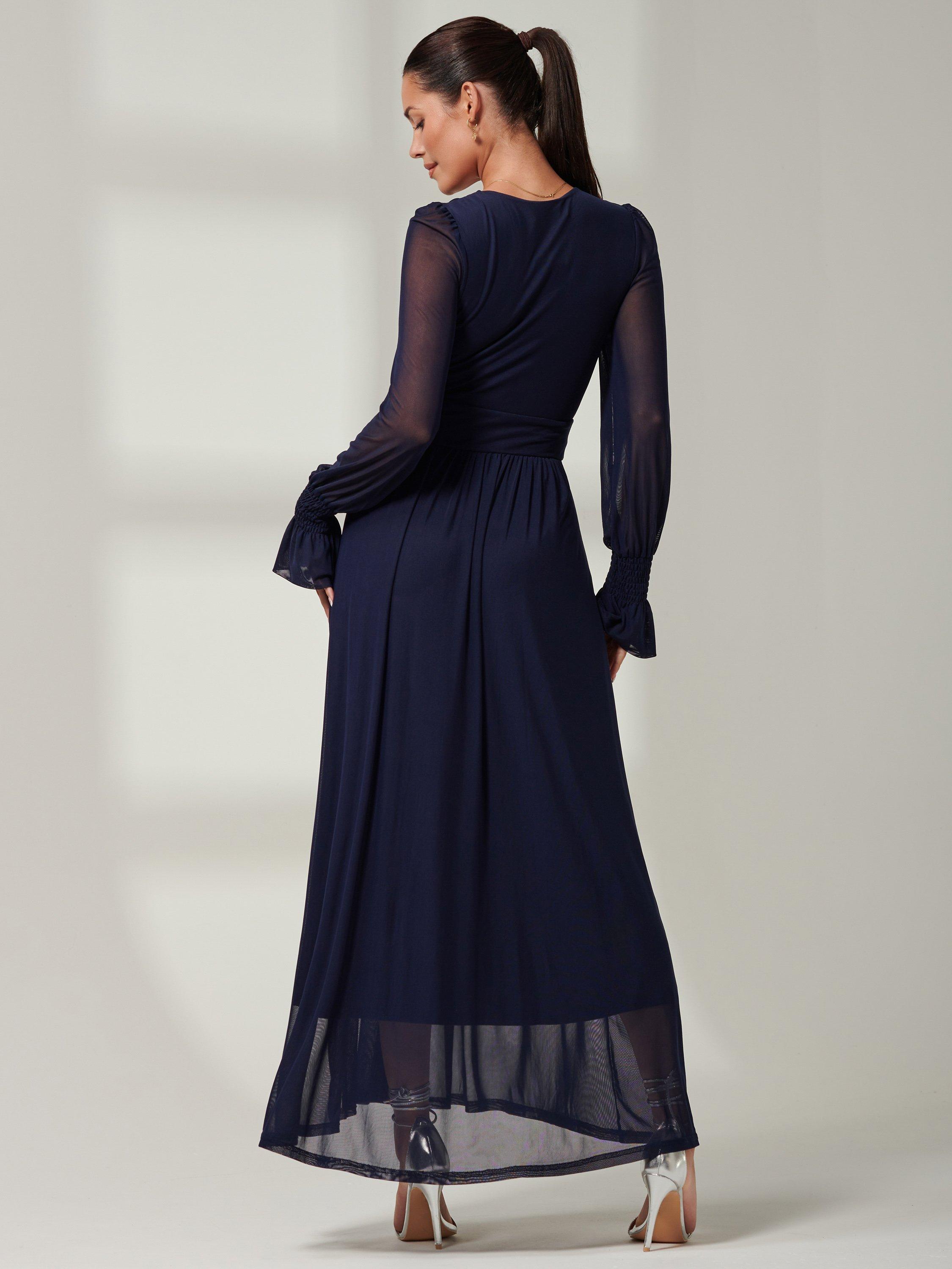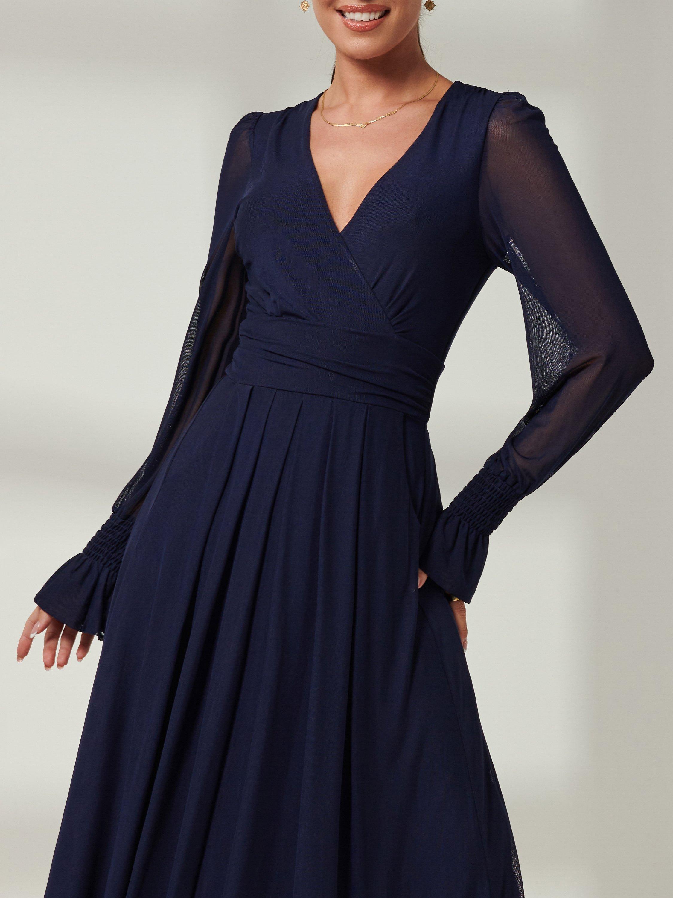 Designed in a fuss-free A-line style, this maxi dress from Jolie Moi is made using a synthetic fabric. With a flattering wrap neckline and full-length sleeves, this style comes without pattern or print so you can set your imagination and creativity free when it comes to accessorising.