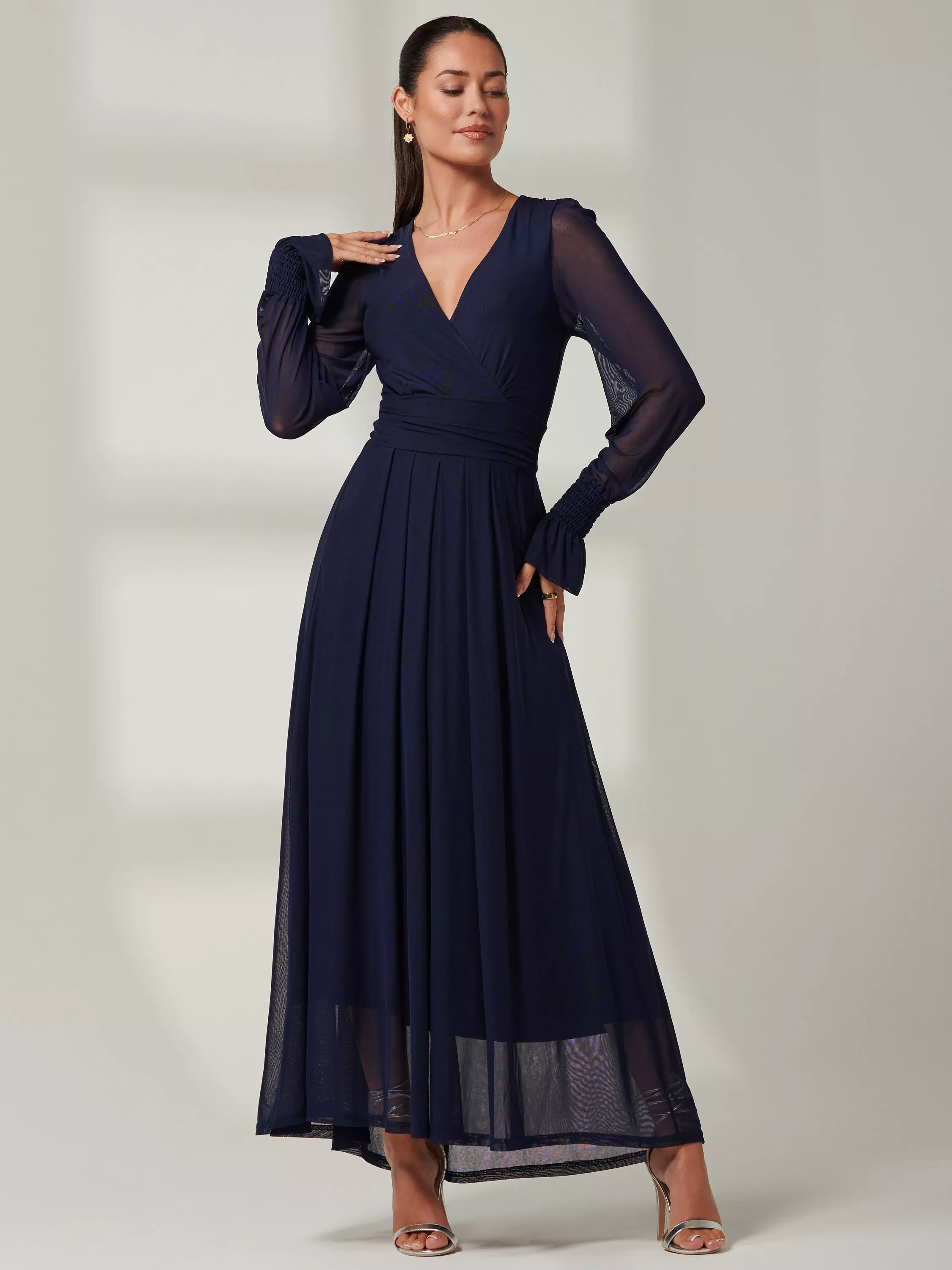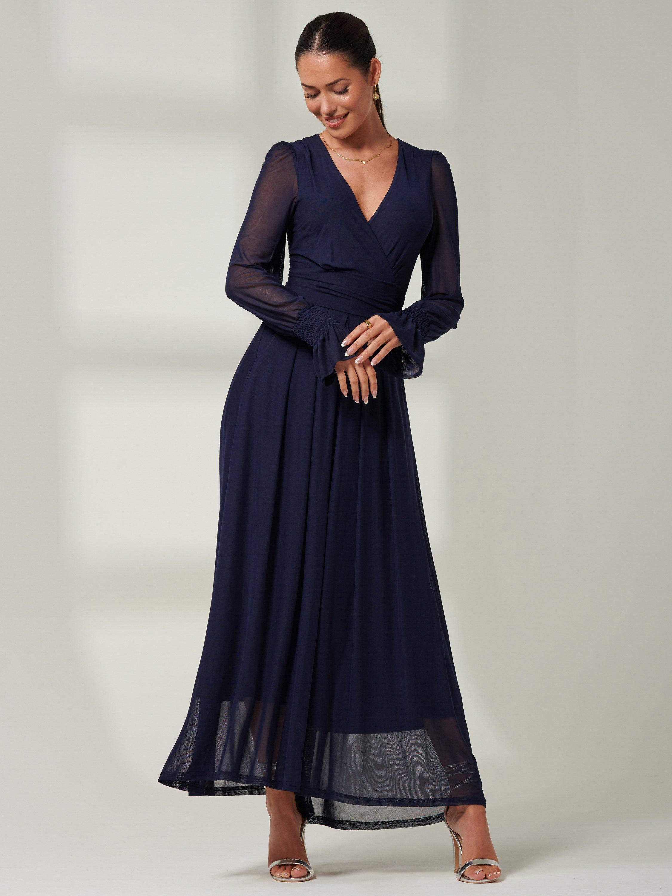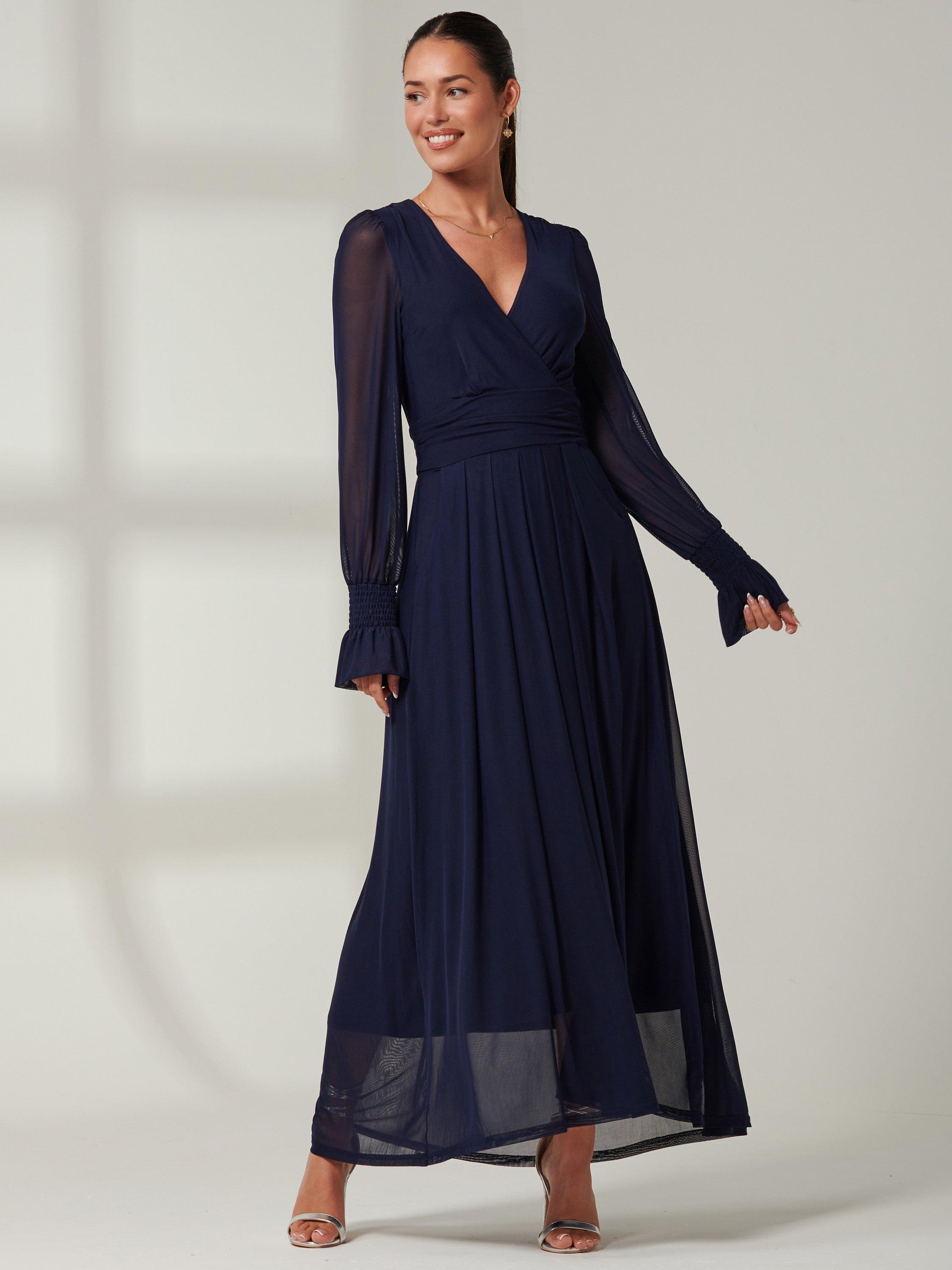 Designed in a fuss-free A-line style, this maxi dress from Jolie Moi is made using a synthetic fabric. With a flattering wrap neckline and full-length sleeves, this style comes without pattern or print so you can set your imagination and creativity free when it comes to accessorising.