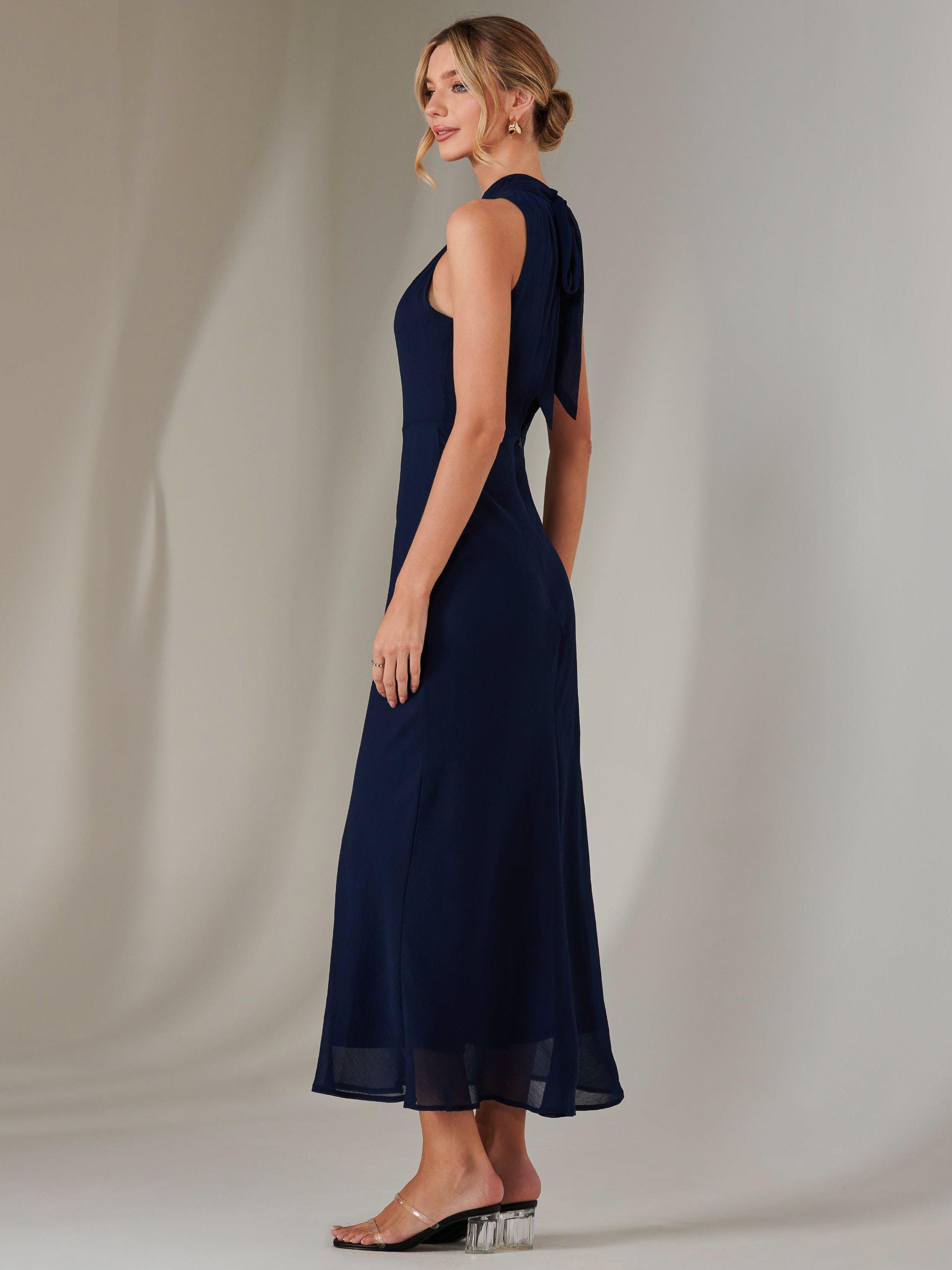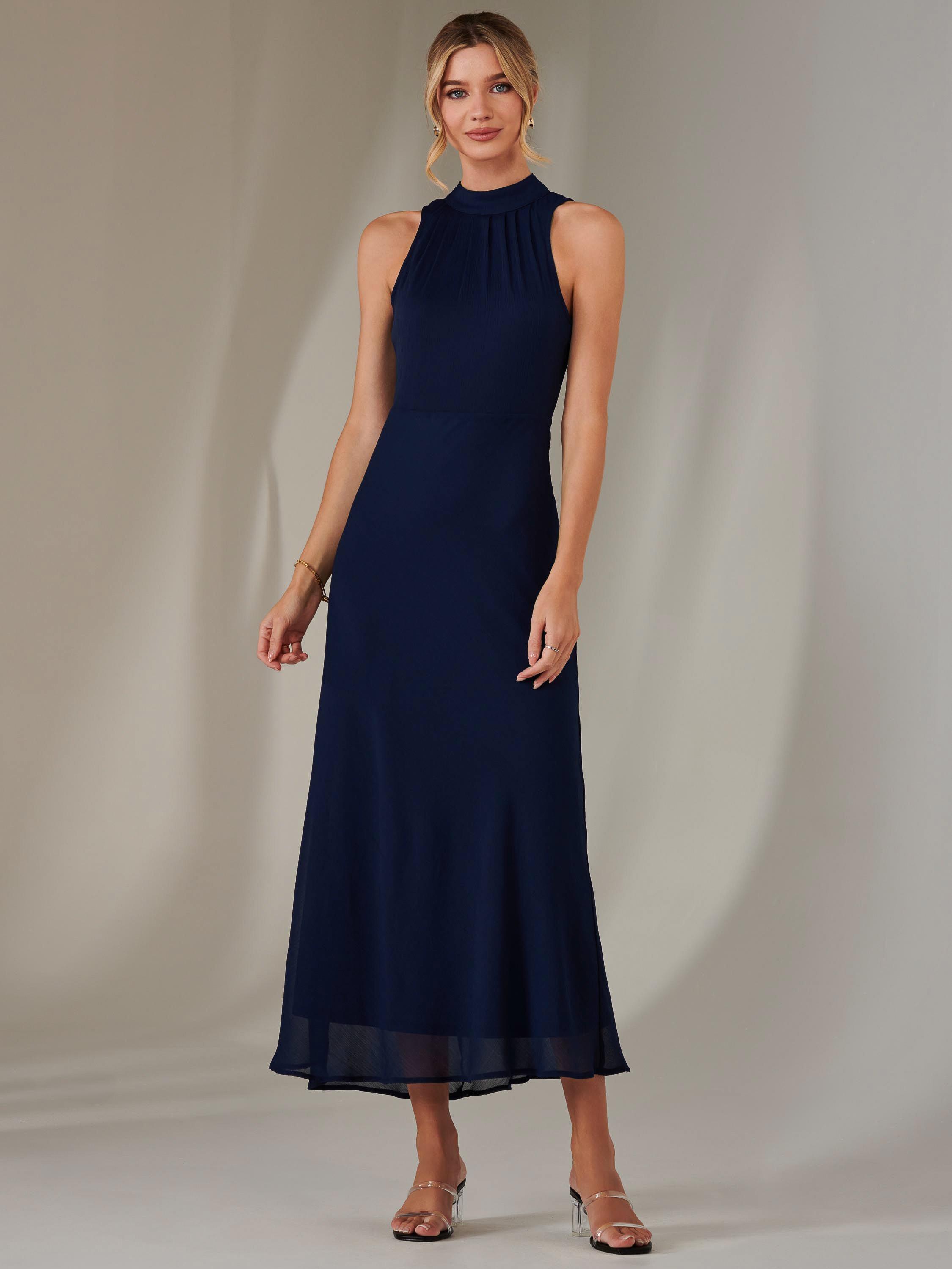 The Halterneck Maxi Dress is an elegant and minimalistic dress that is versatile enough for any special occasion. With an adjustable tied halter neck, this formal maxi dress features a stunning low-cut back and sleeveless design. This halterneck style dress stands out, adding a touch of sophistication and uniqueness to this maxi dress. A softly pleated body, this halter neck maxi dress boasts a flowing yet fitted skirt with a comfortable and stretchy fitted underlayer to ensure a smooth silhouette. The lightweight chiffon material ensures breathability to maintain comfort when wearing.