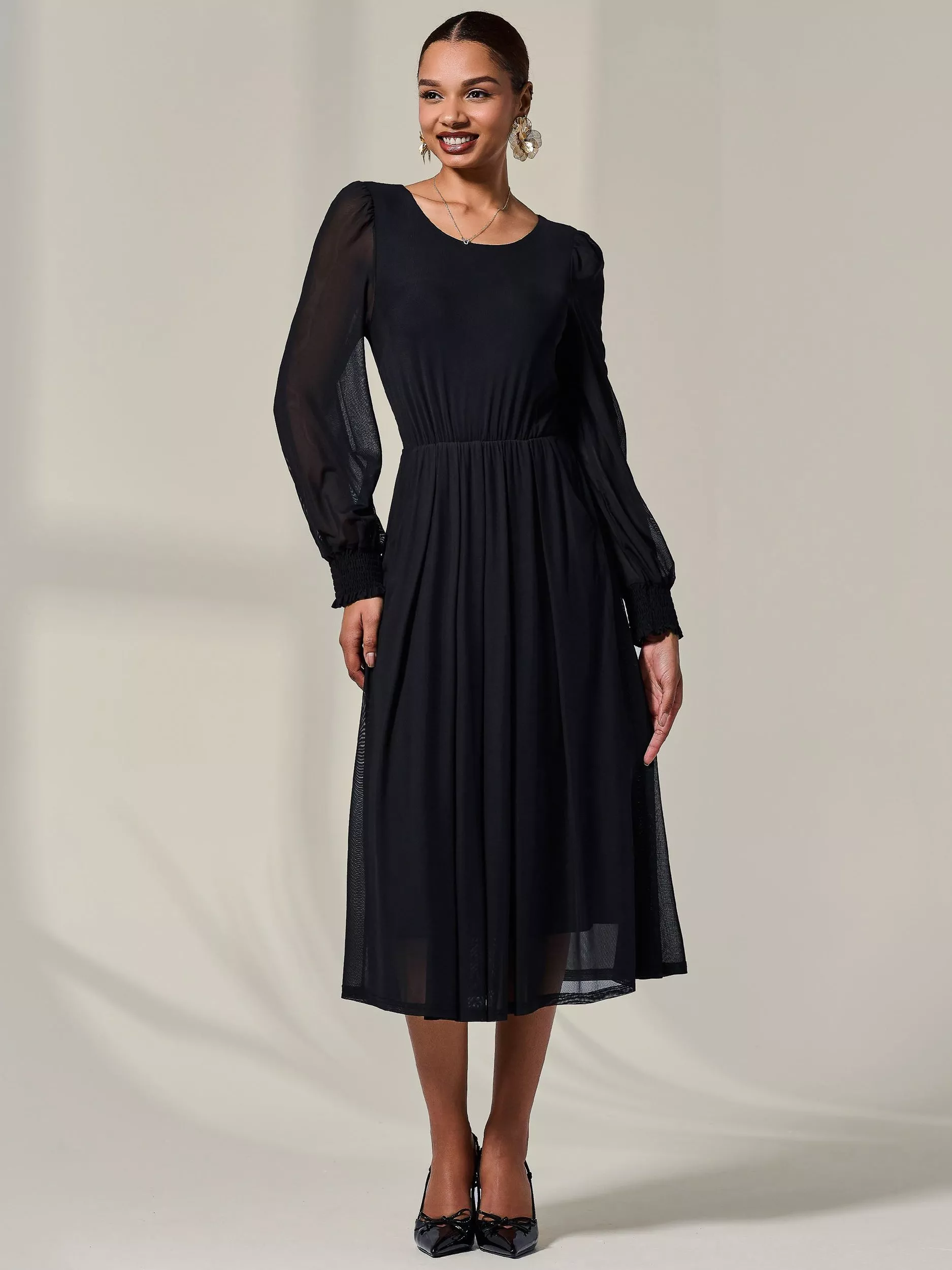 Jolie MoiLong Sleeve Midi Dress, Black