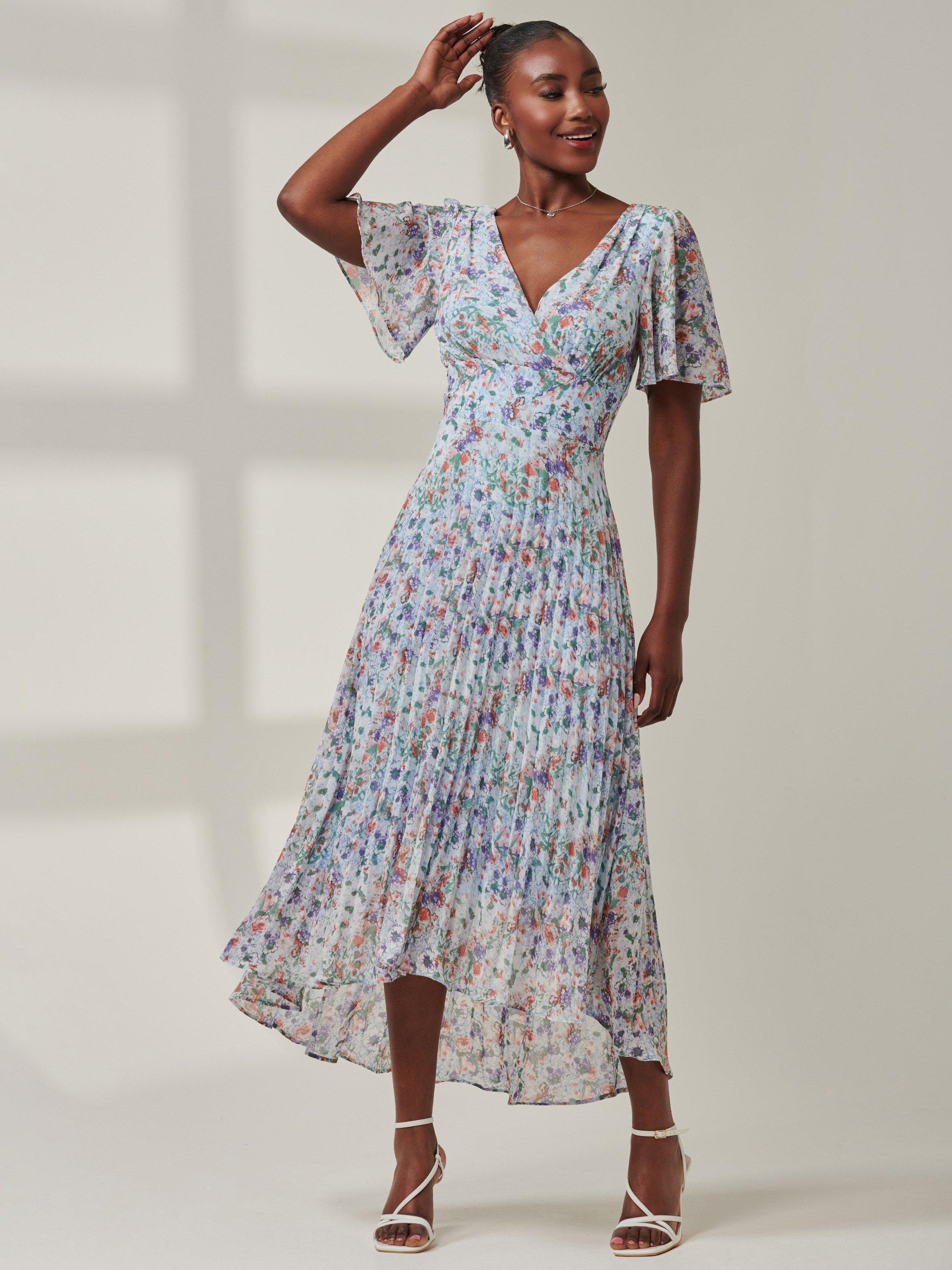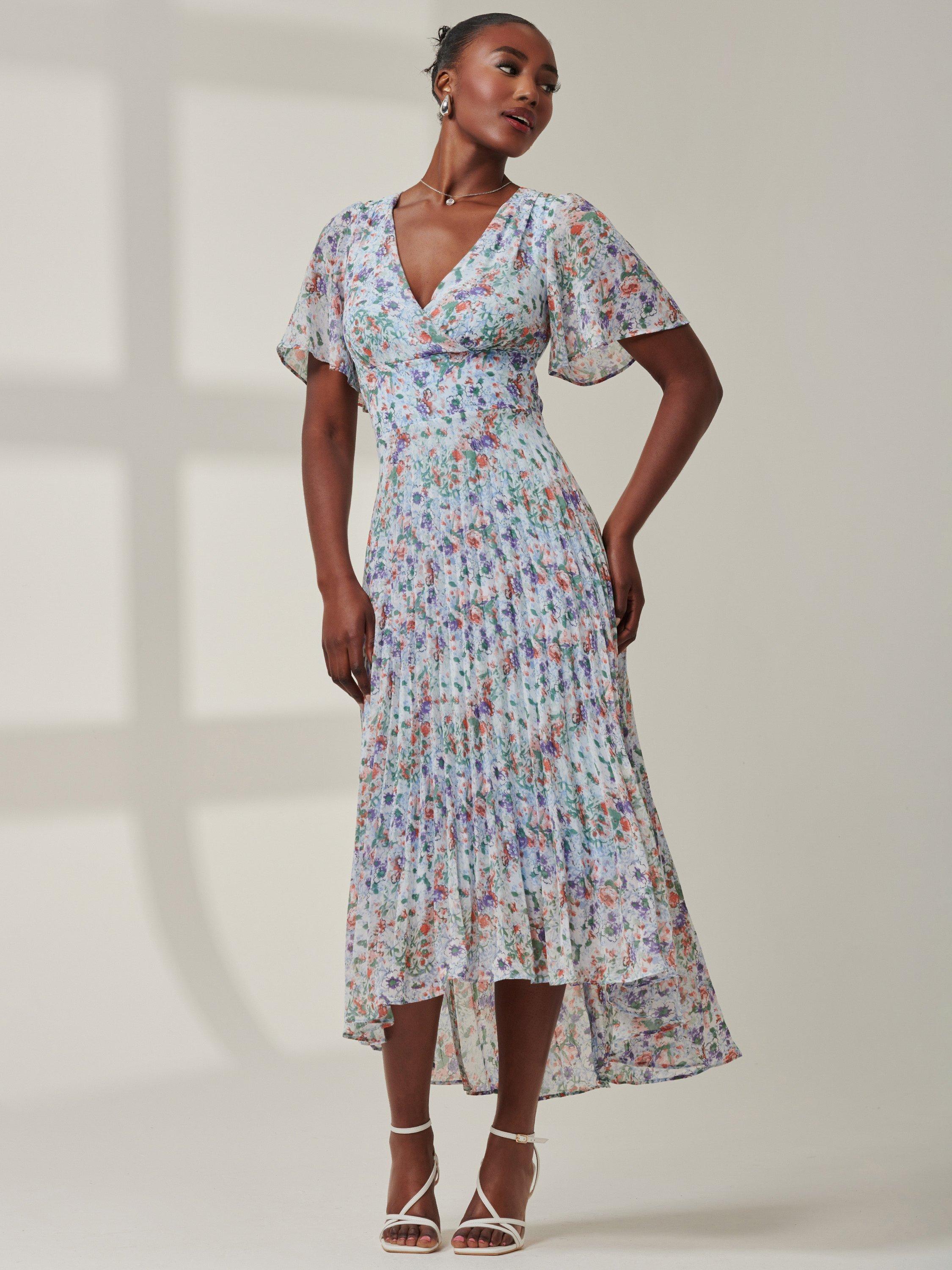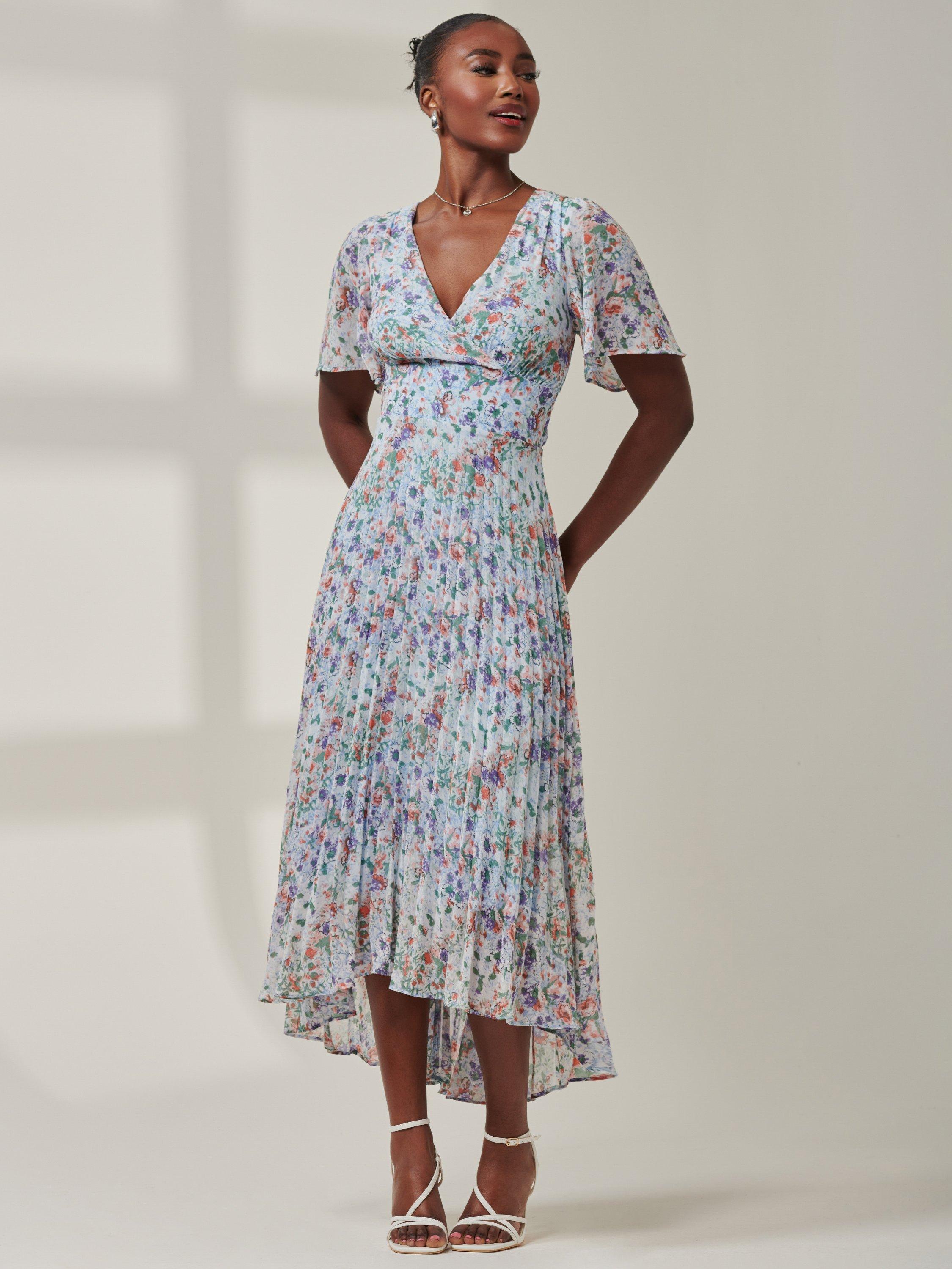 A fusion of modern sophistication and timeless charm, the Meagan maxi dress from Jolie Moi is complimented by a cute ditsy floral print, a high-low tiered hemline, short cap sleeves, and a flattering v-neckline exuding elegance from every angle. Complete with back-zip fastening and fully lined for comfort.
