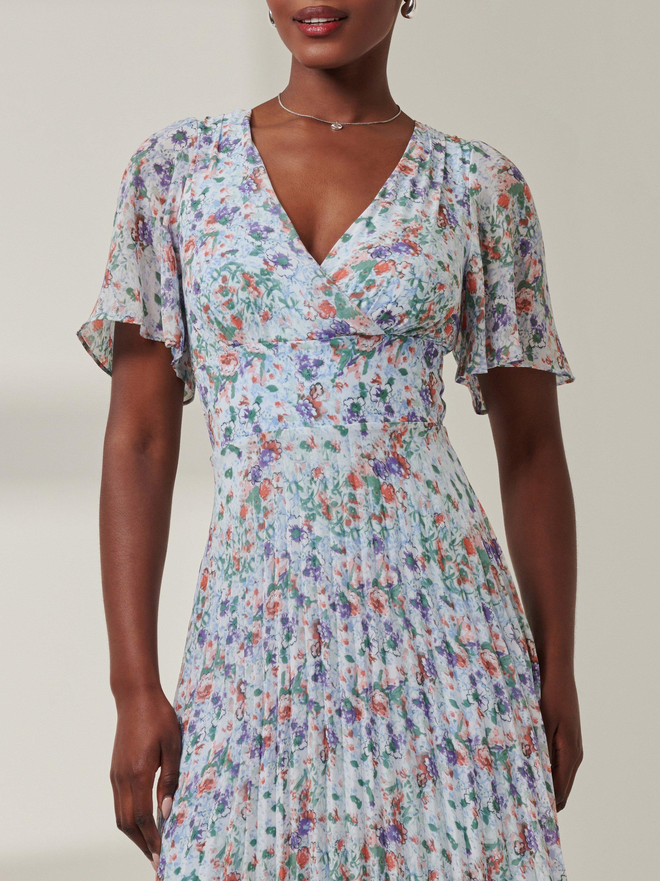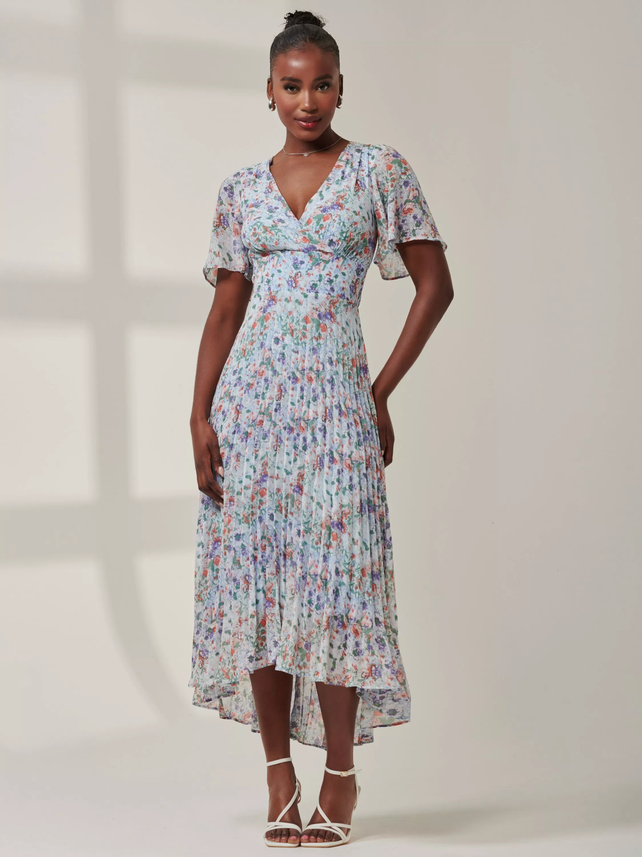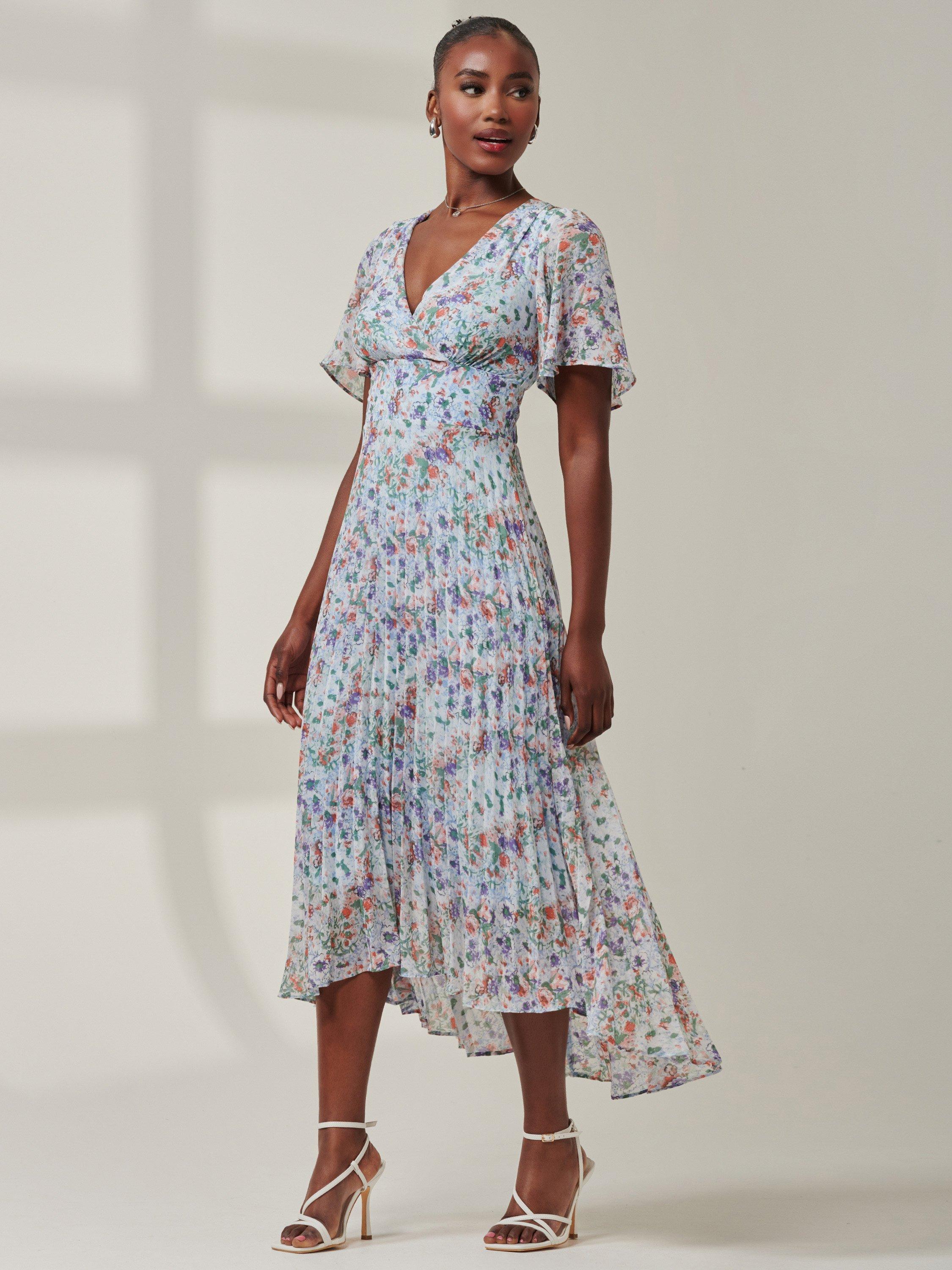 A fusion of modern sophistication and timeless charm, the Meagan maxi dress from Jolie Moi is complimented by a cute ditsy floral print, a high-low tiered hemline, short cap sleeves, and a flattering v-neckline exuding elegance from every angle. Complete with back-zip fastening and fully lined for comfort.