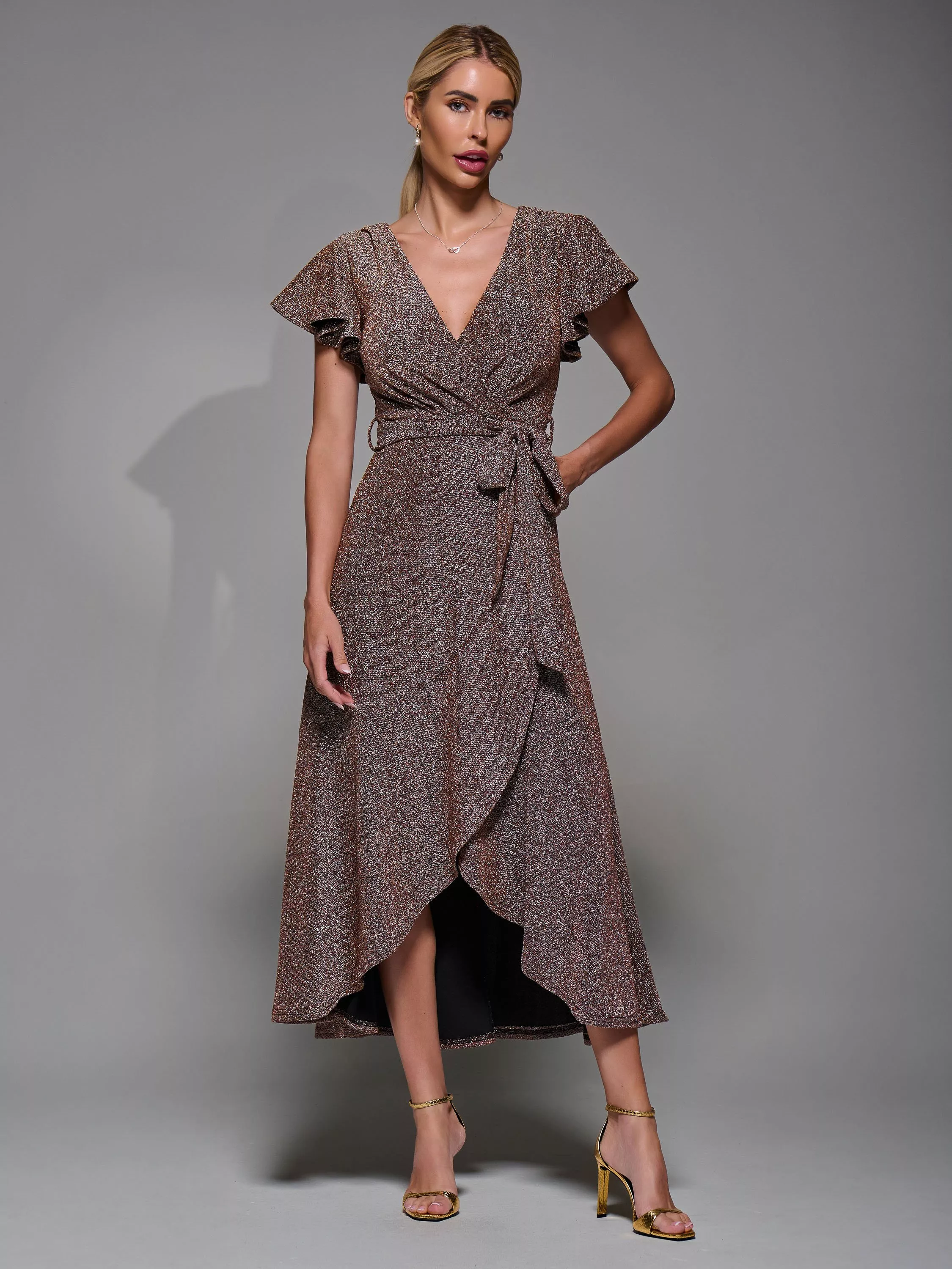 Jolie MoiMetallic Wrap Maxi Dress, Gold/Red