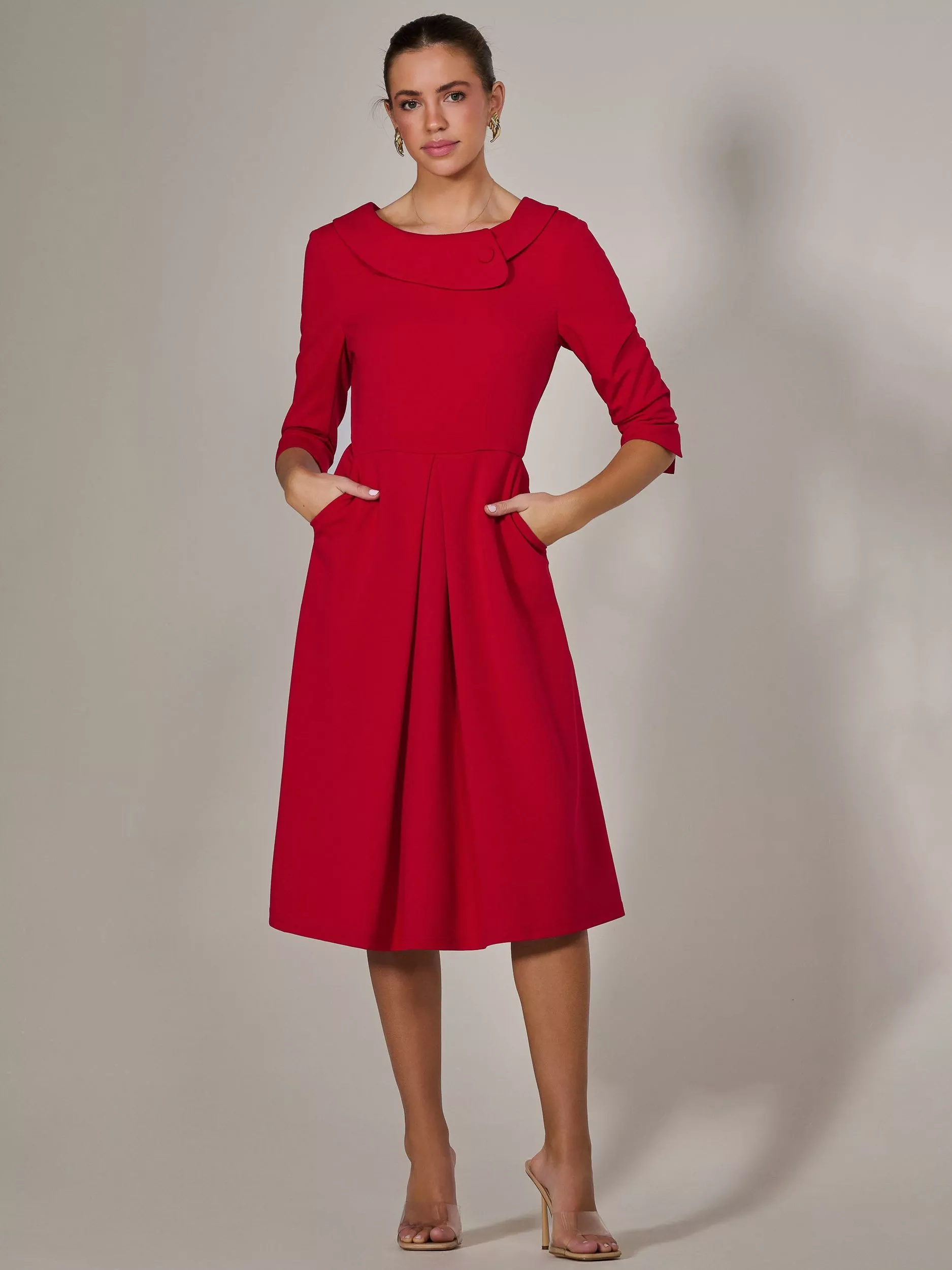 Evoke the grace of a bygone era with the Roll Collar Long Sleeve Midi Dress from Jolie Moi, a classic style reimagined. The three-quarter length sleeves and flattering midi length create a timeless silhouette, while the unique collar button neckline adds a distinctive vintage touch. Practical pockets combine style and function, and a concealed back zipper ensures a polished finish. This dress perfectly blends retro style with contemporary flair.