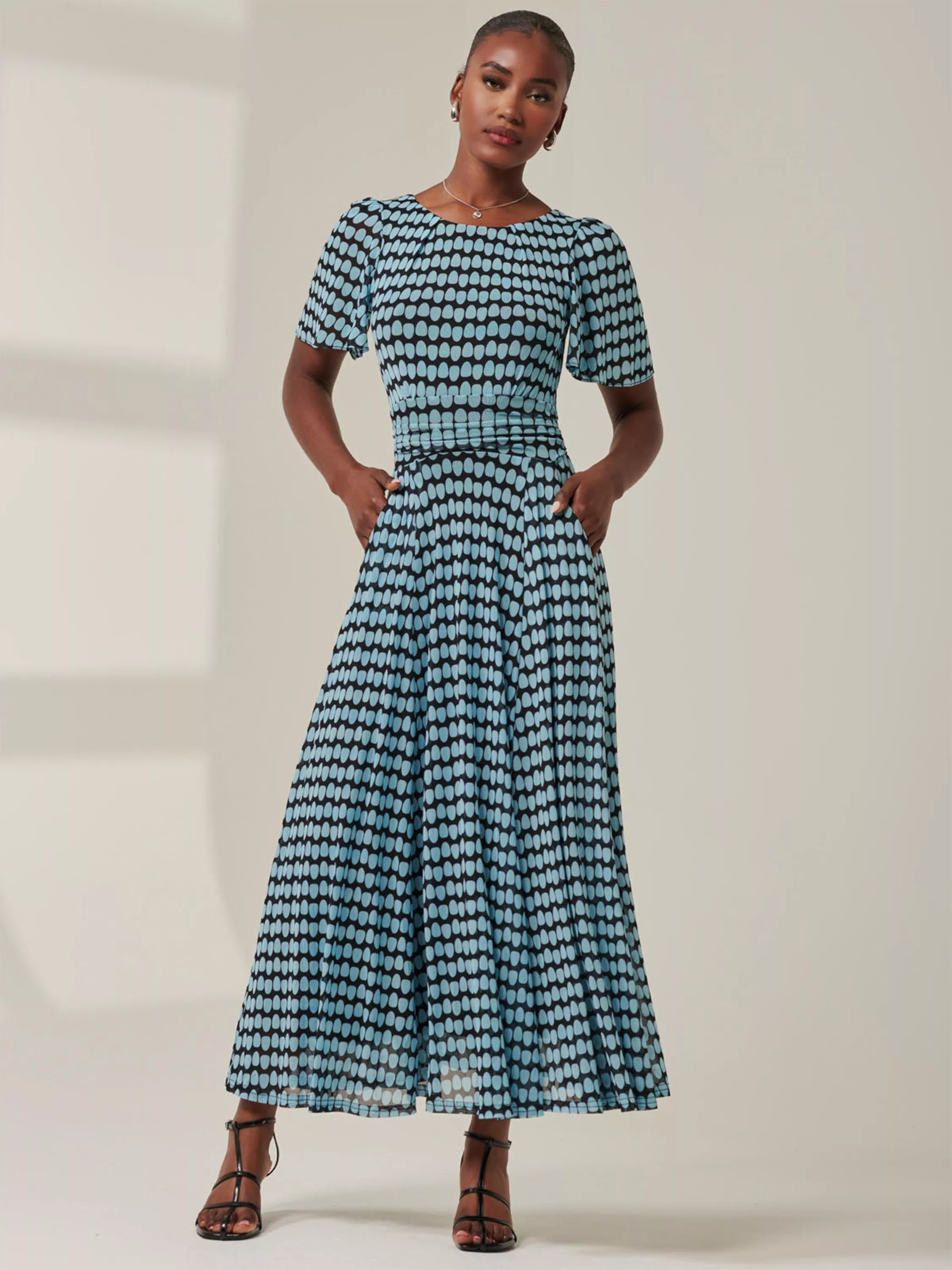 Indulge in timeless elegance with the Spot Print Mesh Maxi Dress from Jolie Moi. Made from stretchy, soft mesh fabric, this dress promises all-day comfort without compromising on elegance. With short angel sleeves, a rounded neckline, and a ruched self-tie waistband, this maxi dress flatters your figure and ensures you make a stylish statement on any occasion.