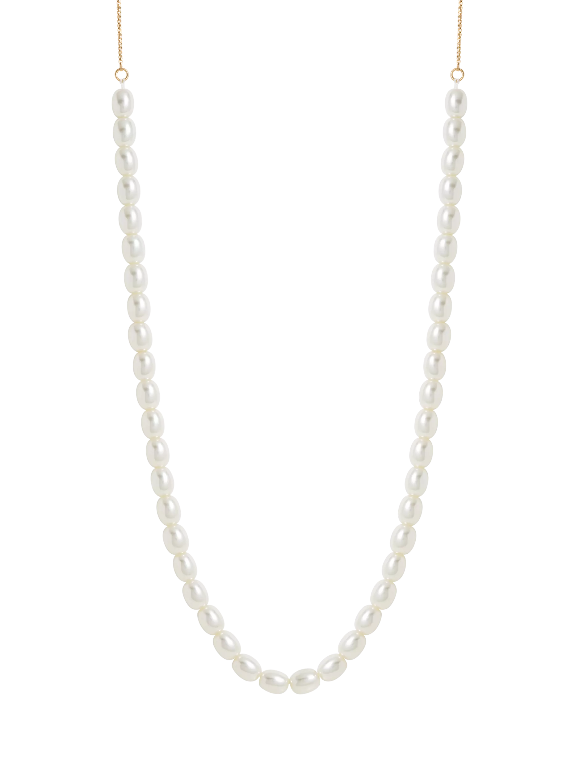 This longline pearl necklace combines classic elegance with modern versatility, featuring lustrous pearls. Its adjustable design allows for a customizable fit, making it a timeless accessory suitable for a variety of neckline styles.