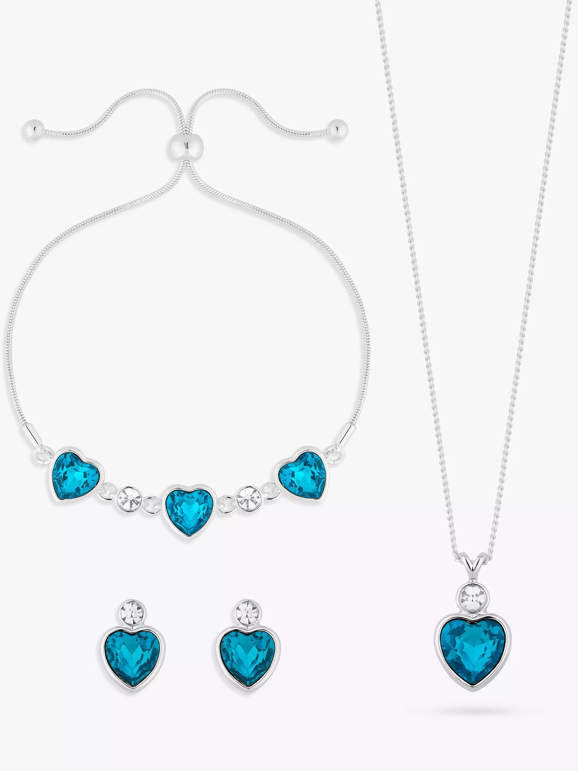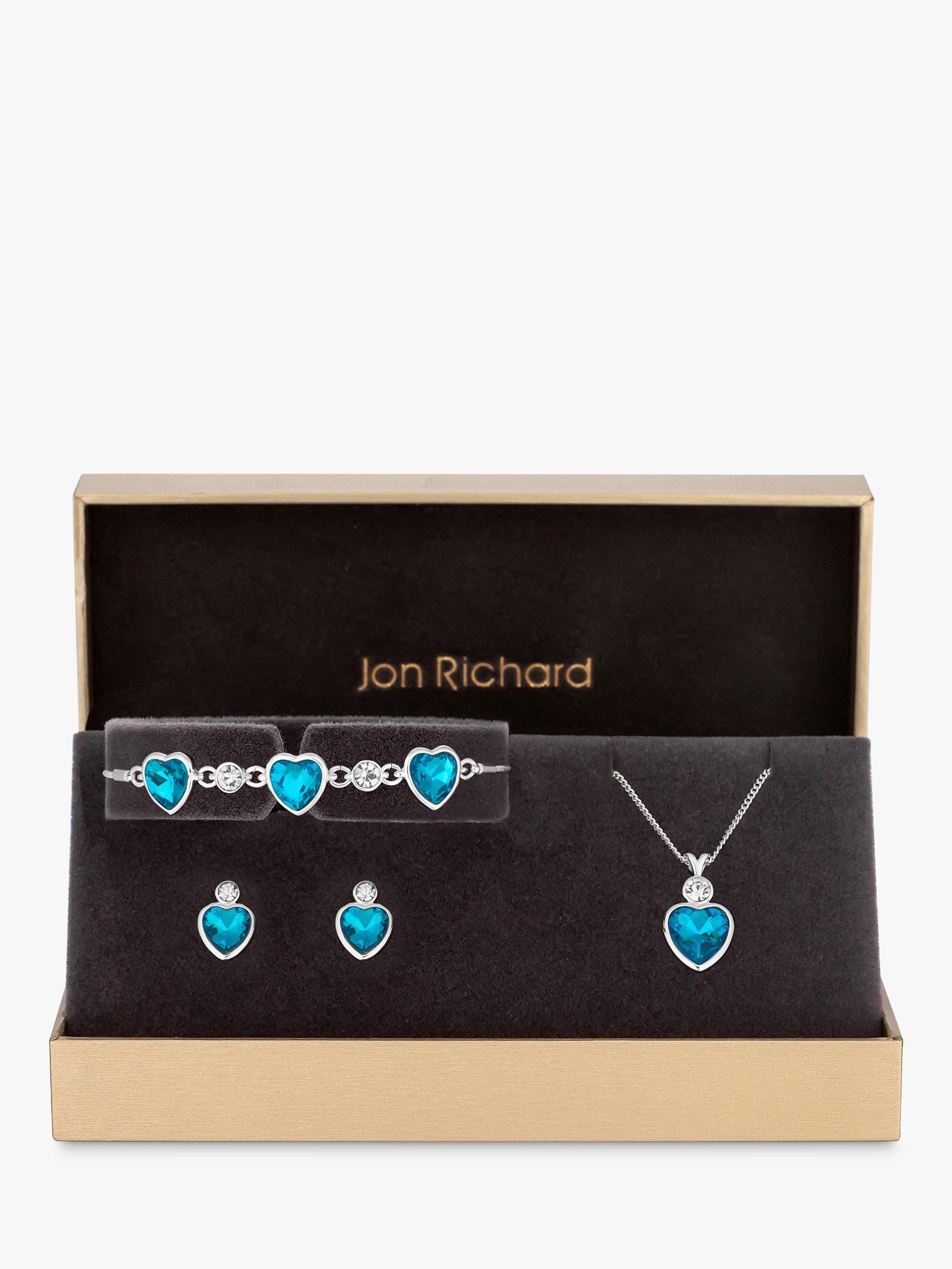 Jon RichardAqua Heart Trio Jewellery Set, Silver