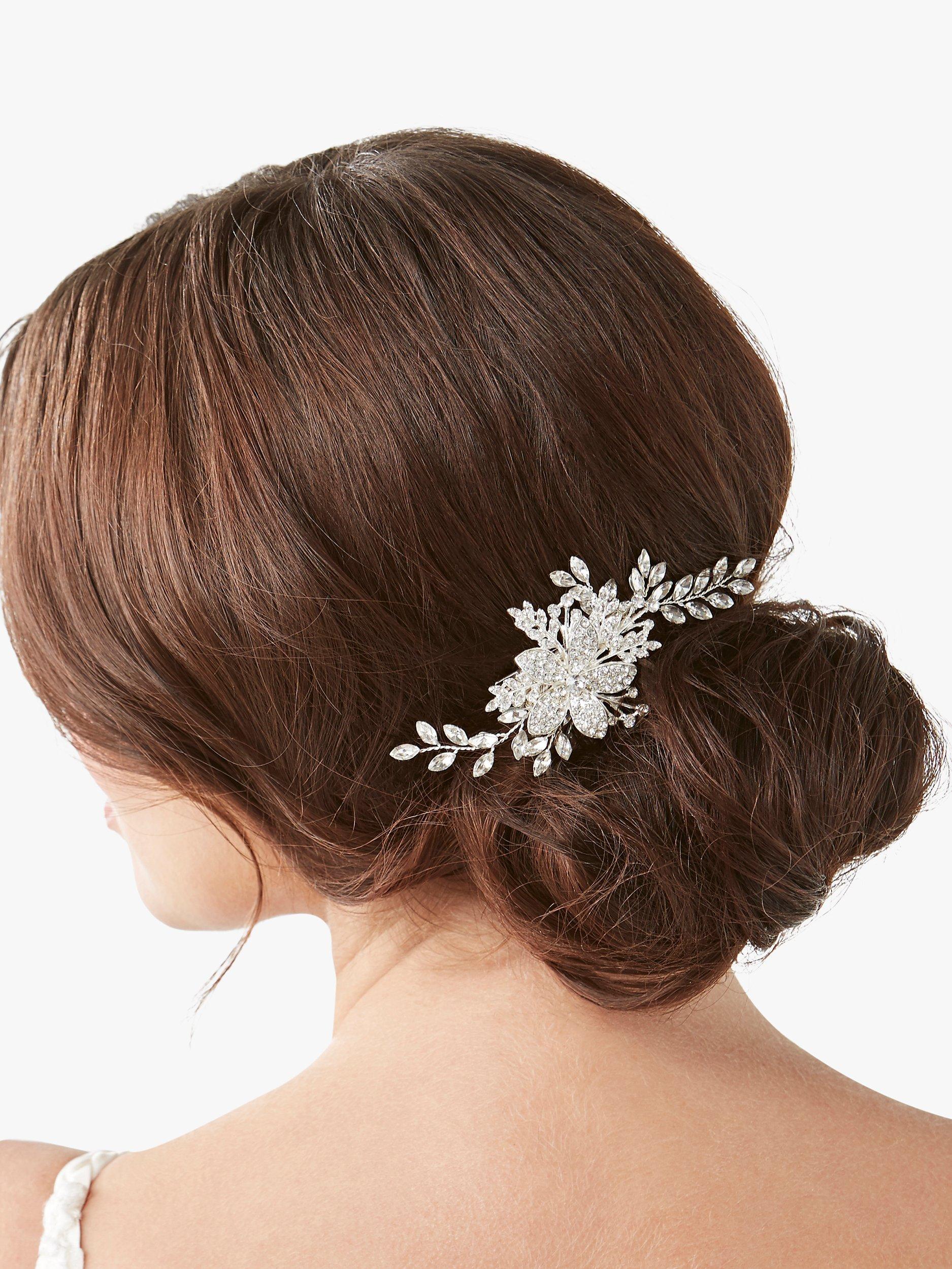 The Jon Richard Darcey Pave Leaf Slide is the ultimate accessory to achieve a striking statement. This hair accessory is perfect for brides-to-be who want to add an extra touch of glamour to their wedding day. Place on top of the head with a low elegant bun or place over loose curls to achieve princess-worthy hair.