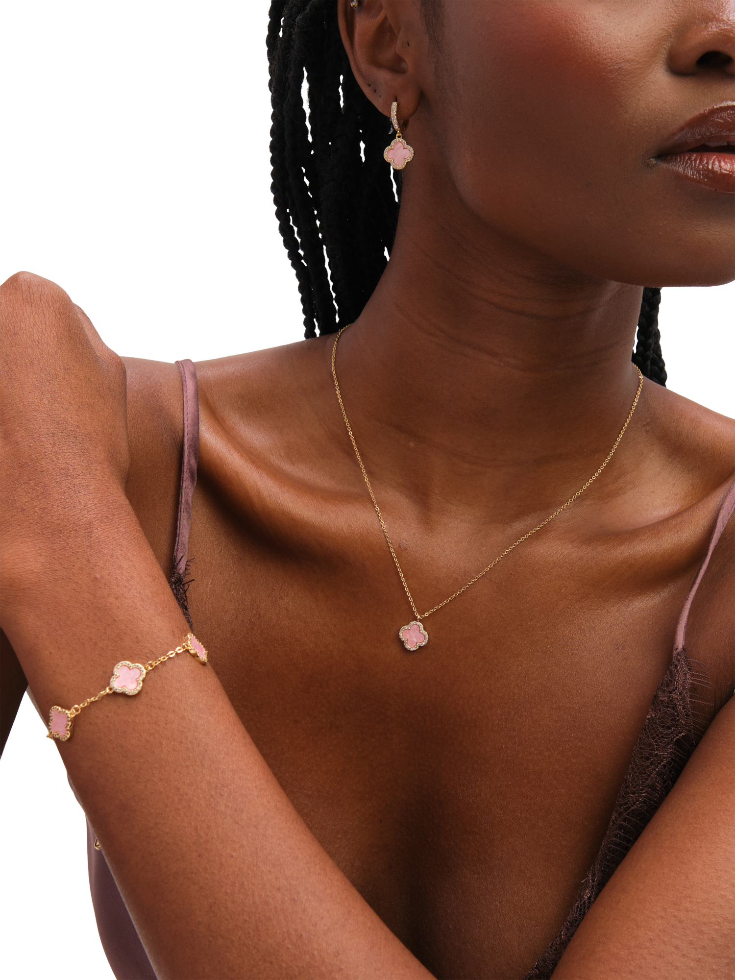 Jon RichardClover Bracelet, Pink/Gold