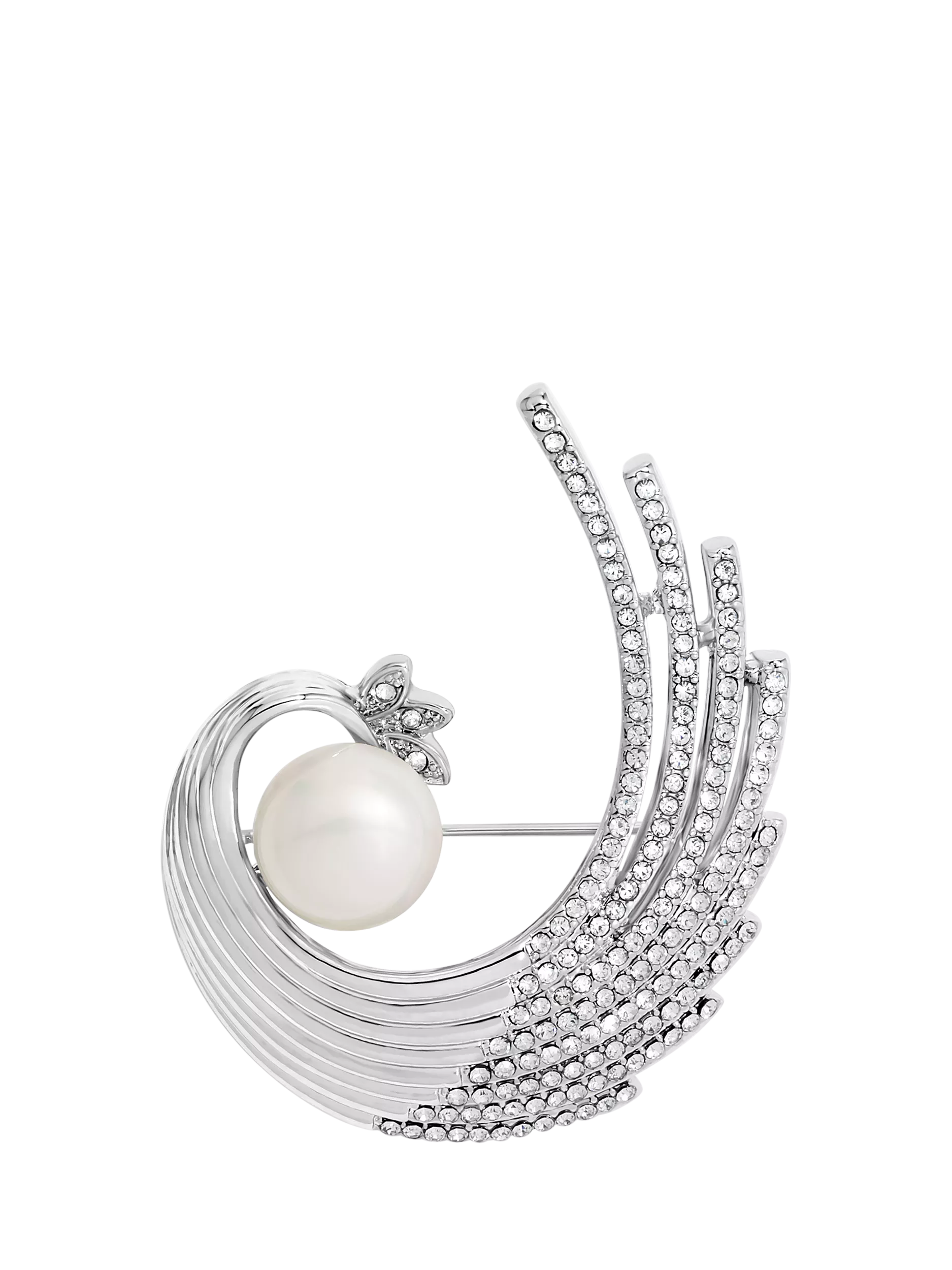 Jon RichardCrystal and Swirl Pearl Brooch, Silver