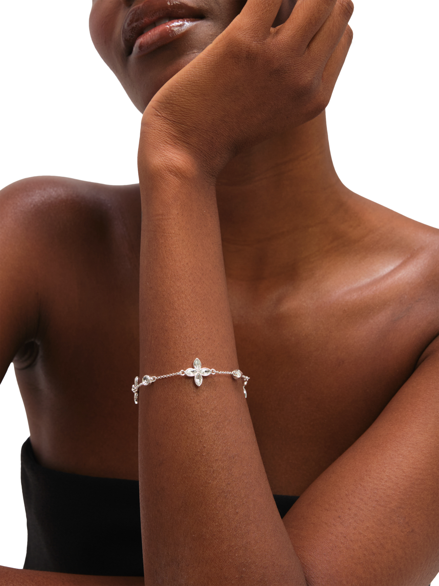 Jon RichardCrystal Clover Bracelet, Silver