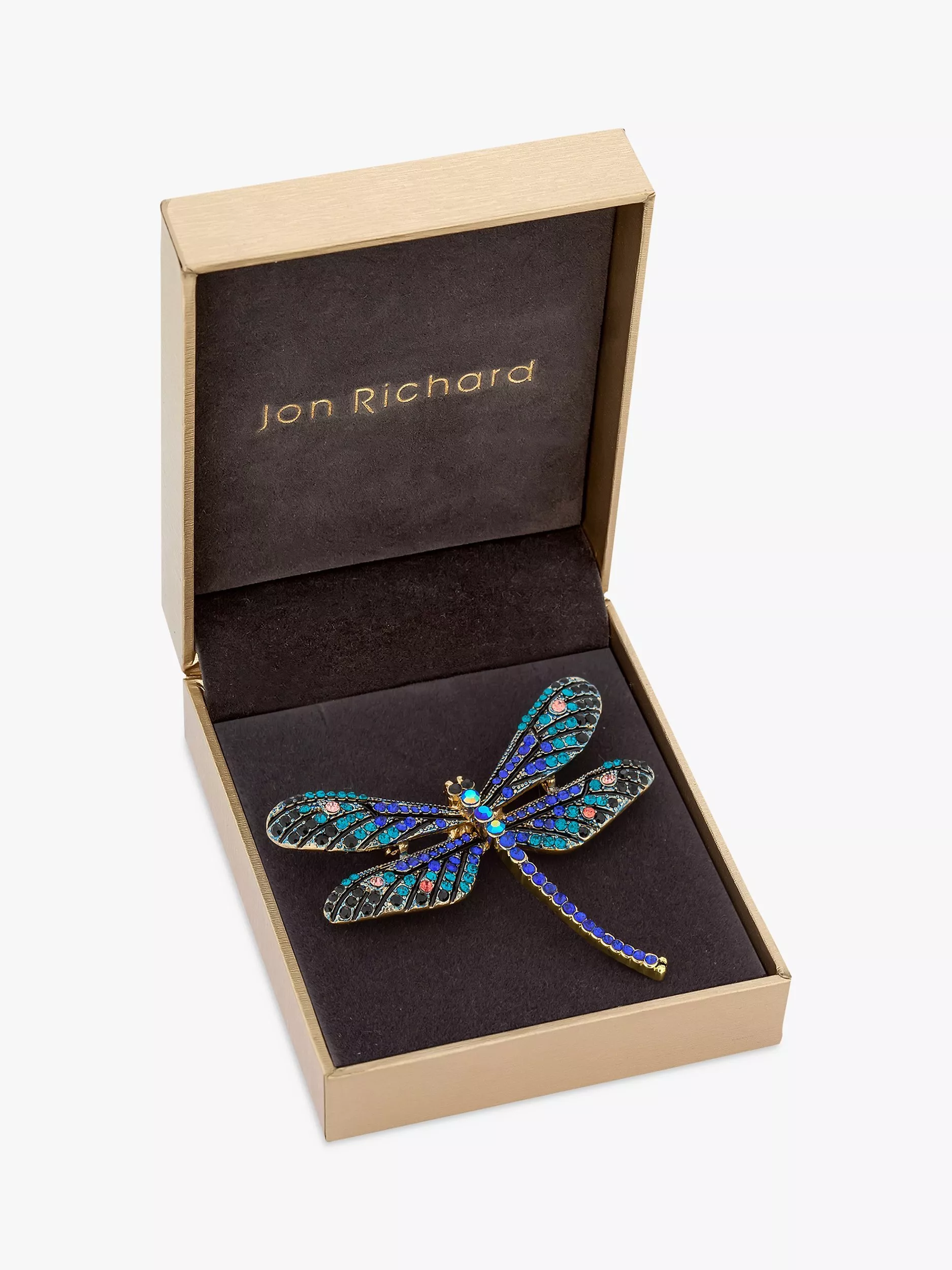 Full of sparkling colour, this dragonfly brooch from Jon Richard will add a vibrant touch to any outfit. Featuring a beautiful mix of tonal crystal stones, this contemporary design is secured with a pin and catch fastening and comes packed in a beautiful gift box.