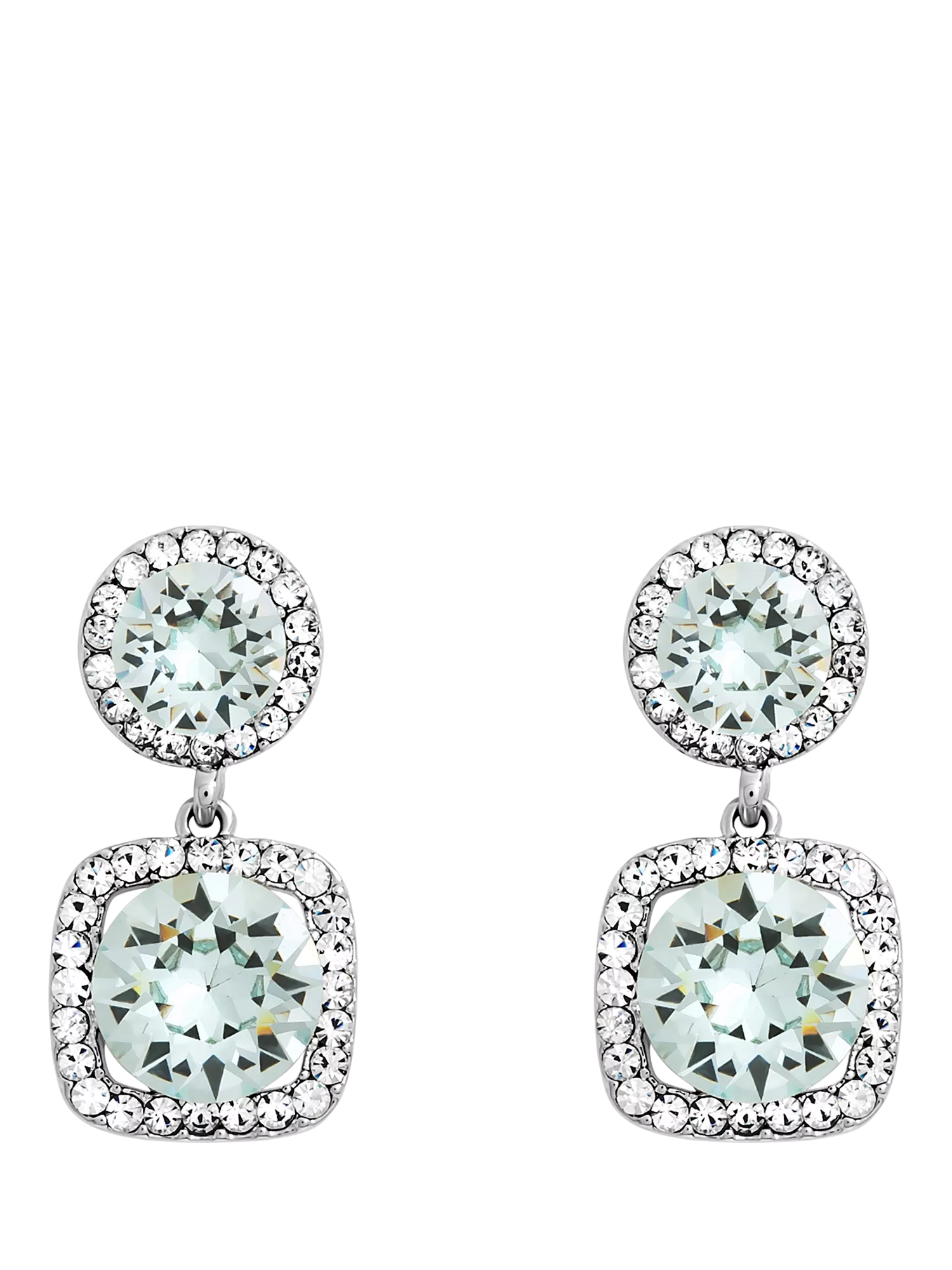 These crystal-adorned earrings are a striking addition to your collection. Featuring aqua stones in the centre, these earrings are perfect for everyday and occasion. Suitable for pierced ears only.