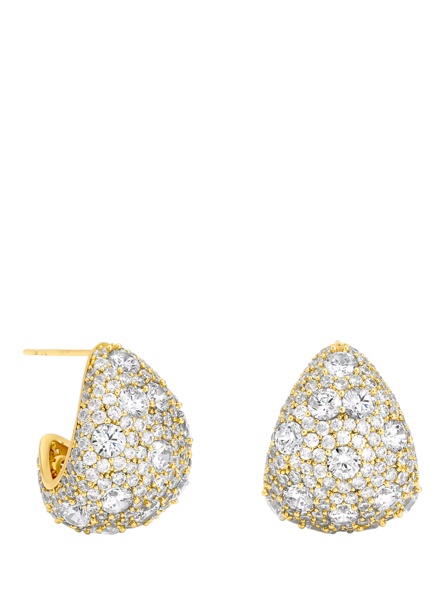 Add a touch of glamour with the Gold Plated Crystal Large Dome Earrings, designed to shine effortlessly. Featuring a bold dome shape adorned with sparkling crystals and finished in rich gold plating, this elegant style offers timeless sophistication. The perfect piece to elevate any jewellery collection. Suitable for pierced ears only.