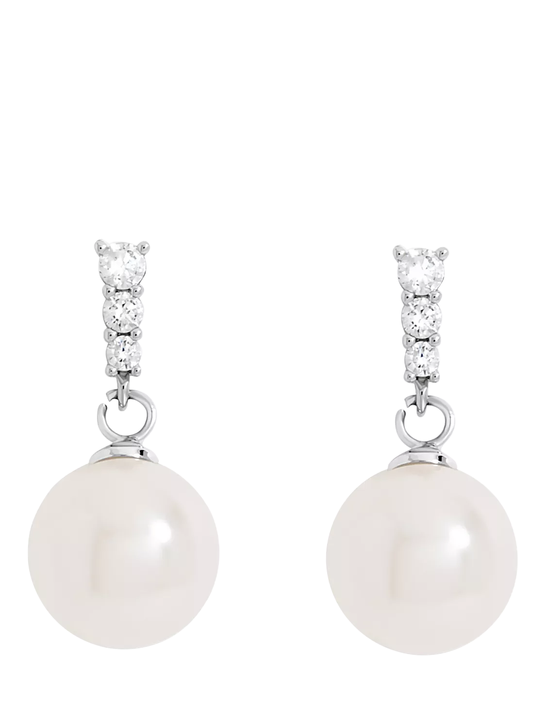 The Rhodium Plated Crystal Stick and Pearl Earrings are expertly finished, designed to bring bold elegance to your everyday style. Featuring a striking Crystals and shiny pearl, made to sparkle and finished in rich rhodium plating, this statement piece adds a touch of timeless sophistication. It is the perfect addition to any jewellery collection. Suitable for pierced ears only.