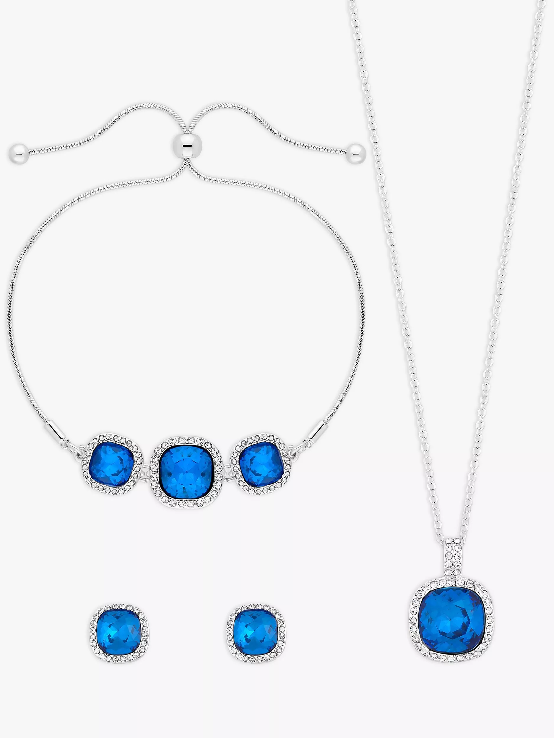 Jon RichardCrystal Stud Earrings, Necklace and Bracelet Jewellery Gift Set, Silver/Bermuda Blue
