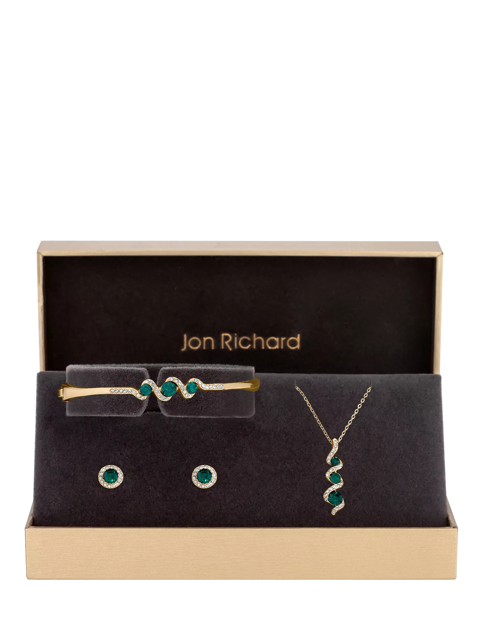 This classic jewellery set, features a matching necklace, earrings and bracelet all with crystals set in a twisted design. Presented in a beautiful Jon Richard box.