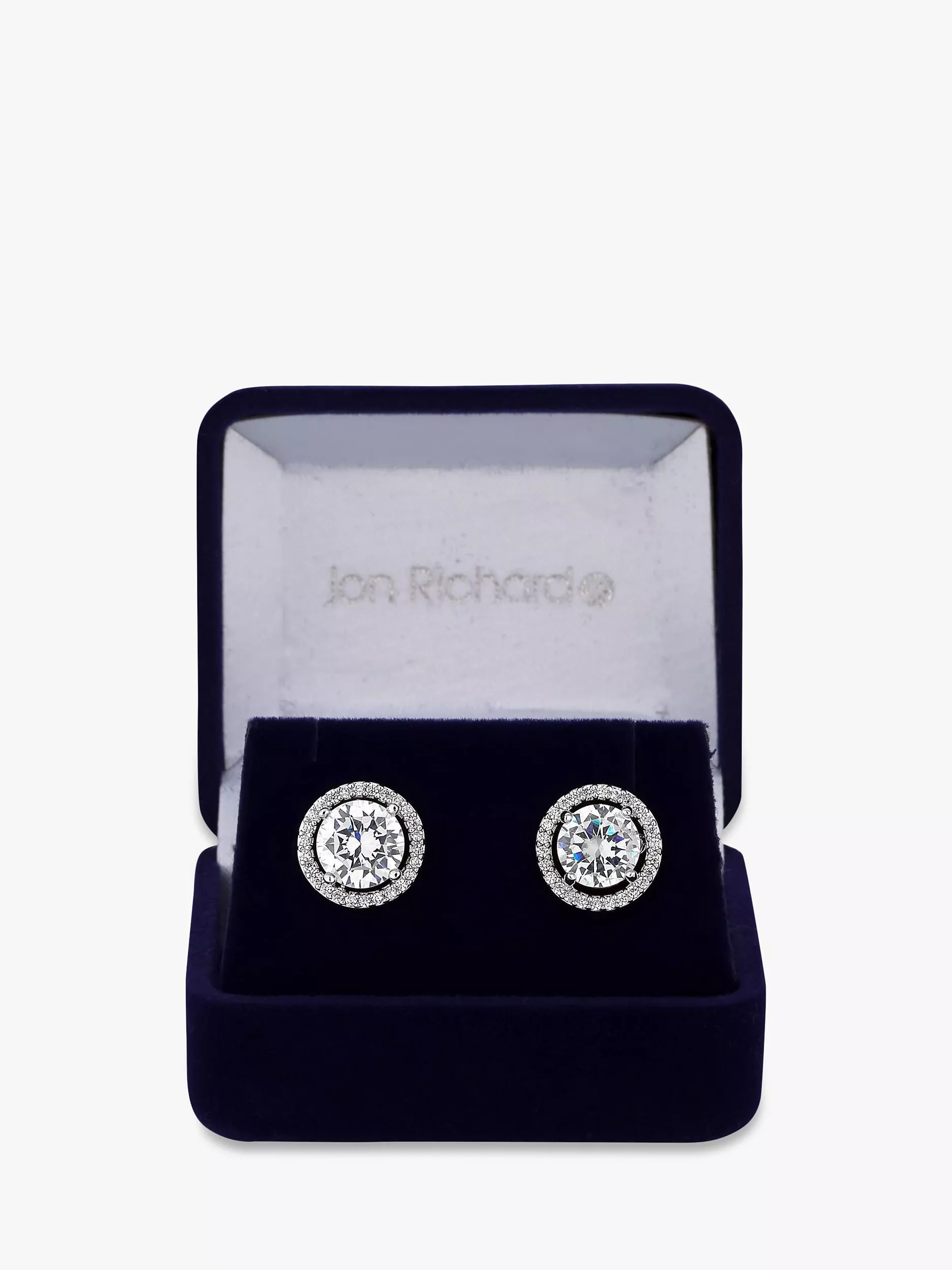 Simply stunning, these earrings from Jon Richard have a simple circle shape adorned with multiple sparkling cubic zirconia gems. Secured with post fittings, they are suitable for pierced ears only.