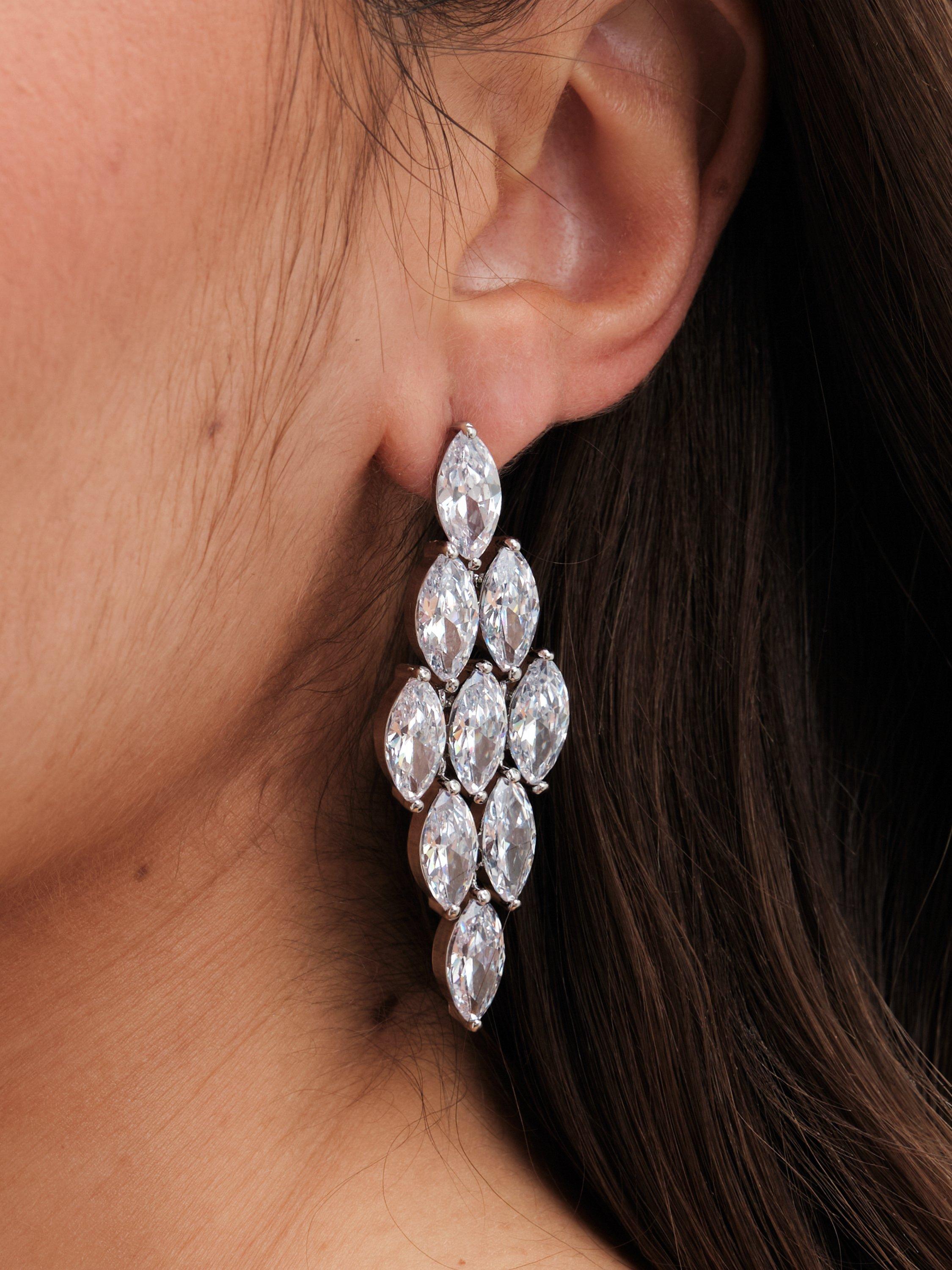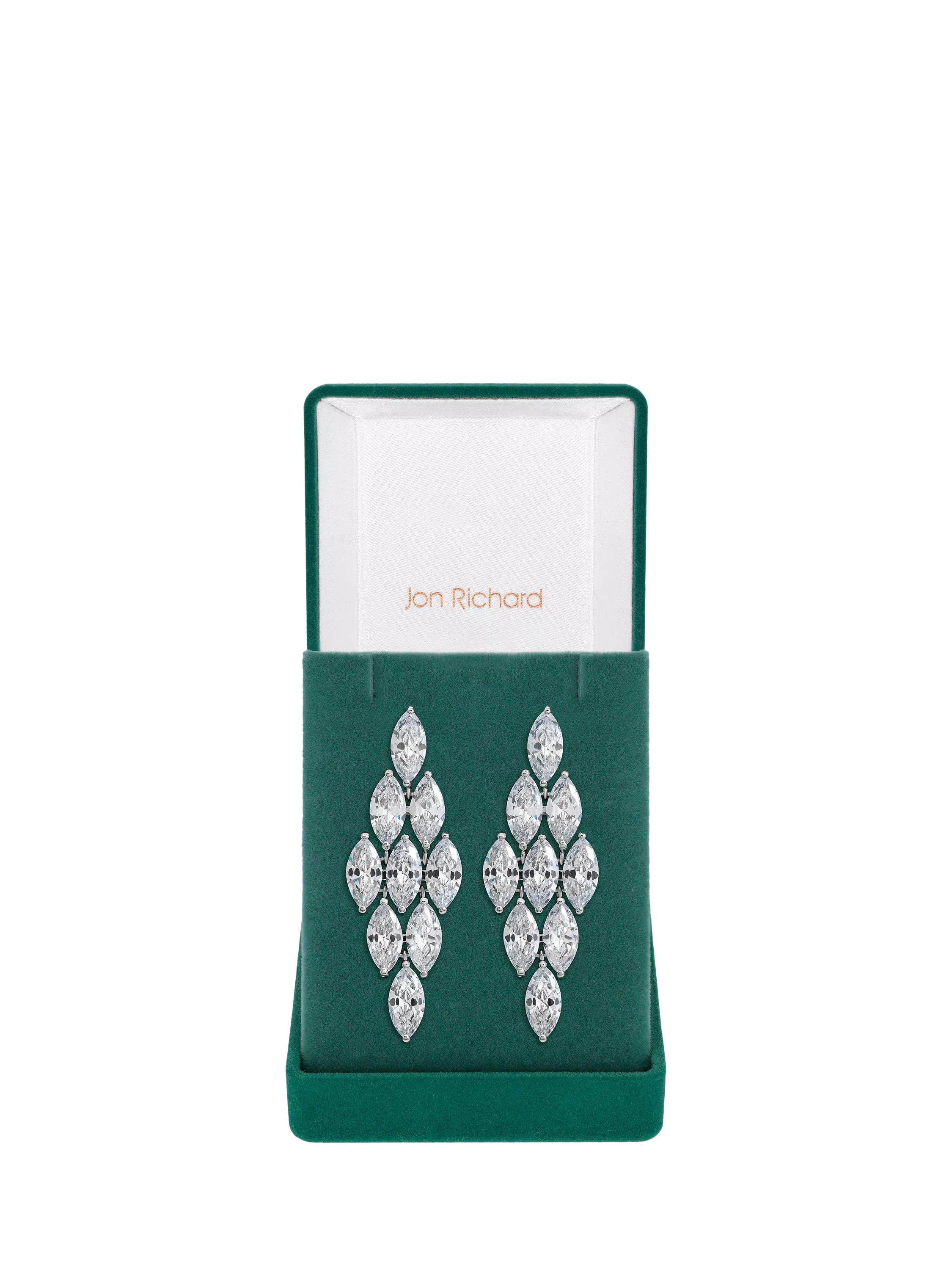 Beautifully designed by Jon Richard, these cubic zirconia diamond-shaped drop earrings are a statement addition to your jewellery collection. Suitable for pierced ears only.