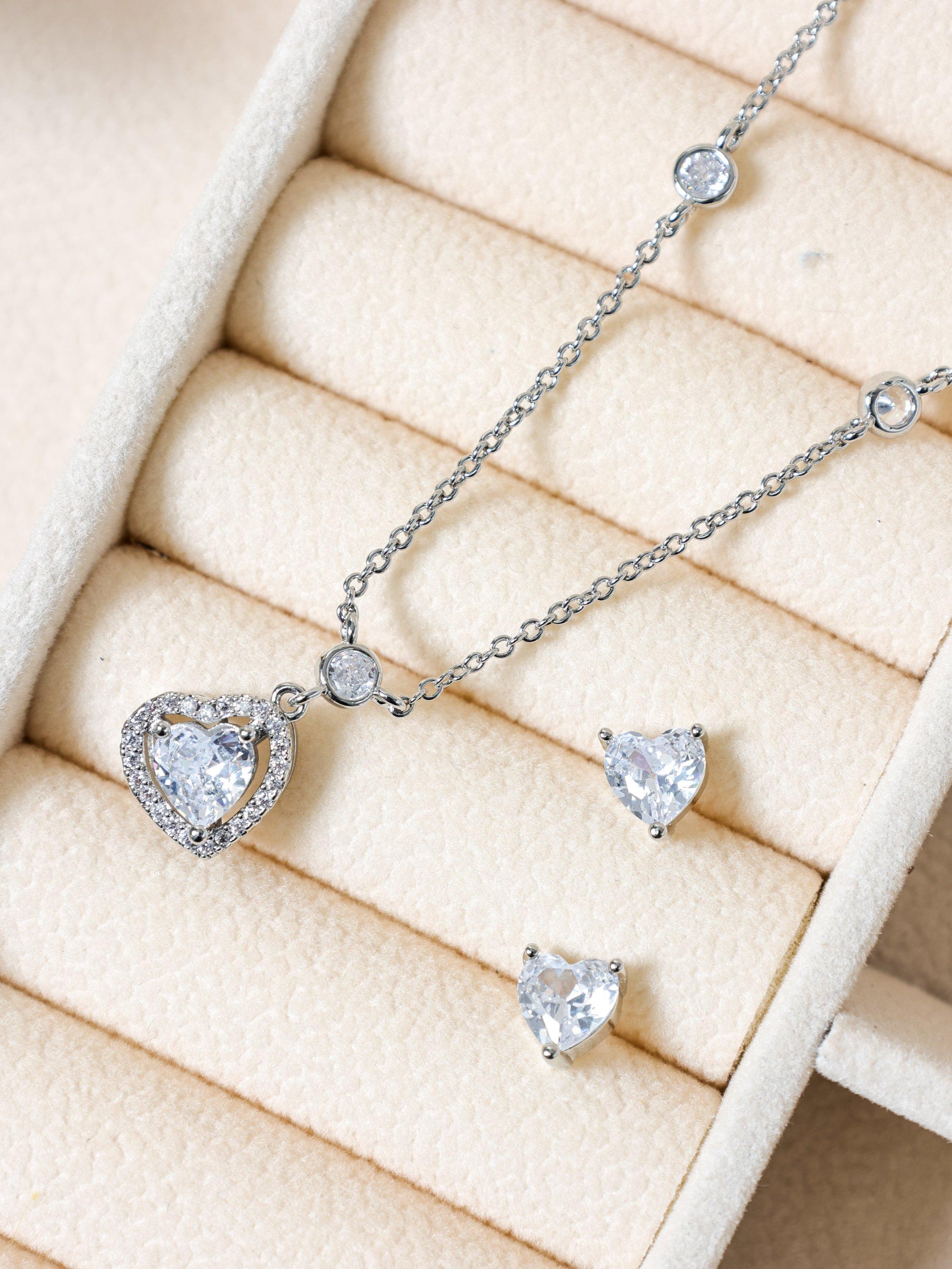 The Rhodium Plated and Cubic Zirconia Heart Drop Box Set is designed to bring romantic sparkle to any occasion. Featuring a delicate heart design, framed with shimmering crystals and finished in polished rhodium plating, this beautiful set adds a timeless touch of elegance. The earrings are suitable for pierced ears only.
