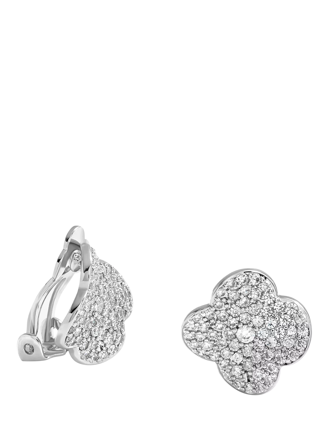 Jon RichardCubic Zirconia Pave Clover Clip On Earrings, Rhodium