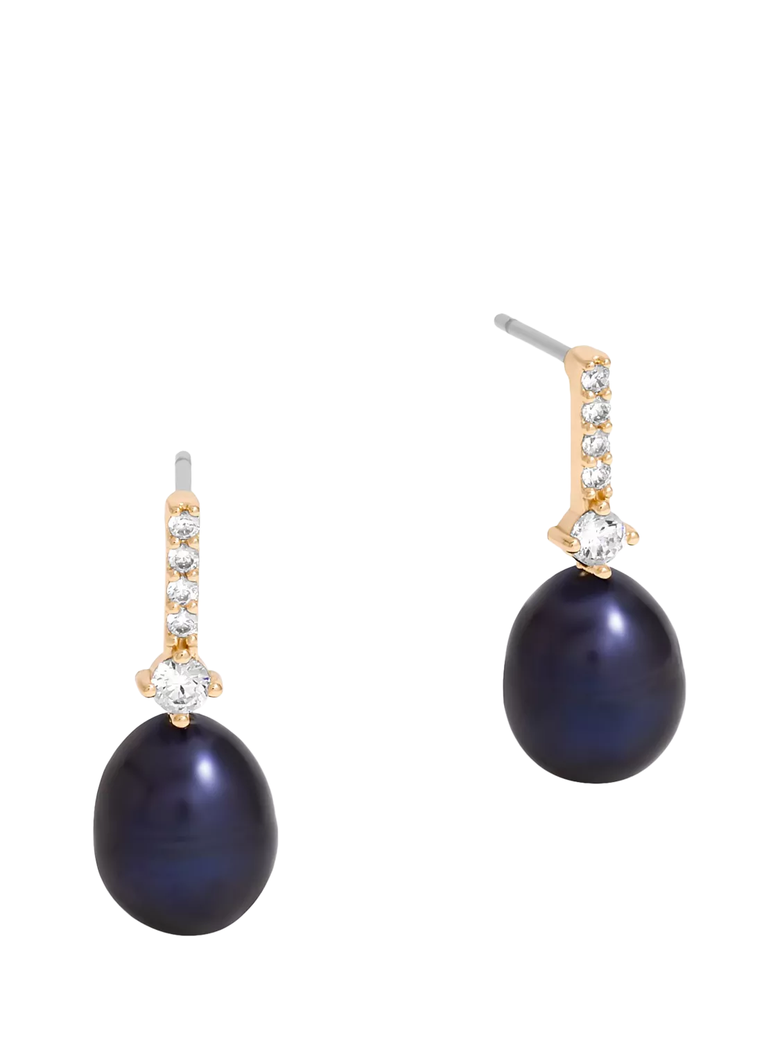 Cubic Zirconia and Pearl Stick Earrings from Jon Richard, featuring a striking blend of elegance and modern design. These earrings add a sophisticated and contemporary touch to any outfit, perfect for elevating both casual and evening looks. Available in a gold-plated design with a blue pearl or silver-plated with a natural pearl.