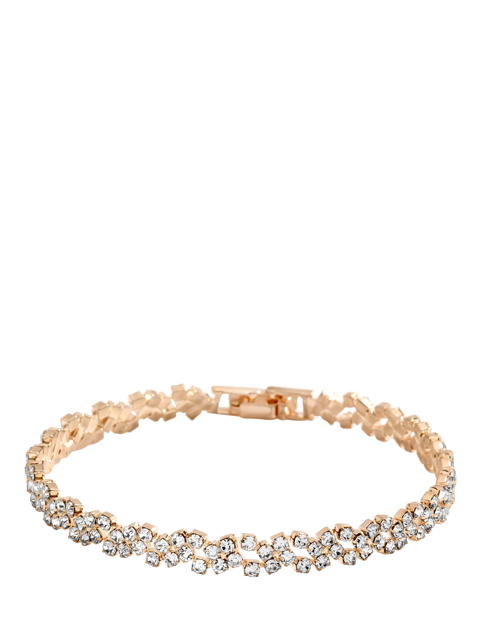This diamante bracelet is a must-have in your jewellery box this season. Featuring a beautiful contemporary design, which will add a touch of sparkle to any outfit, this bracelet can be worn separately or layered with other pieces.
