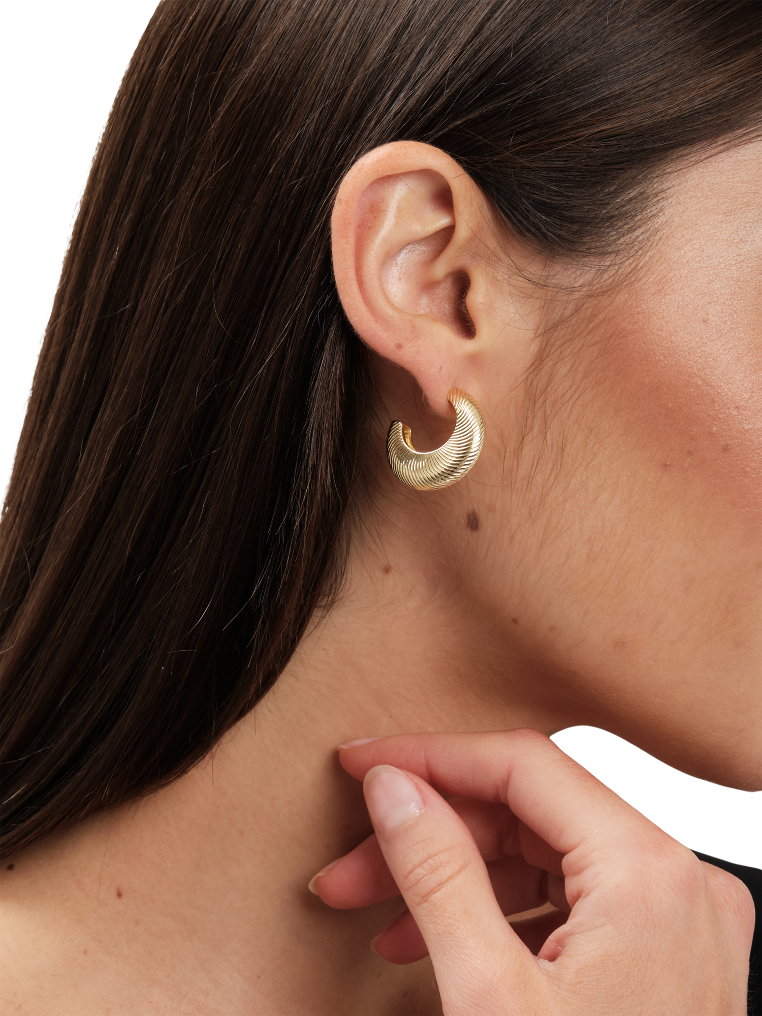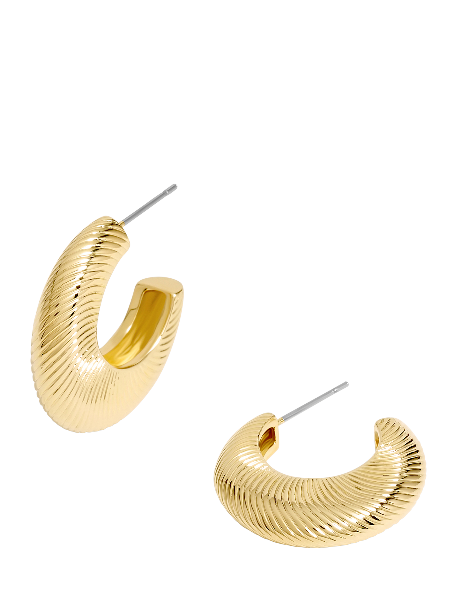 Domed demi-hoops with a ridged diamond cut pattern. Secured with post fittings that are for pierced ears only.