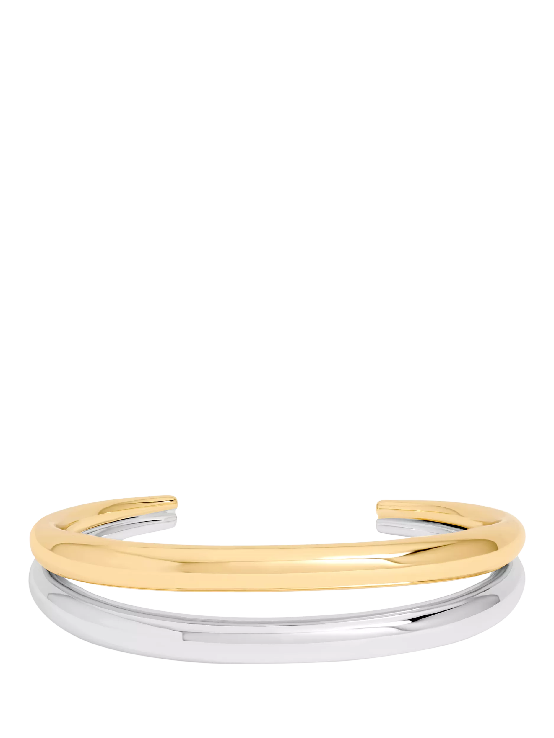 The Two Tone Double Row Cuff is a striking piece designed to dazzle. With its sleek two tone finish, this cuff delivers maximum impact. Beautifully bold and expertly finished, it is a standout piece whether worn solo or styled with your favourite stack.