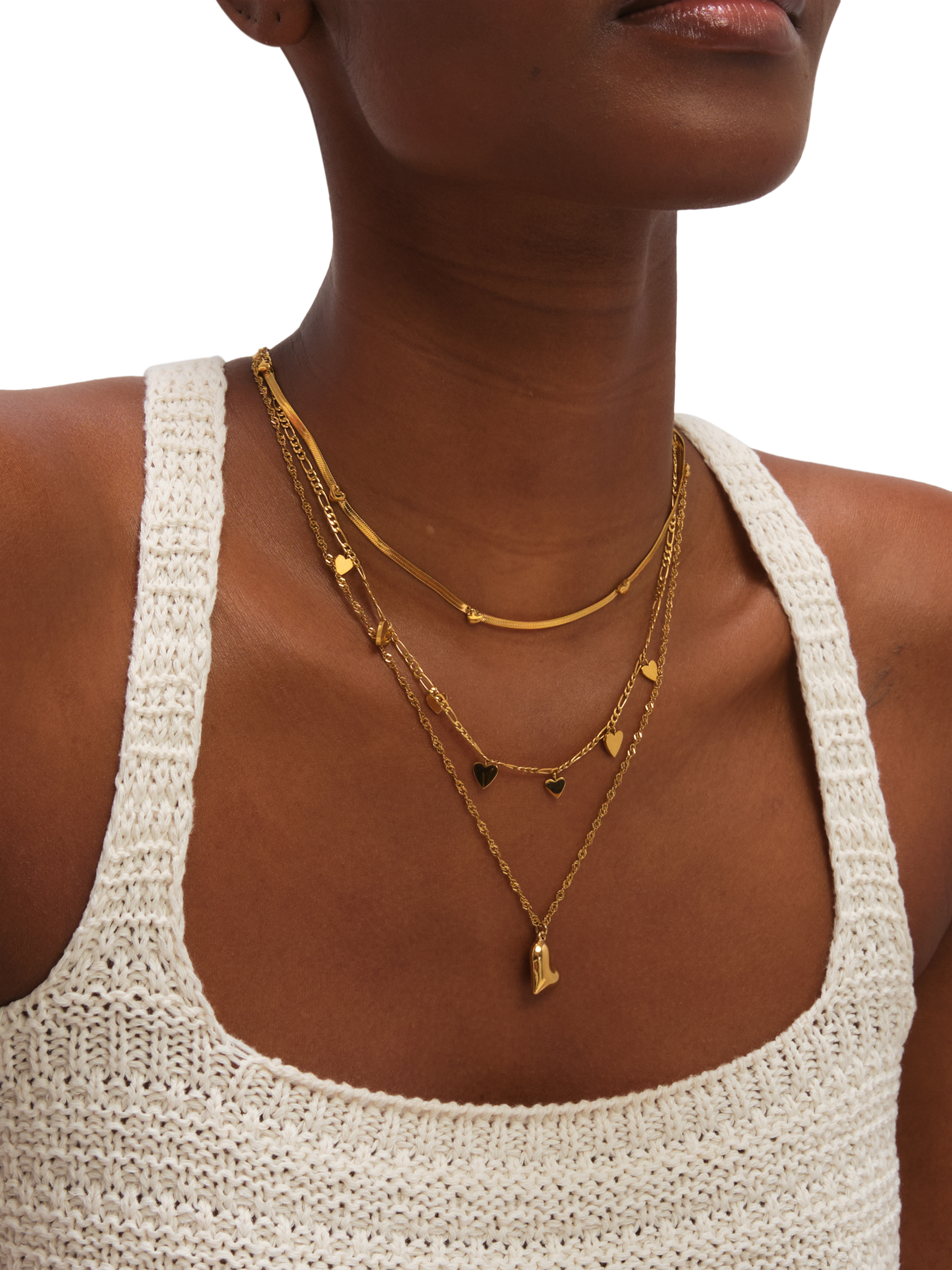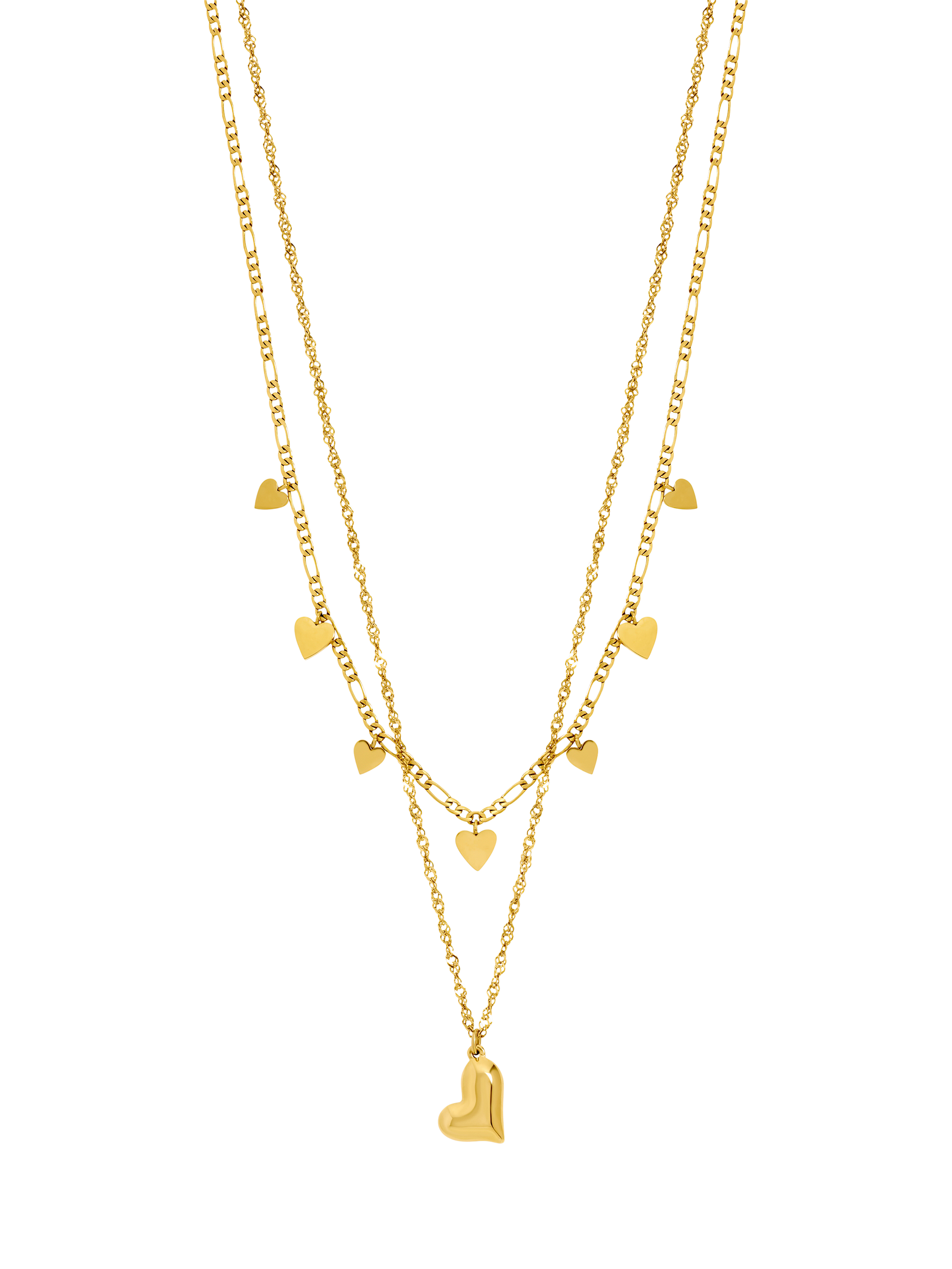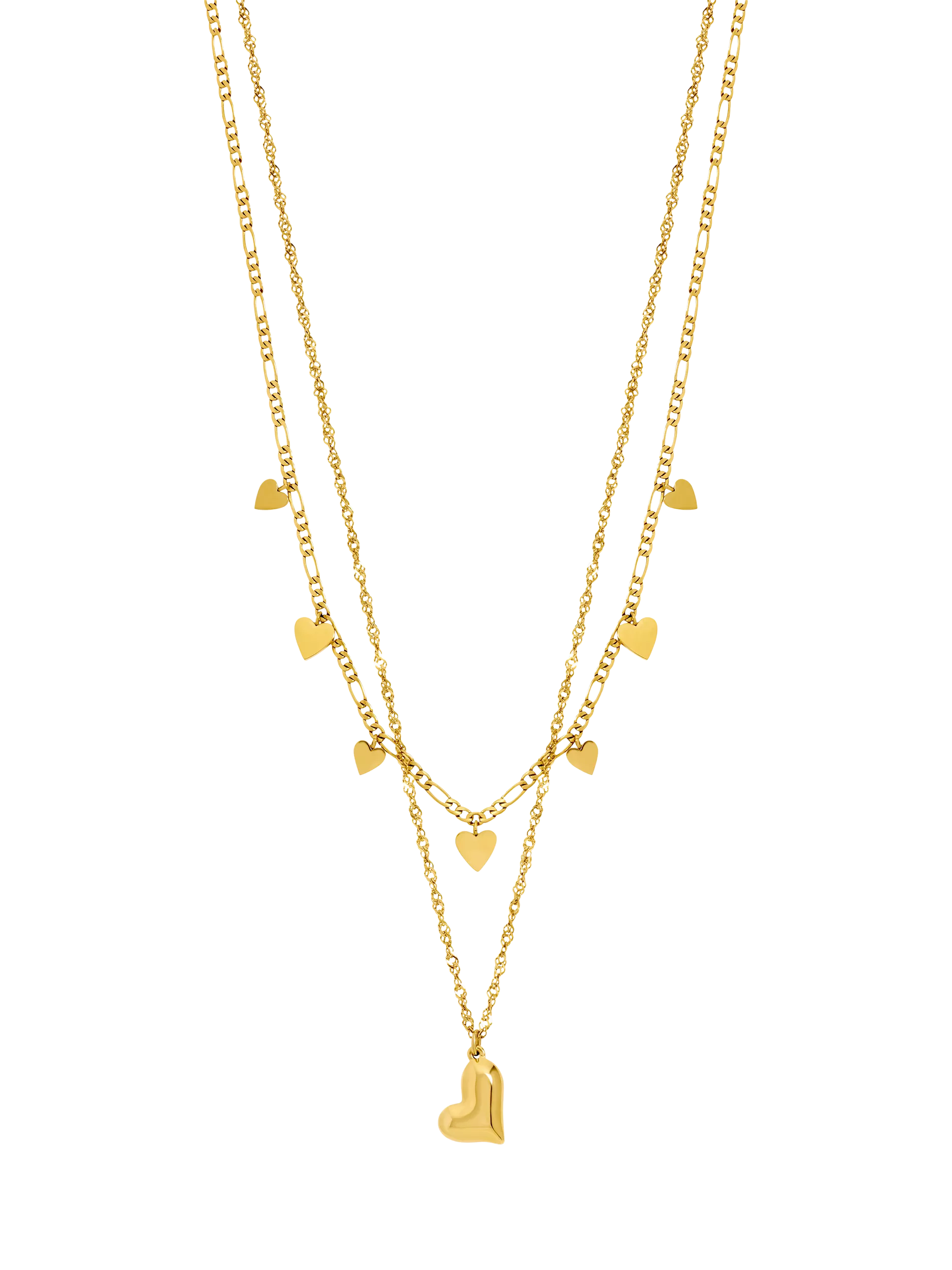 Achieve an effortlessly layered look with this ready-to-wear double-row necklace featuring a simple heart. Its waterproof stainless steel construction provides reliable durability.