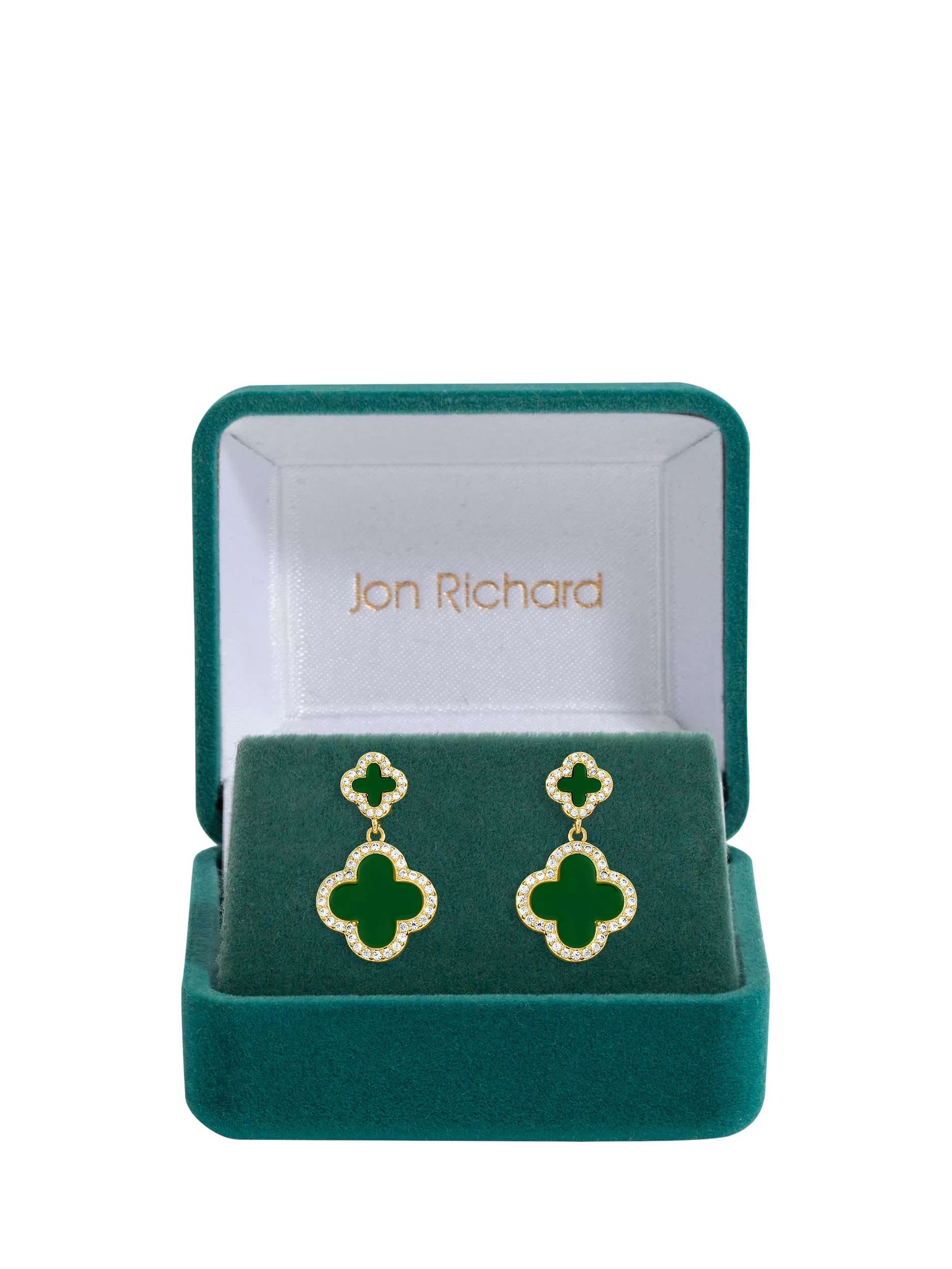 The Gold Plated and Emerald Clover Earrings are expertly finished and designed with meaning. Featuring a bold emerald design, and finished in shiny gold plating, this graceful design adds a touch of luck and timeless shine. It is the perfect piece to elevate your jewellery collection. Suitable for pierced ears only.
