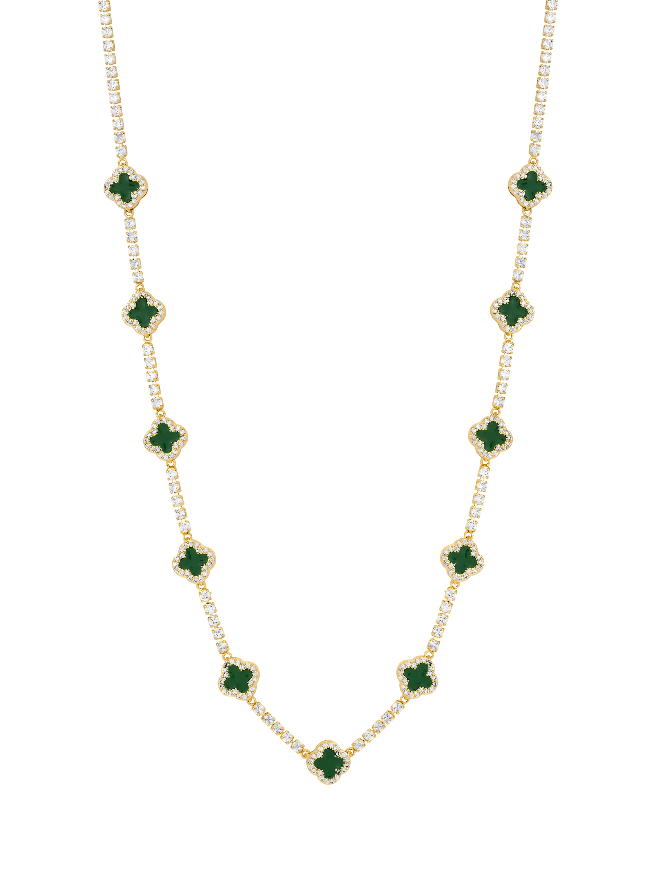 The Gold Plated and Emerald Clover Necklace is expertly finished and designed with meaning. Featuring a bold emerald design, and finished in shiny gold plating, this graceful design adds a touch of luck and timeless shine. It is the perfect piece to elevate your jewellery collection.