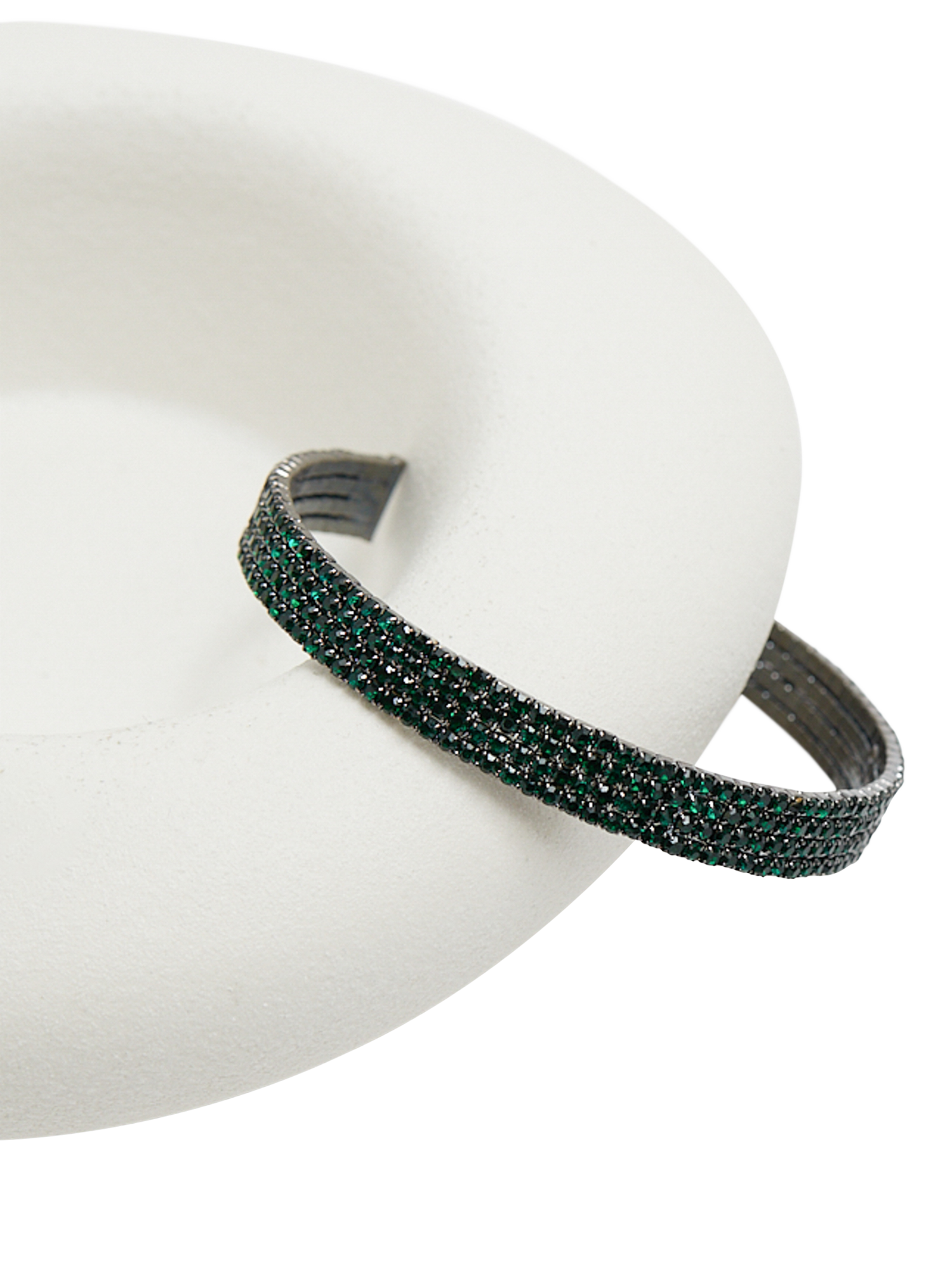 Designed to make a real statement, this bracelet has been designed with green stones on a black metal setting to bring out the vivid colour.