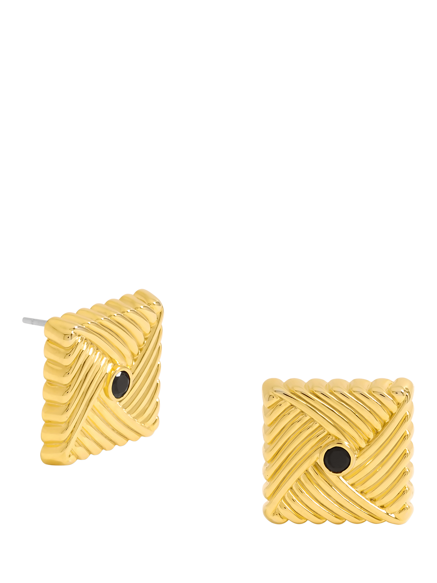 These Jon Richard Gold Plated Ridge Jet Square Earrings are a bold contrast of shine and depth. With a square silhouette, these earrings feature a glossy jet enamel centre, with a radiant gold plated frame. Fastened with a post and bullet back, they are suitable for pierced ears only.