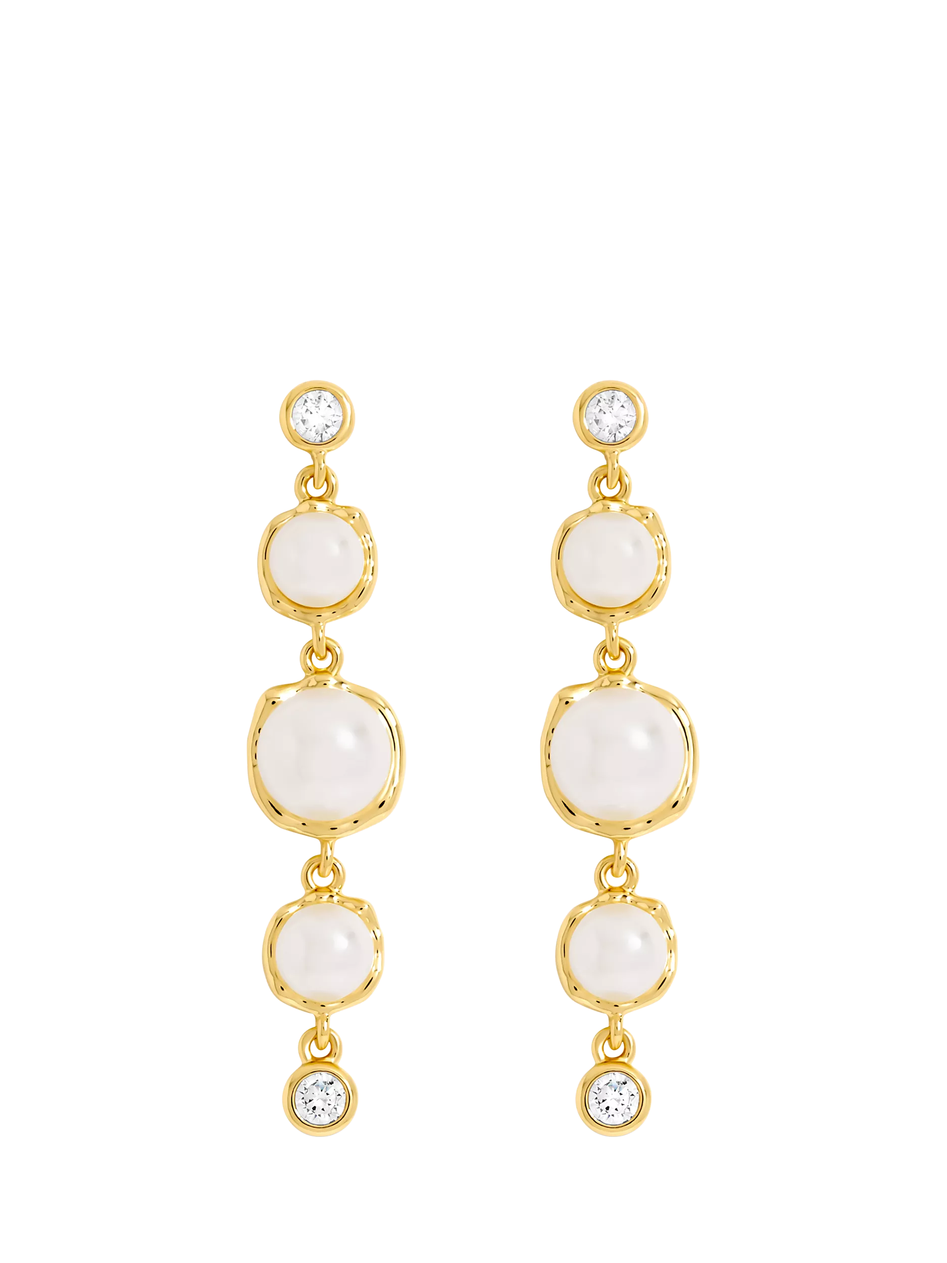 Offering a blend of classic elegance and contemporary design, the Graduated Pearl Drop Earrings are perfect for casual and occasion wear. Suitable for pierced ears only.