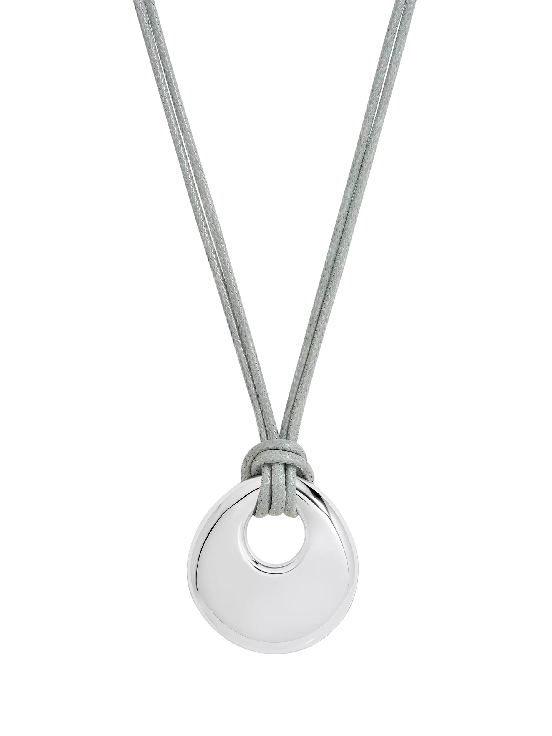 Designed for the everyday, this polished pendant is the perfect accessory day or night. The fine grey cord gives it a relaxed and modern look.