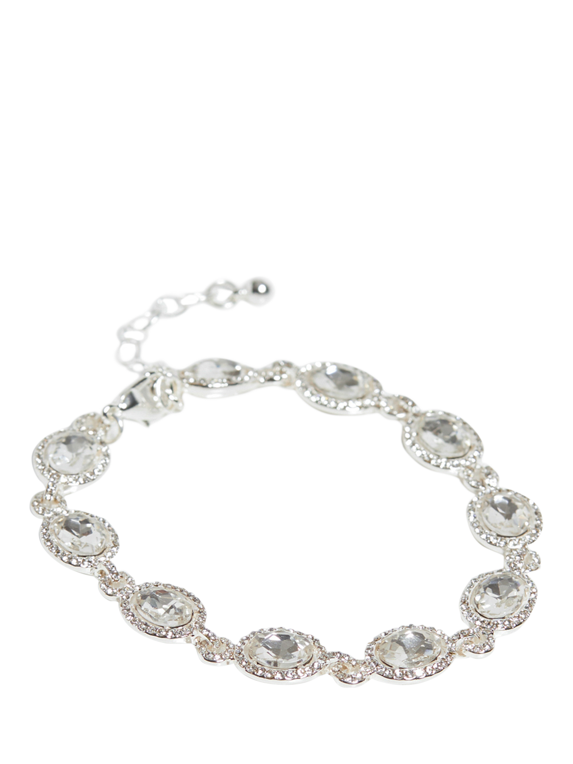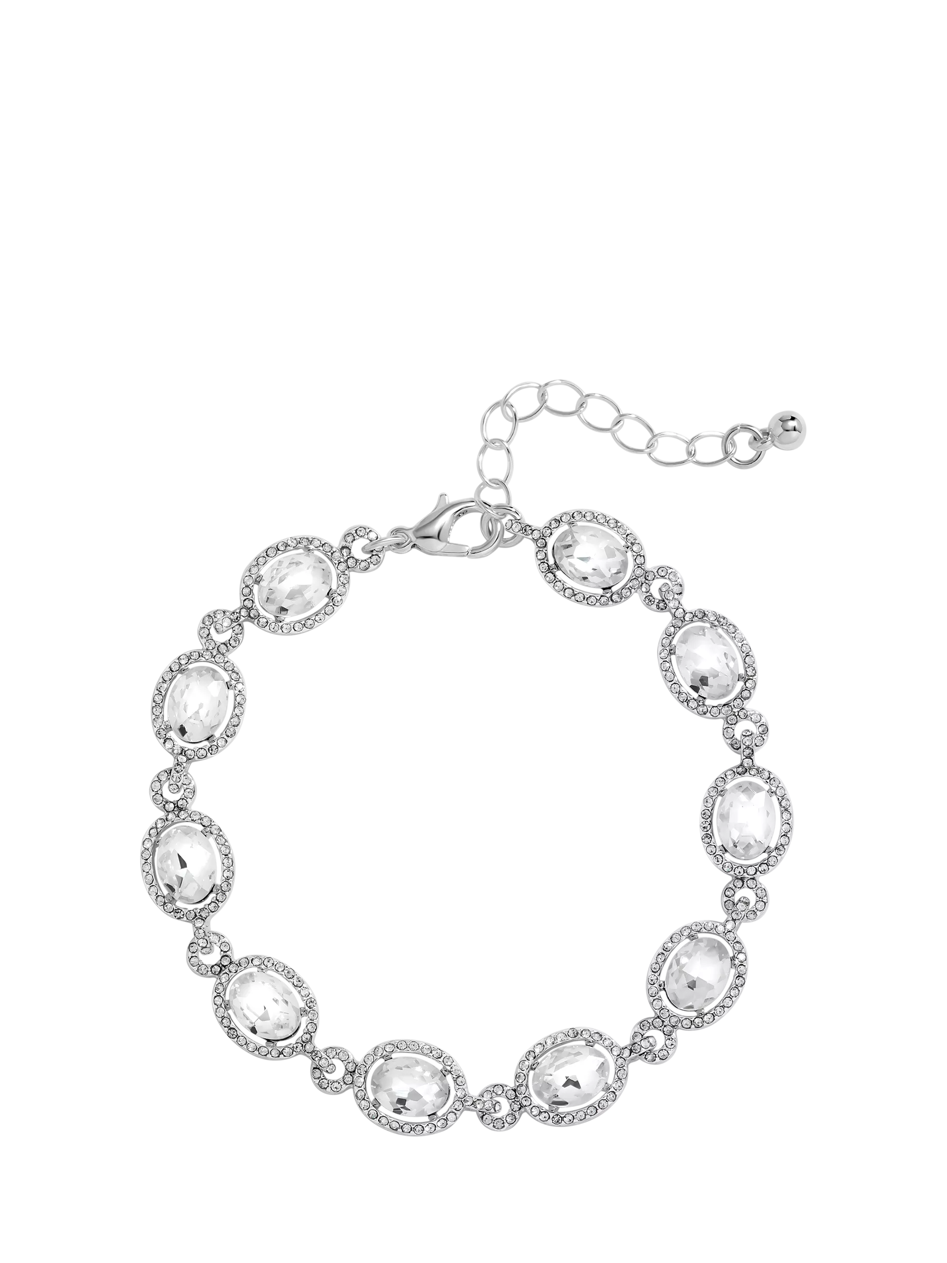 Designed with sparkly halo-style links, this striking bracelet is an ideal choice for bridal looks or special occasions. Chain length: 7". Extender length: 1".