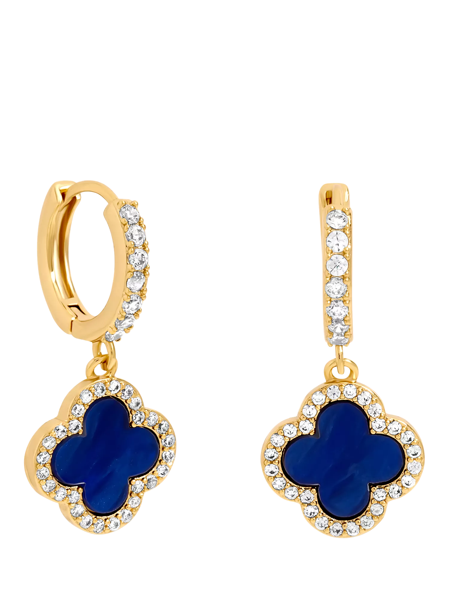 The Gold Plated and Lapis Clover Huggie Earrings are expertly finished and designed with meaning. Featuring a bold lapis design, and finished in shiny gold plating, this graceful design adds a touch of luck and timeless shine. It is the perfect piece to elevate your jewellery collection. Suitable for pierced ears only.
