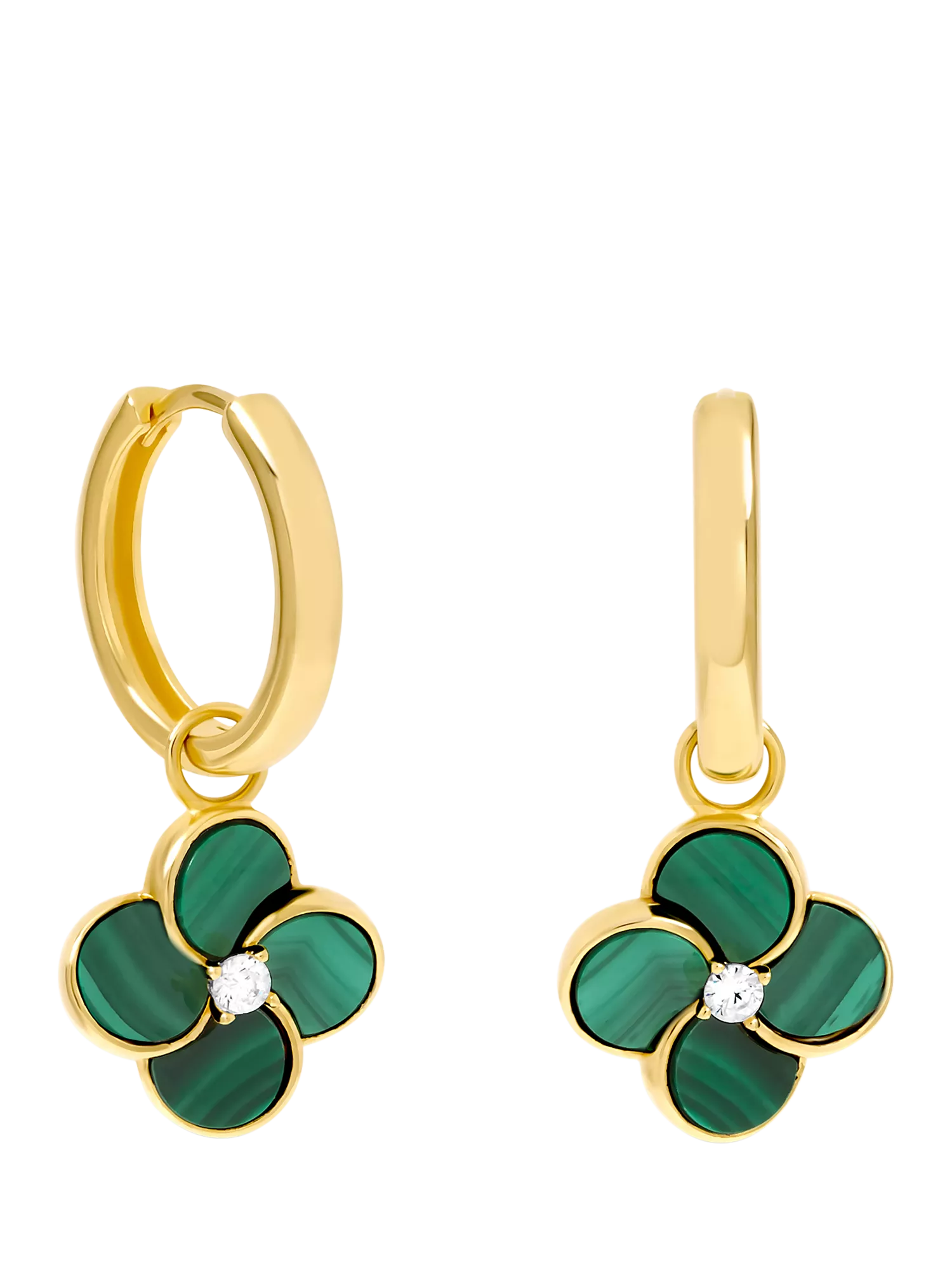 Jon RichardMalachite Four Leaf Clover Huggie Earrings, Gold