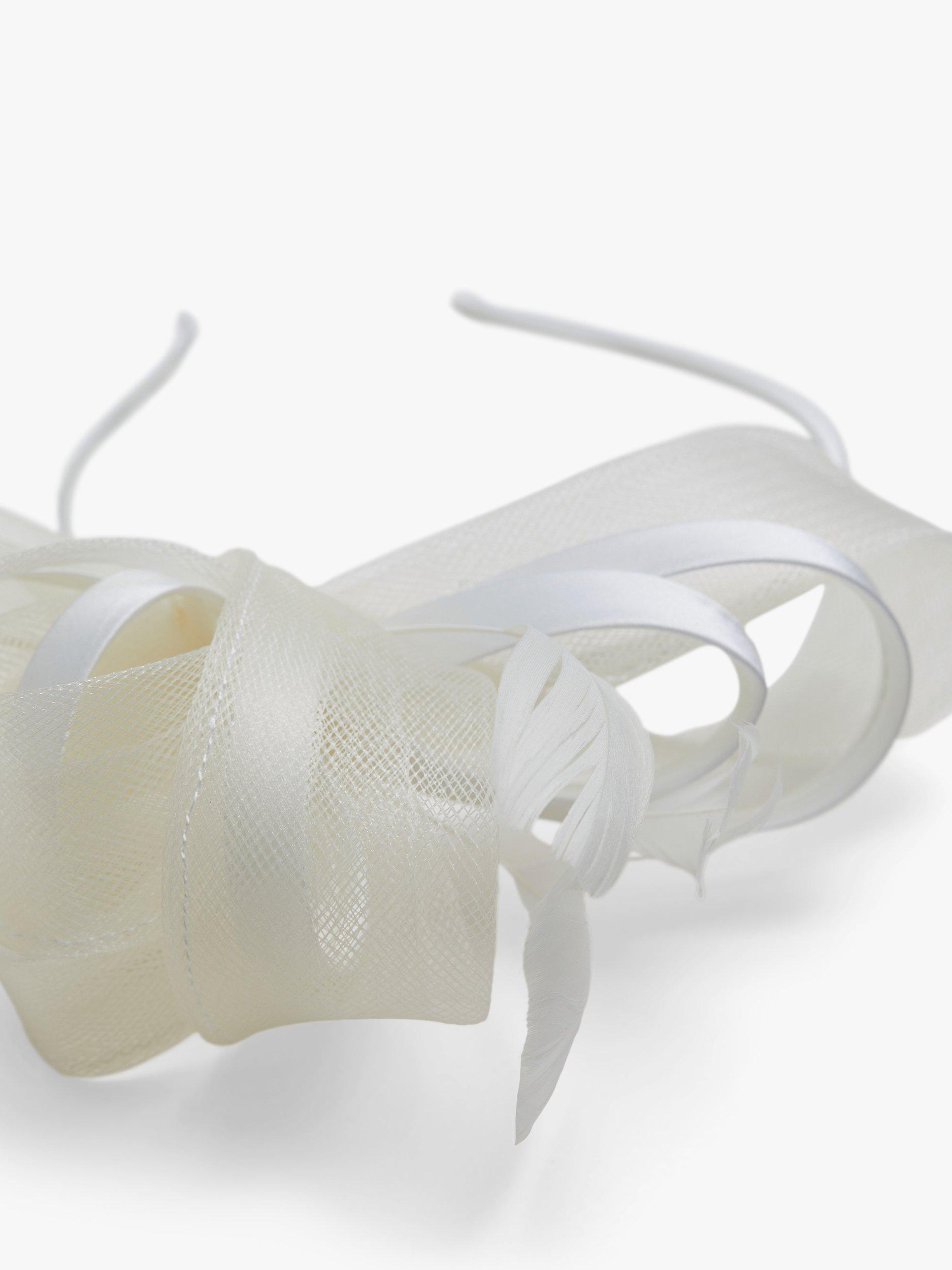 Delicate feathers and bow details combine for an eye-catching finish in this fascinator from Jon Richard.
